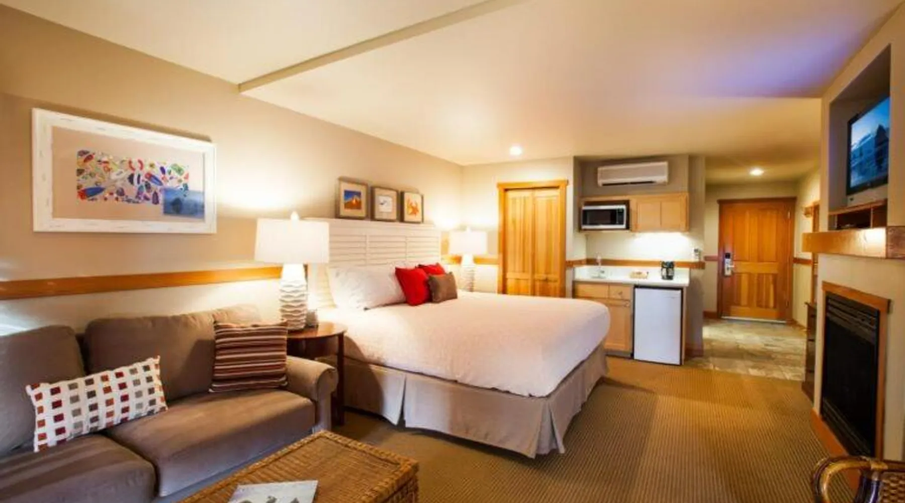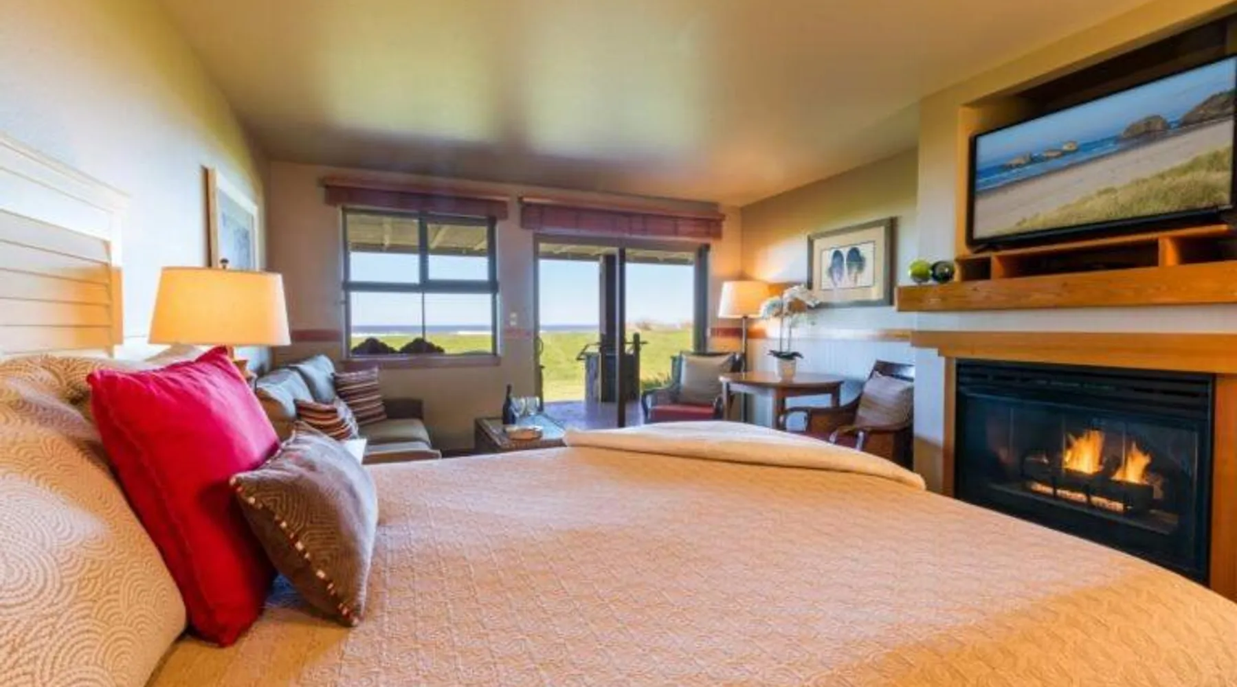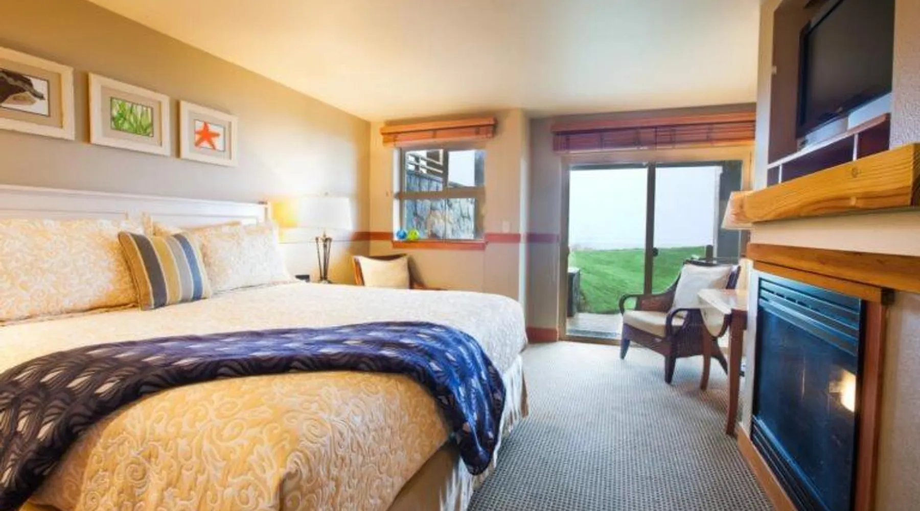 Overlooking the picturesque Oregon coast, The Ocean Lodge is a beachfront property located in Cannon Beach. Free WiFi access available throughout the lodge, and free coffee and cookies can be found 24/7 at the front desk. The warmly decorated rooms here come with a kitchenette, a balcony, and a cable flat-screen TV. A DVD player and a private bathroom are included in each room. Some rooms offer a spa bath, and select rooms have an ocean view. A complimentary continental breakfast is offered daily to guests, with an assortment of pastries, fruit, cereal, and more. Vending machines, a 24-hour front desk, and a daily maid service can all be found on site for added convenience. Guests also have access to a free DVD library. The Ocean Lodge is a 12-minute walk from Haystack Rock, 10 mi from Seaside Aquarium, and the Seaside Factory Outlet Mall is 15 minutes’ drive from the lodge. The fireplace is a top feature of this studio. Featuring free toiletries and bathrobes, this studio includes a private bathroom with a walk-in shower, a hairdryer and slippers. The studio's kitchenette, which has a refrigerator and a microwave, is available for cooking and storing food. The air-conditioned studio features a flat-screen TV with cable channels, a tea and coffee maker, a wardrobe, a carpeted floor as well as sea views. The unit has 1 bed.