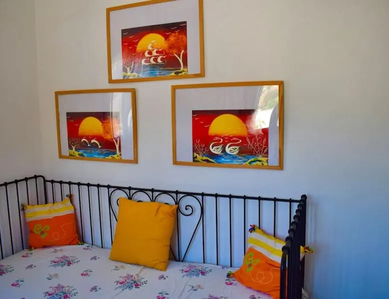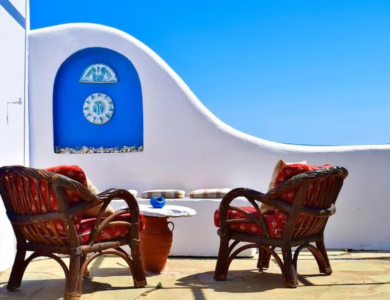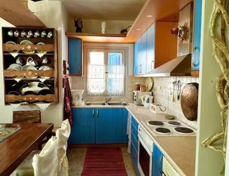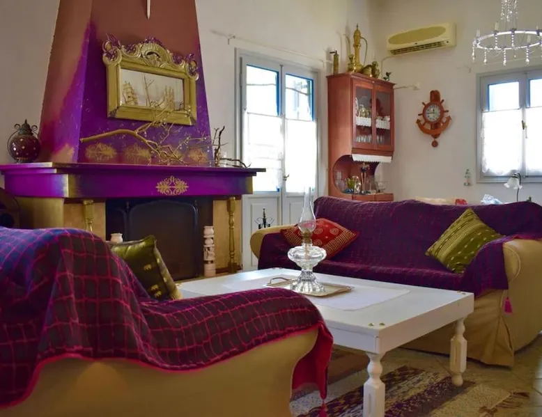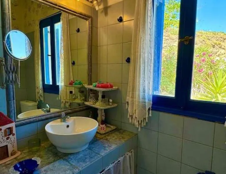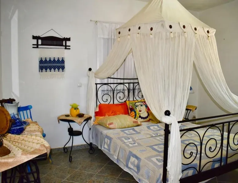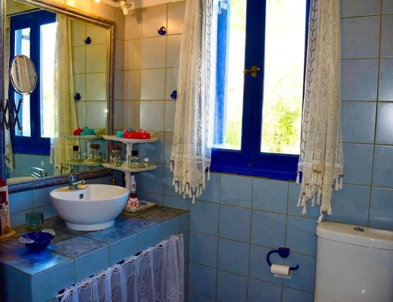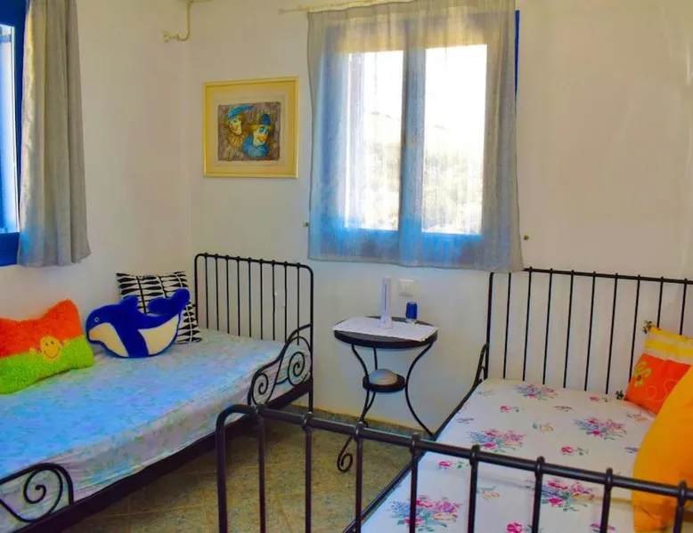Accommodations Features: Oceanis Cycladic House in Andros offers a holiday home with three bedrooms and one bathroom. The property includes a garden and terrace, providing ample outdoor space. Amenities and Facilities: Guests can enjoy sea views, air-conditioning, a fully equipped kitchen, fireplace, barbecue, and outdoor dining area. Free on-site private parking is available, and the property is pet-friendly. Location and Attractions: Located in Makrotantalo, Andros, the holiday home is 1.2 mi from Kalamitsi Beach and 61 mi from Eleftherios Venizelos Airport. Nearby attractions include the Archaeological Museum of Andros and Museum of Contemporary Art of Andros, each 27 mi away. This holiday home features a fireplace. Guests will find a stovetop, a refrigerator, kitchenware and an oven in the well-fitted kitchen. The holiday home also comes with a barbecue. The air-conditioned holiday home features a flat-screen TV, a private entrance, a seating area, a dining area as well as sea views. The unit has 4 beds.