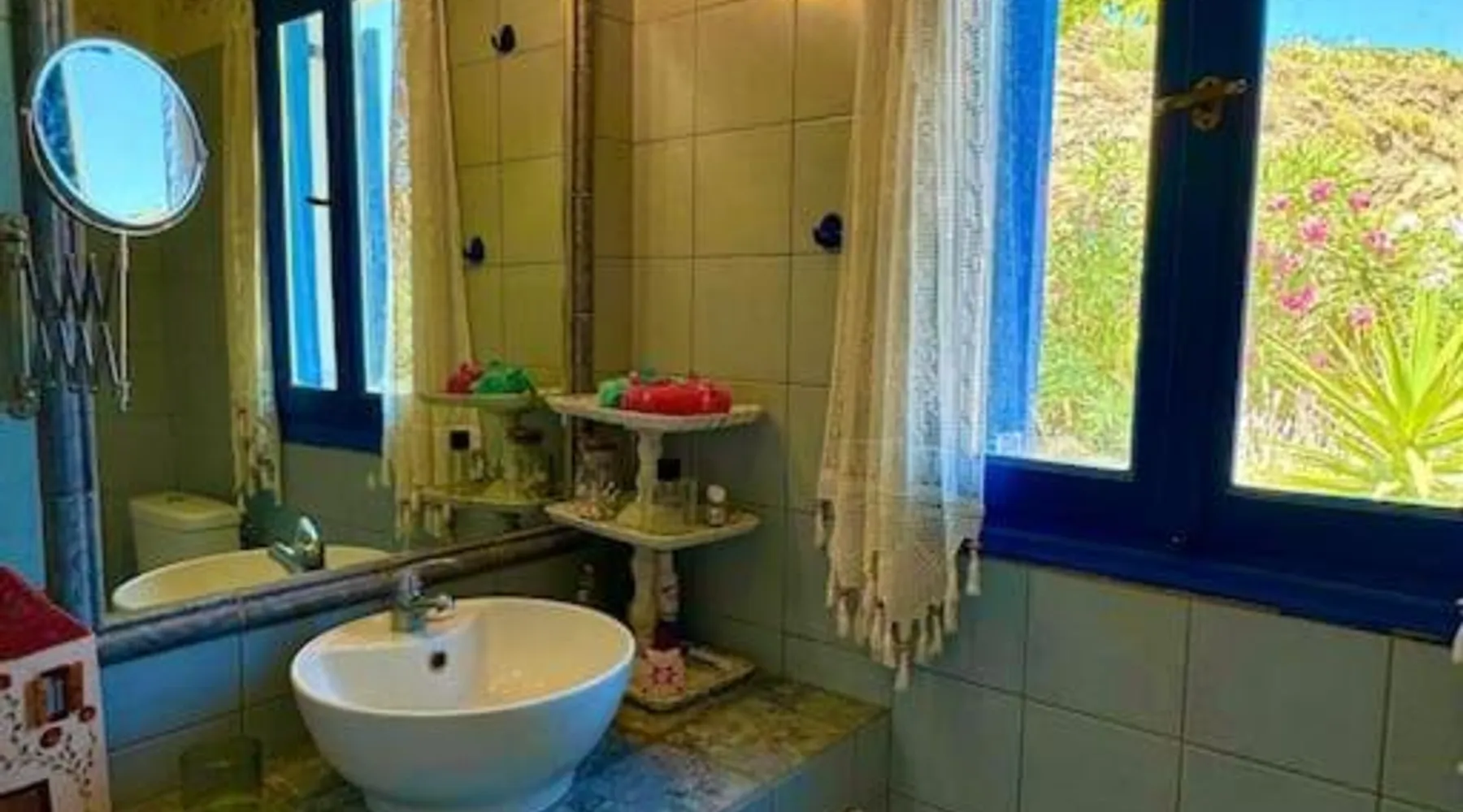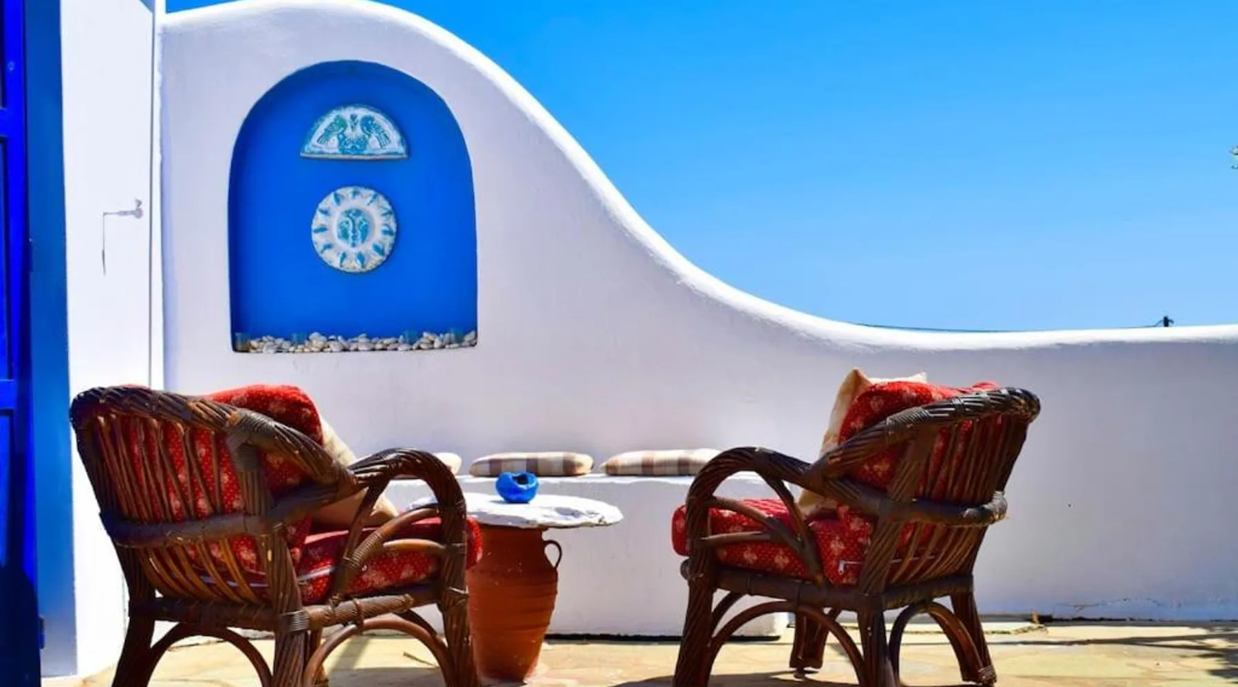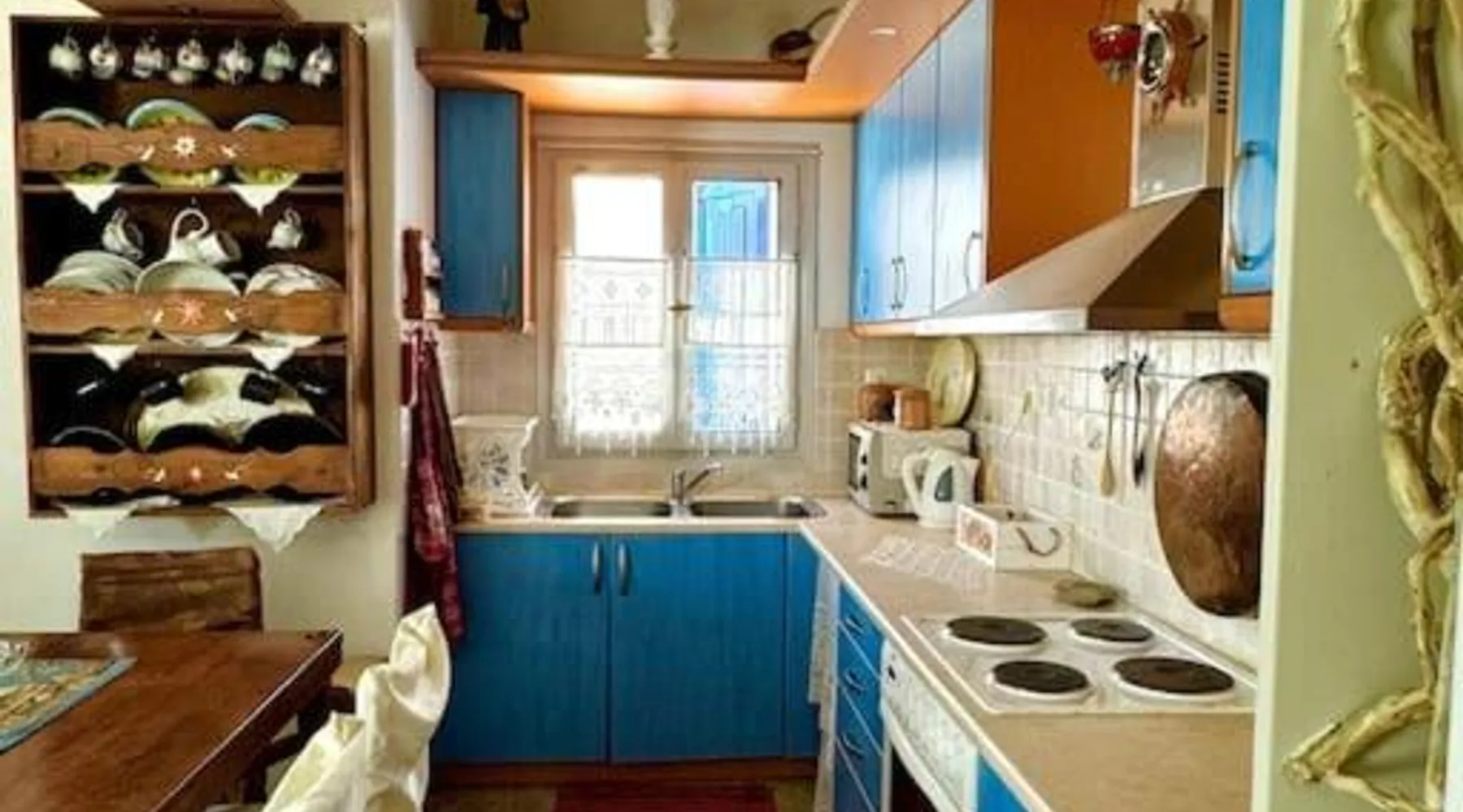 Accommodations Features: Oceanis Cycladic House in Andros offers a holiday home with three bedrooms and one bathroom. The property includes a garden and terrace, providing ample outdoor space. Amenities and Facilities: Guests can enjoy sea views, air-conditioning, a fully equipped kitchen, fireplace, barbecue, and outdoor dining area. Free on-site private parking is available, and the property is pet-friendly. Location and Attractions: Located in Makrotantalo, Andros, the holiday home is 1.2 mi from Kalamitsi Beach and 61 mi from Eleftherios Venizelos Airport. Nearby attractions include the Archaeological Museum of Andros and Museum of Contemporary Art of Andros, each 27 mi away. This holiday home features a fireplace. Guests will find a stovetop, a refrigerator, kitchenware and an oven in the well-fitted kitchen. The holiday home also comes with a barbecue. The air-conditioned holiday home features a flat-screen TV, a private entrance, a seating area, a dining area as well as sea views. The unit has 4 beds.