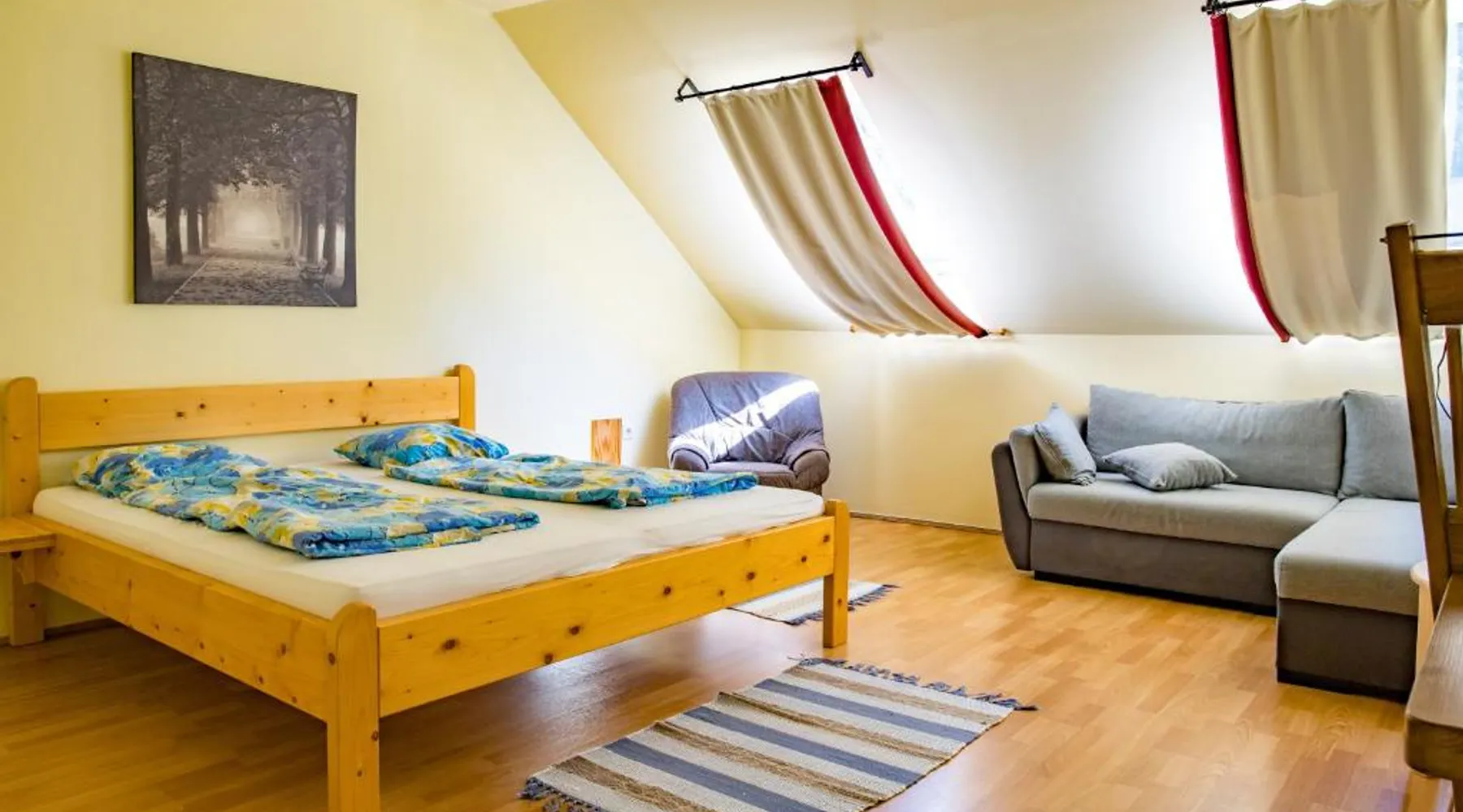 Beachfront Location: Napkelte Vendégház in Orfű offers direct beachfront access, a sun terrace, and a lush garden. Guests can relax by the shore or enjoy the outdoor seating areas. Comfortable Accommodations: The guest house features family rooms with private bathrooms, mountain views, and modern amenities. Each room includes a dining area, sofa bed, and free WiFi. Dining Experience: A family-friendly restaurant serves local cuisine with vegetarian options. The on-site bar provides a cozy atmosphere for evening gatherings. Local Attractions: Nearby attractions include UNESCO World Heritage sites such as Cella Septichora Visitor Center and Pécs Cathedral, each 9.9 mi away. Hiking trails are available in the surroundings. The hot tub is the standout feature of this holiday home. Boasting a private entrance, this spacious holiday home also includes 1 living room, 9 separate bedrooms and 9 bathrooms with a walk-in shower. Featuring a terrace with lake views, this holiday home also offers a seating area and a flat-screen TV with cable channels. The unit has 23 beds.