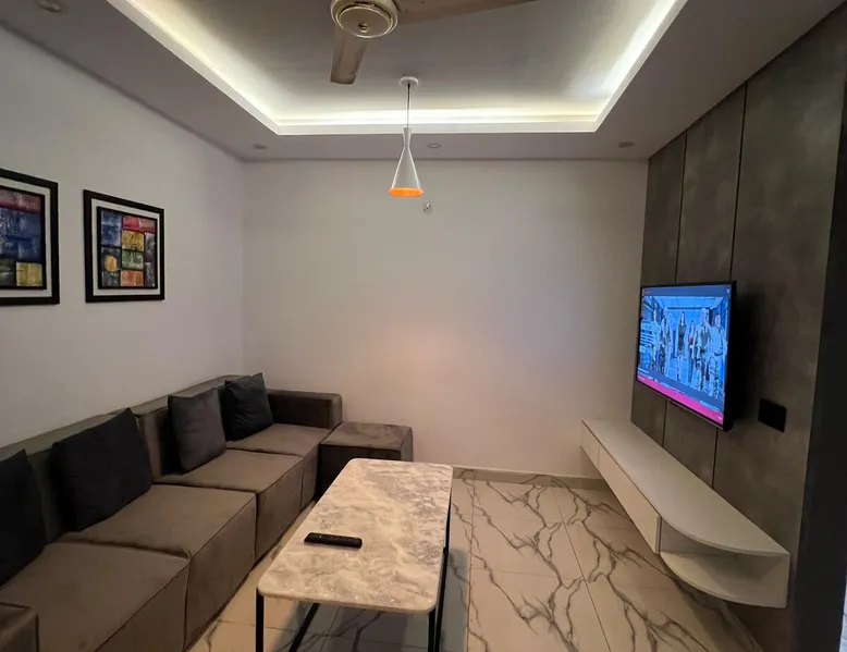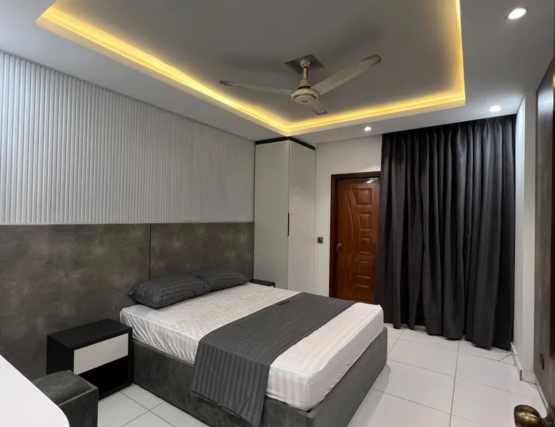 This luxurious 2-bedroom apartment boasts modern architecture and sleek finishes, offering a spacious living area with a combined drawing and dining space perfect for entertaining. The two bedrooms are generously sized, with ample storage and stylish en-suite bathrooms. The apartment features top-of-the-line fixtures, fittings, and appliances, ensuring a comfortable and sophisticated living experience. (Unmarried couples drugs and alcohol not allowed) Guest access The entire apartment