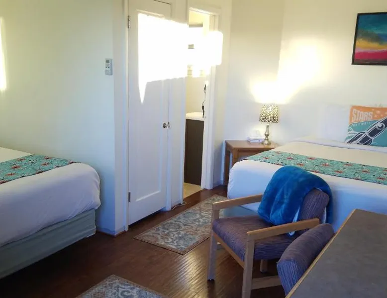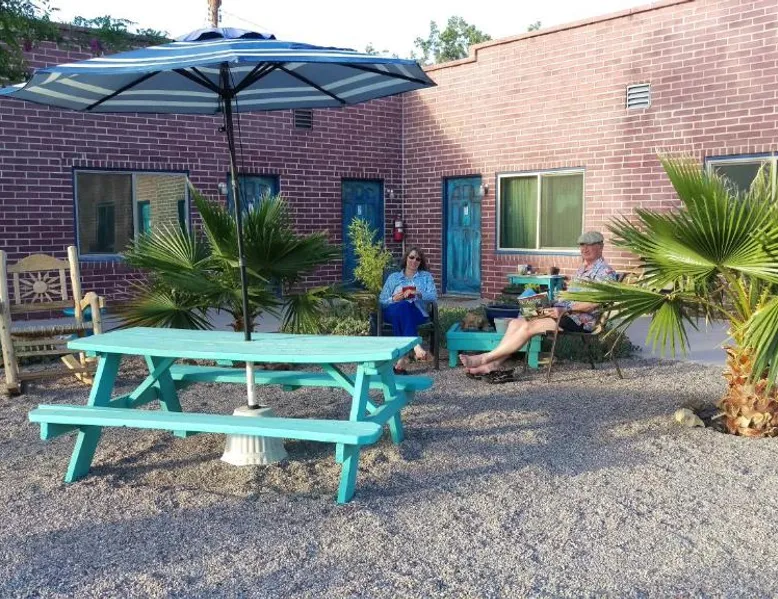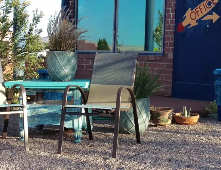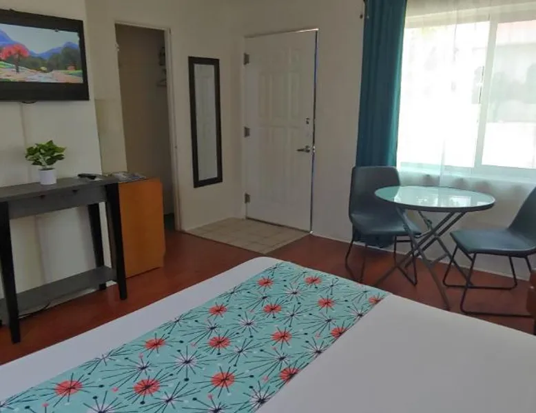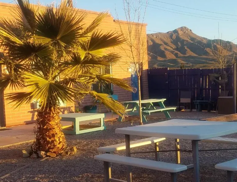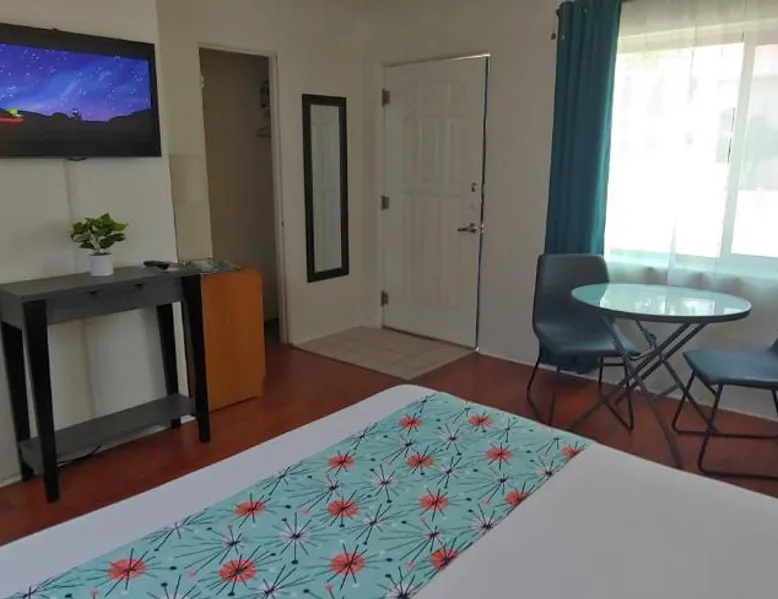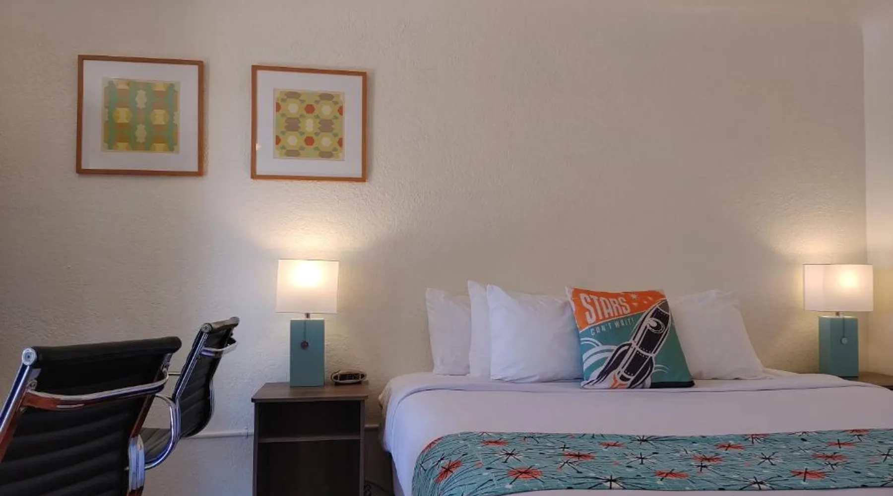 Comfortable Accommodations: Rocket Inn in Truth or Consequences offers family rooms with private bathrooms, air-conditioning, and parquet floors. Each room includes a tea and coffee maker, hairdryer, and free toiletries. Essential Facilities: Guests enjoy a garden and free WiFi. The hotel provides a concierge service, outdoor seating area, picnic area, and free on-site private parking. Additional Amenities: Rooms feature a patio with views of local landmarks, walk-in showers, refrigerators, microwaves, TVs, and wardrobes. Free toiletries and a coffee machine enhance the stay. Guest Satisfaction: Highly rated for room cleanliness, staff support, and comfort. Grant County Airport is 93 mi away. This air-conditioned double room is consisted of of a flat-screen TV with cable channels, a private bathroom as well as outdoor furniture. The unit has 1 bed.