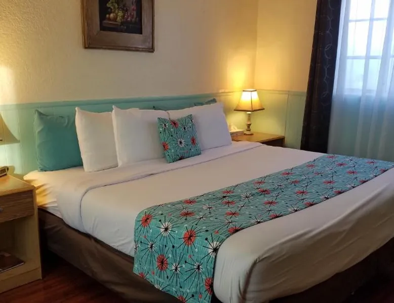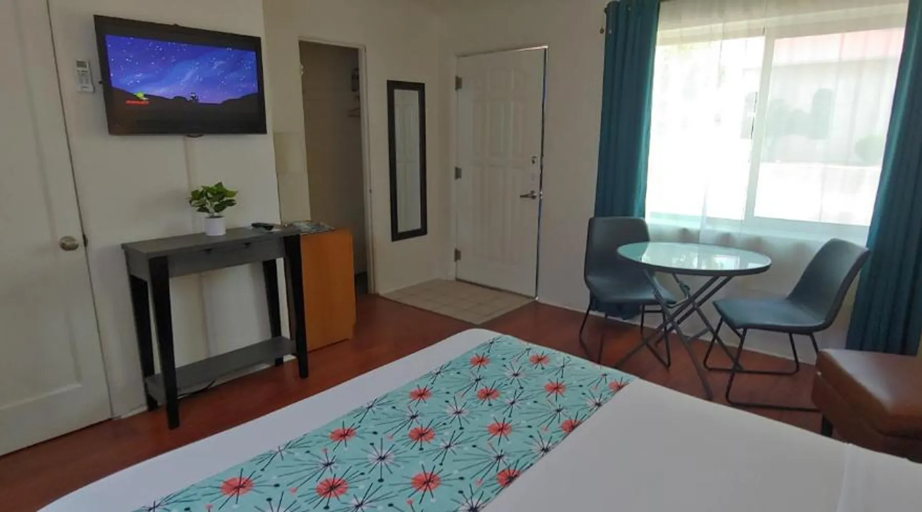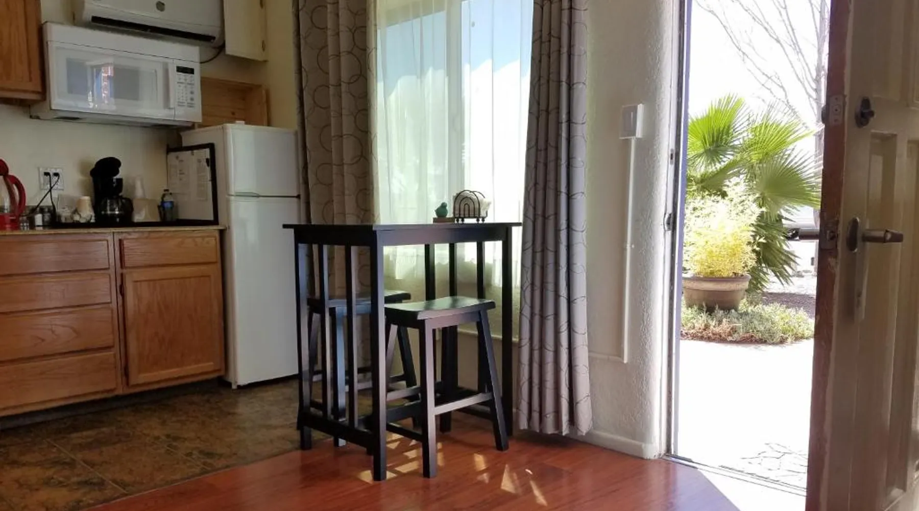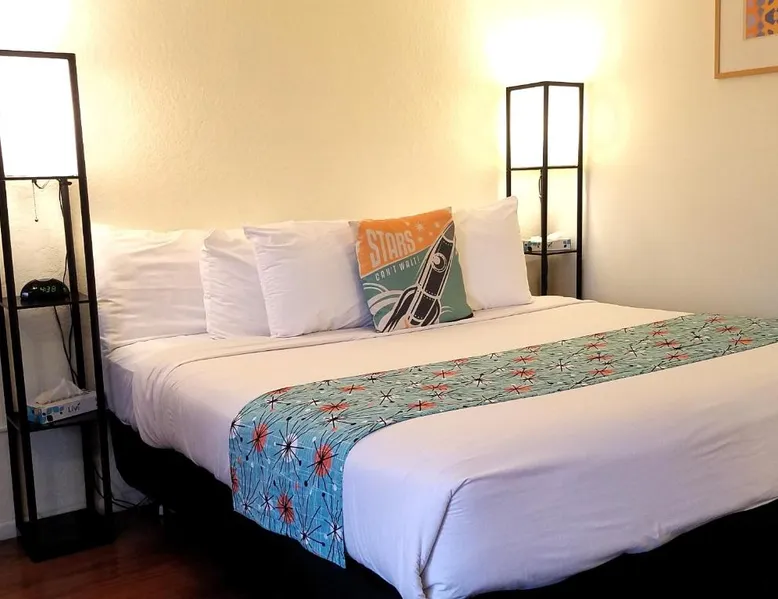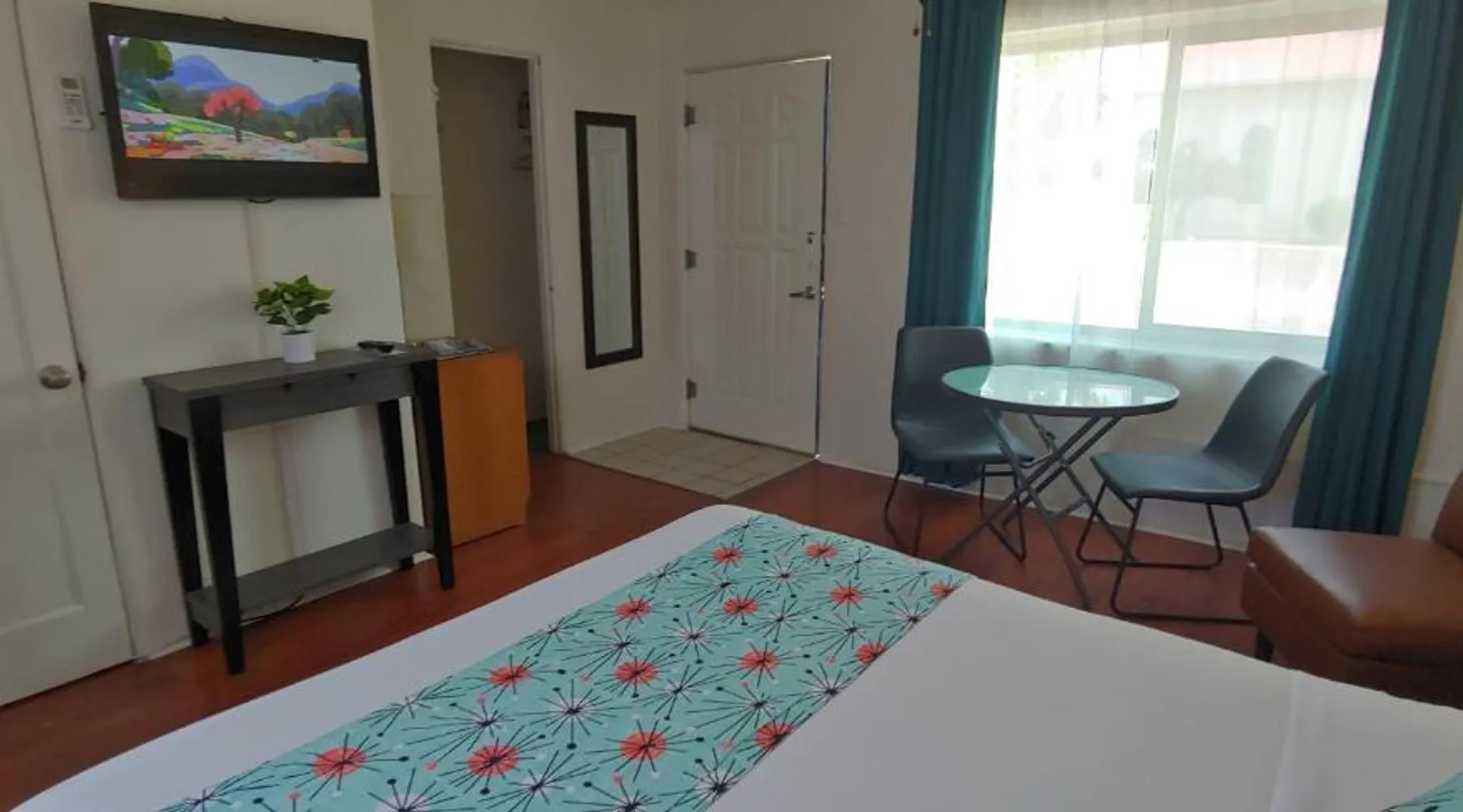 Comfortable Accommodations: Rocket Inn in Truth or Consequences offers family rooms with private bathrooms, air-conditioning, and parquet floors. Each room includes a tea and coffee maker, hairdryer, and free toiletries. Essential Facilities: Guests enjoy a garden and free WiFi. The hotel provides a concierge service, outdoor seating area, picnic area, and free on-site private parking. Additional Amenities: Rooms feature a patio with views of local landmarks, walk-in showers, refrigerators, microwaves, TVs, and wardrobes. Free toiletries and a coffee machine enhance the stay. Guest Satisfaction: Highly rated for room cleanliness, staff support, and comfort. Grant County Airport is 93 mi away. This air-conditioned double room is consisted of of a flat-screen TV with cable channels, a private bathroom as well as outdoor furniture. The unit has 1 bed.