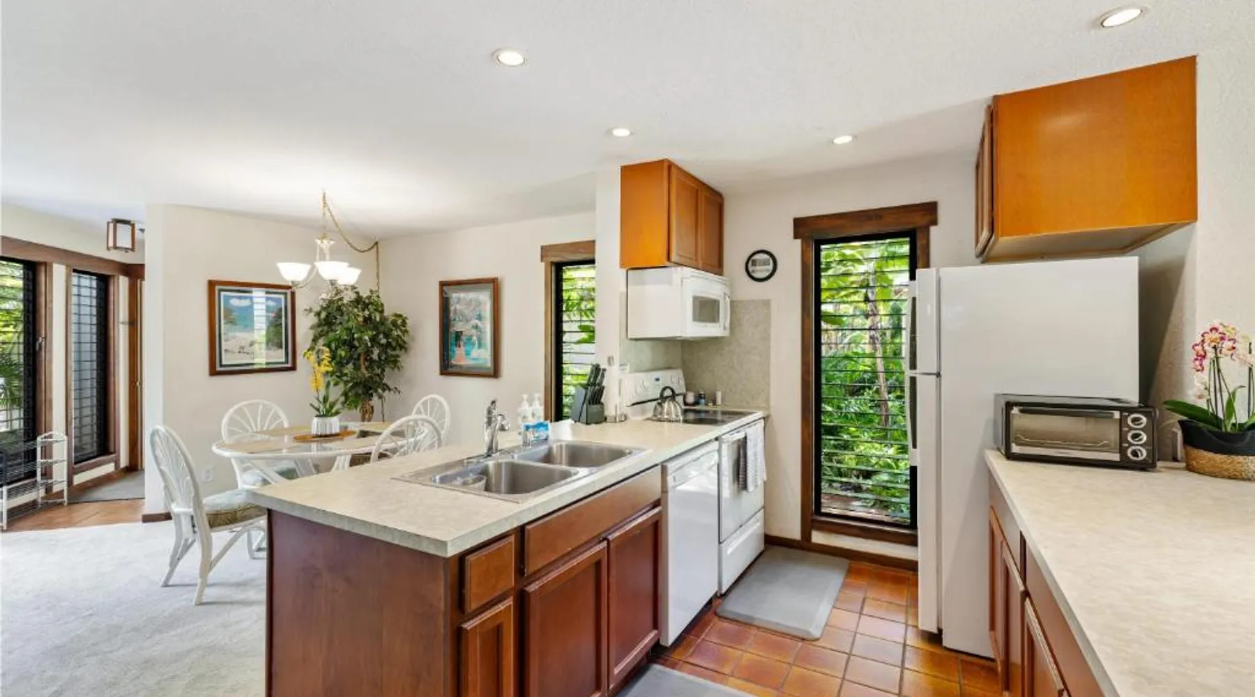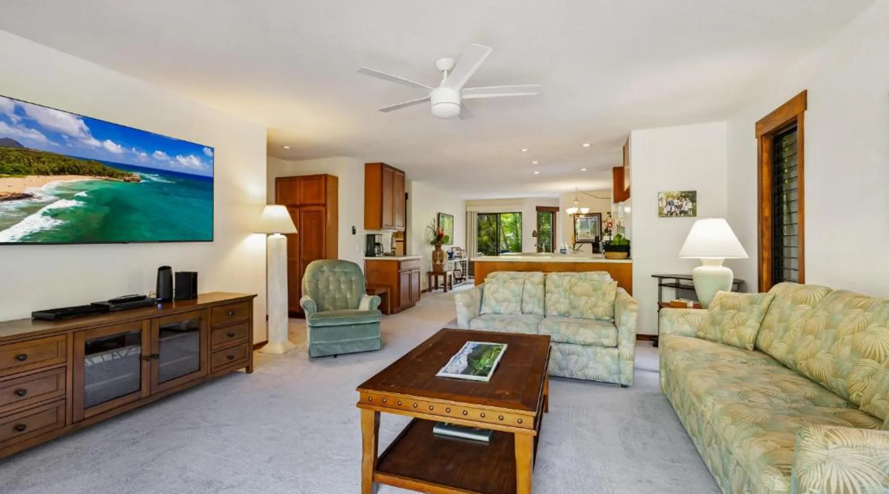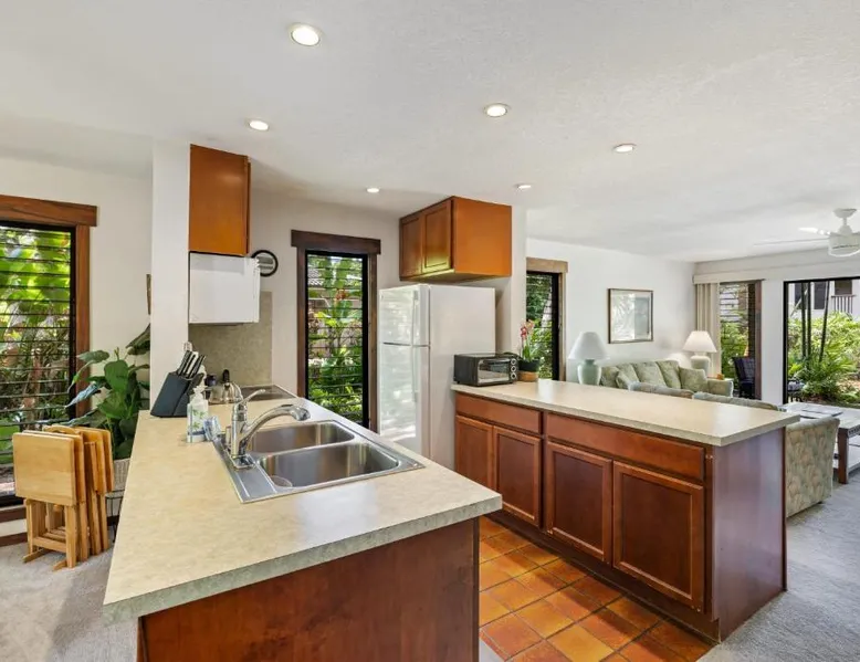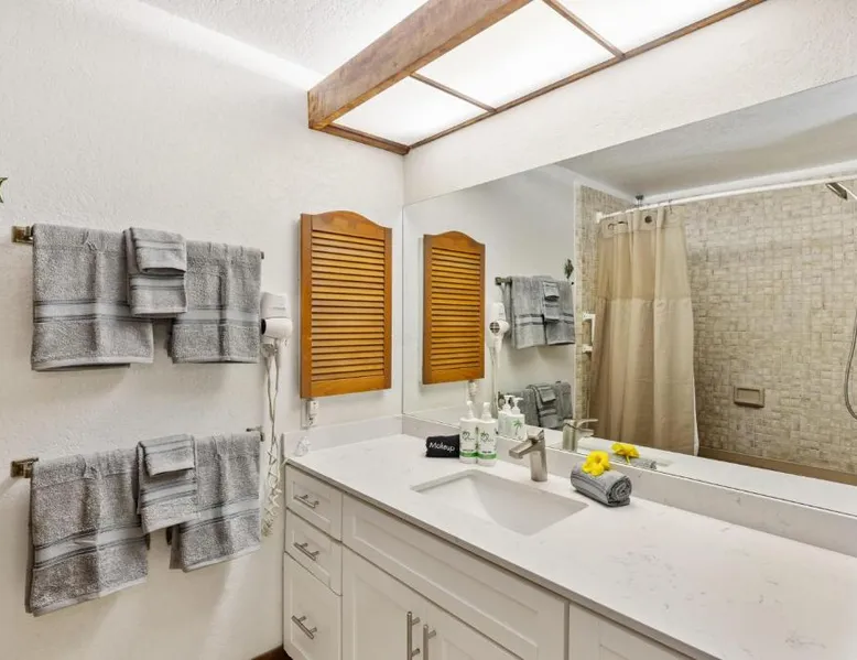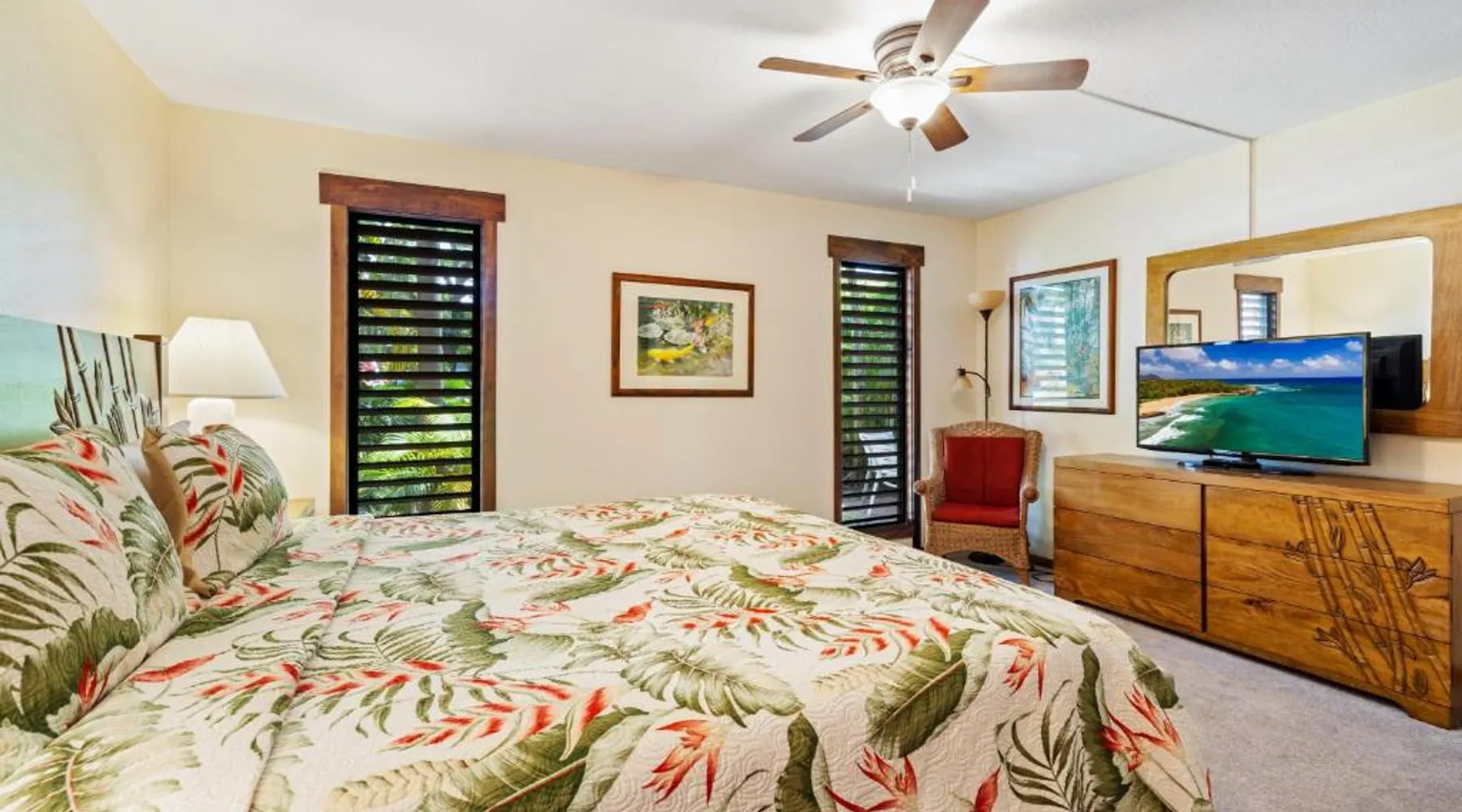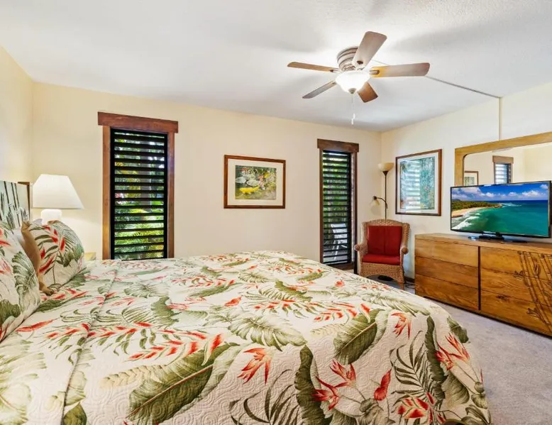 Spacious Holiday Home in Koloa: Waikomo Stream Villas 103 offers a spacious setting in Koloa, United States. Guests enjoy free WiFi throughout the property. Comfortable Living Spaces: The holiday home features one bedroom and one bathroom, a living room with a sofa bed, and a fully equipped kitchen. Sea views enhance the relaxing atmosphere. Modern Amenities: Amenities include a washing machine, dishwasher, microwave, and TV. Additional features include a dining area, outdoor dining space, and a tea and coffee maker. Nearby Attractions: Baby Beach is less than 0.6 mi away, while Kiahuna Golf Course and Prince Kuhio Park are both 1.9 mi from the property. Lihue Airport is 14 mi distant. This spacious apartment consists of 1 living room, 1 separate bedroom and 1 bathroom with a bath and a hairdryer. In the well-fitted kitchen, guests will find a stovetop, a refrigerator, a dishwasher and kitchenware. The apartment provides a washing machine, a tea and coffee maker, a dining area, a TV with cable channels, as well as sea views. The unit offers 2 beds.