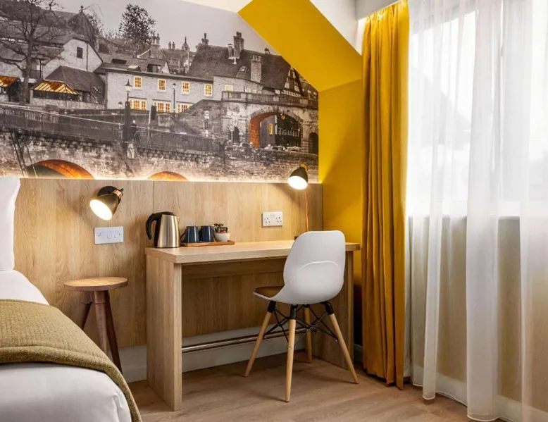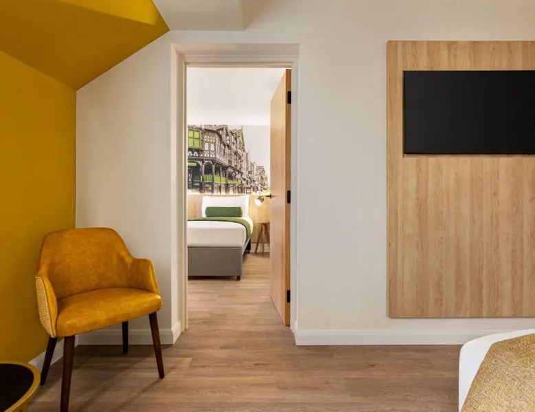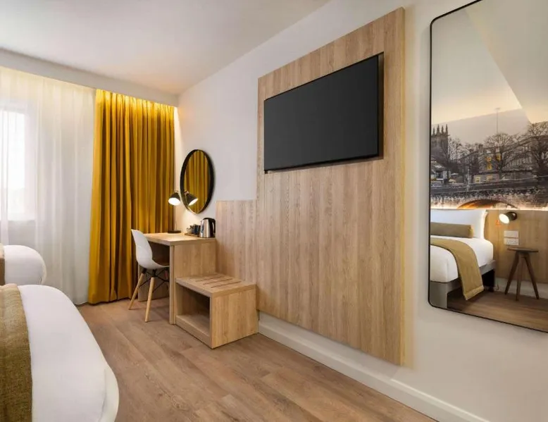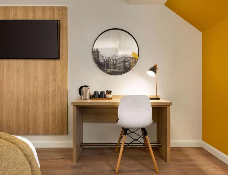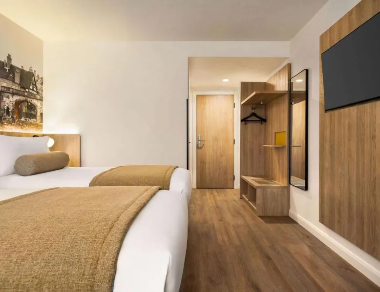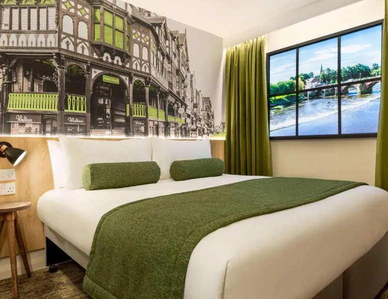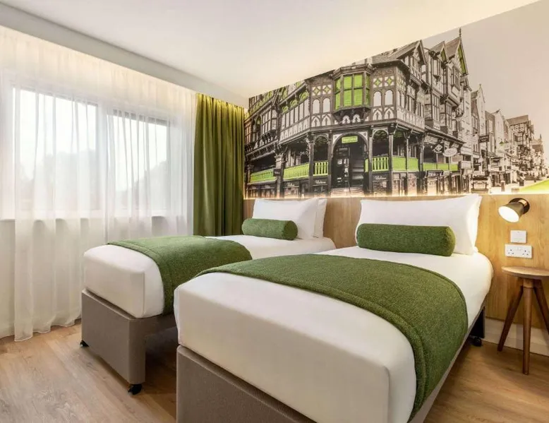 Super 8 by Wyndham Chester East is located just off junction 14 of the M56 motorway, a 24-hour reception, free parking and rooms with TVs. The rooms all feature a lounge chair, a clock radio and tea/coffee making facilities. Wi-Fi is available throughout the Super 8 by Wyndham Chester East,. Helsby Train Station has services to Chester town center and is a 5-minute drive from the Inn. Chester Zoo is a 10-minute drive from the hotel. This air-conditioned double room is consisted of of a flat-screen TV with streaming services and a private bathroom. The unit has 2 beds.