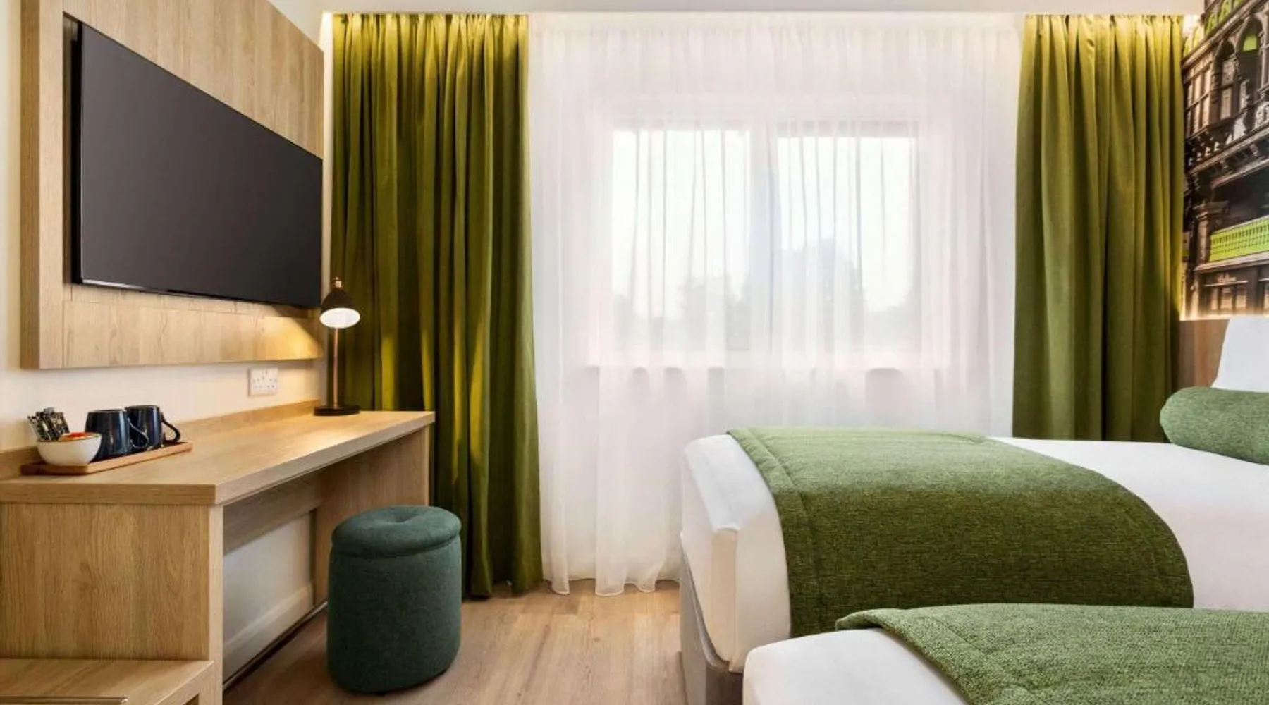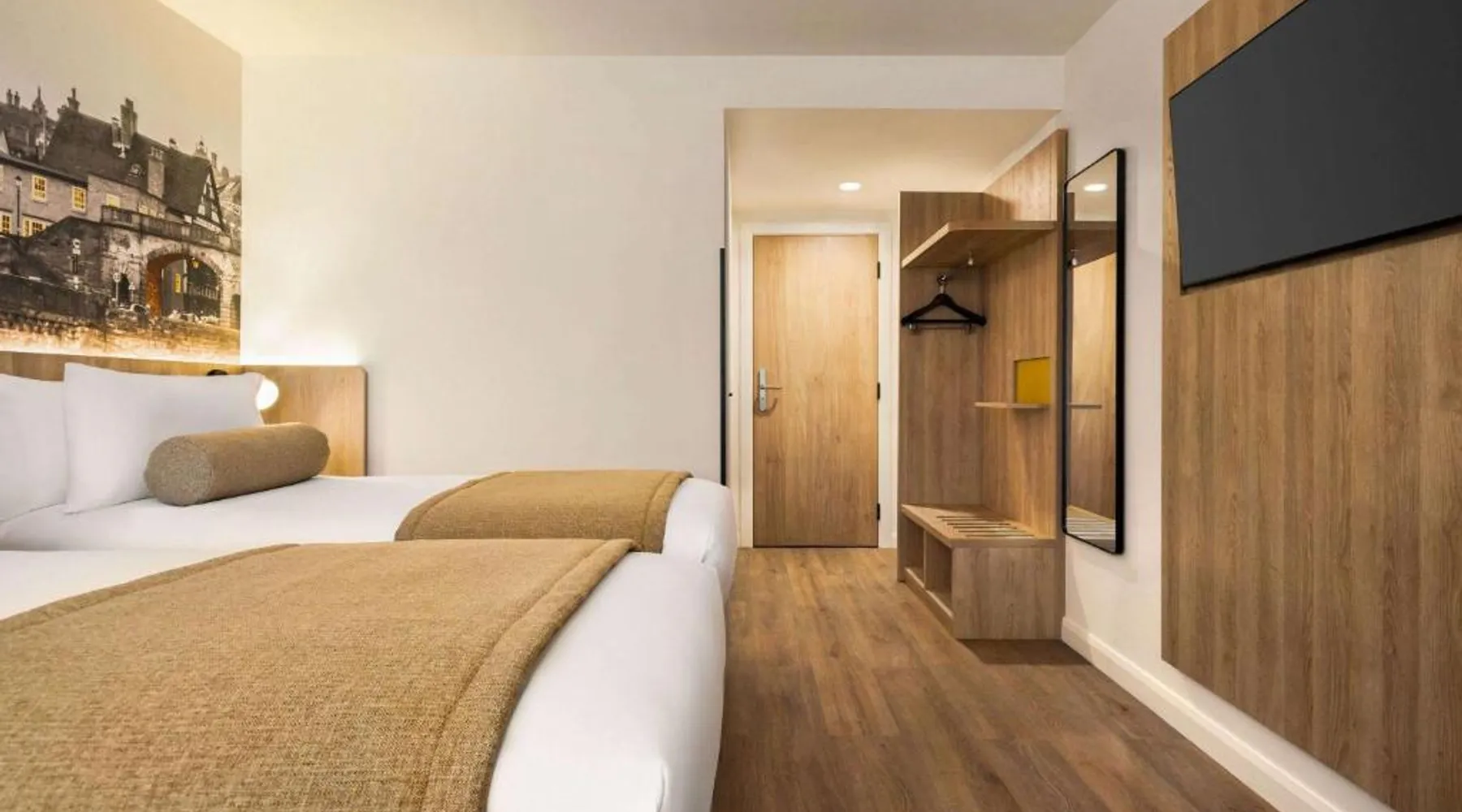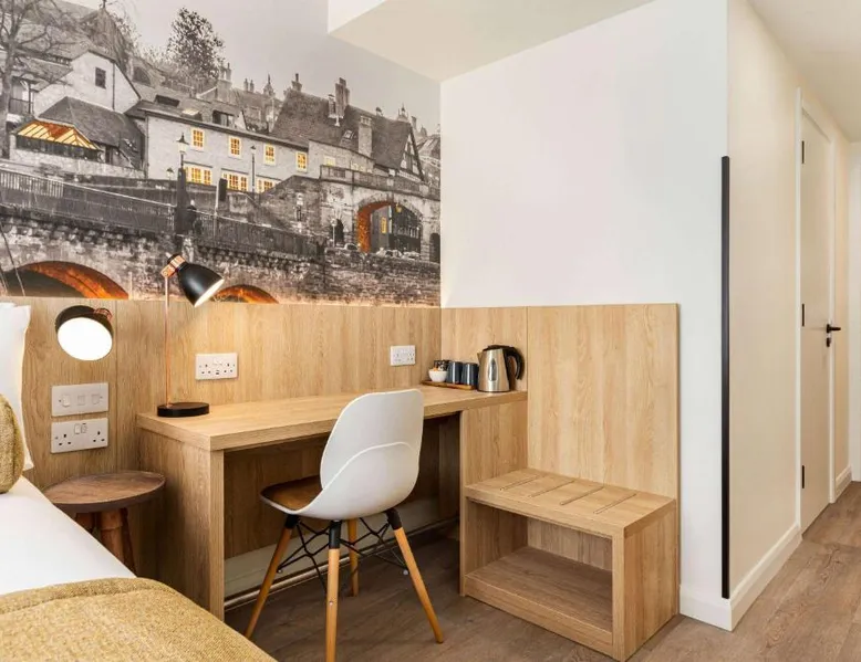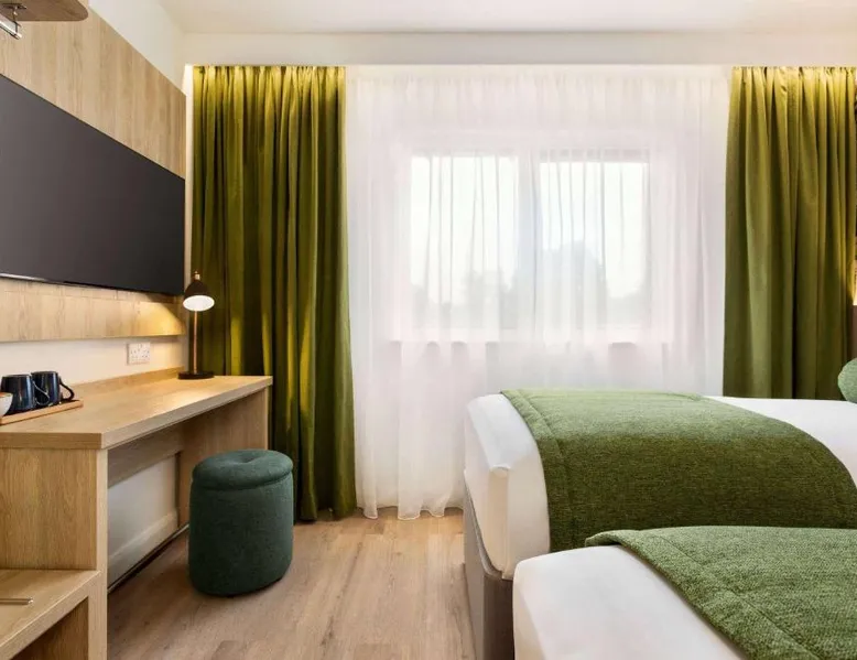 Super 8 by Wyndham Chester East is located just off junction 14 of the M56 motorway, a 24-hour reception, free parking and rooms with TVs. The rooms all feature a lounge chair, a clock radio and tea/coffee making facilities. Wi-Fi is available throughout the Super 8 by Wyndham Chester East,. Helsby Train Station has services to Chester town center and is a 5-minute drive from the Inn. Chester Zoo is a 10-minute drive from the hotel. This air-conditioned double room is consisted of of a flat-screen TV with streaming services and a private bathroom. The unit has 2 beds.