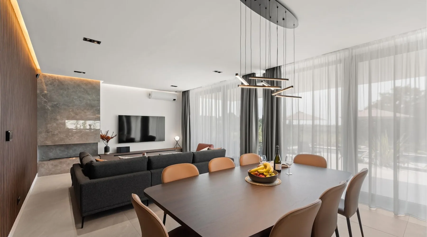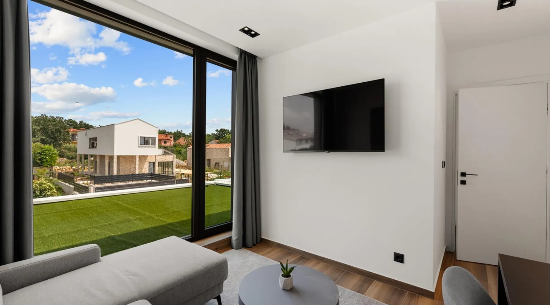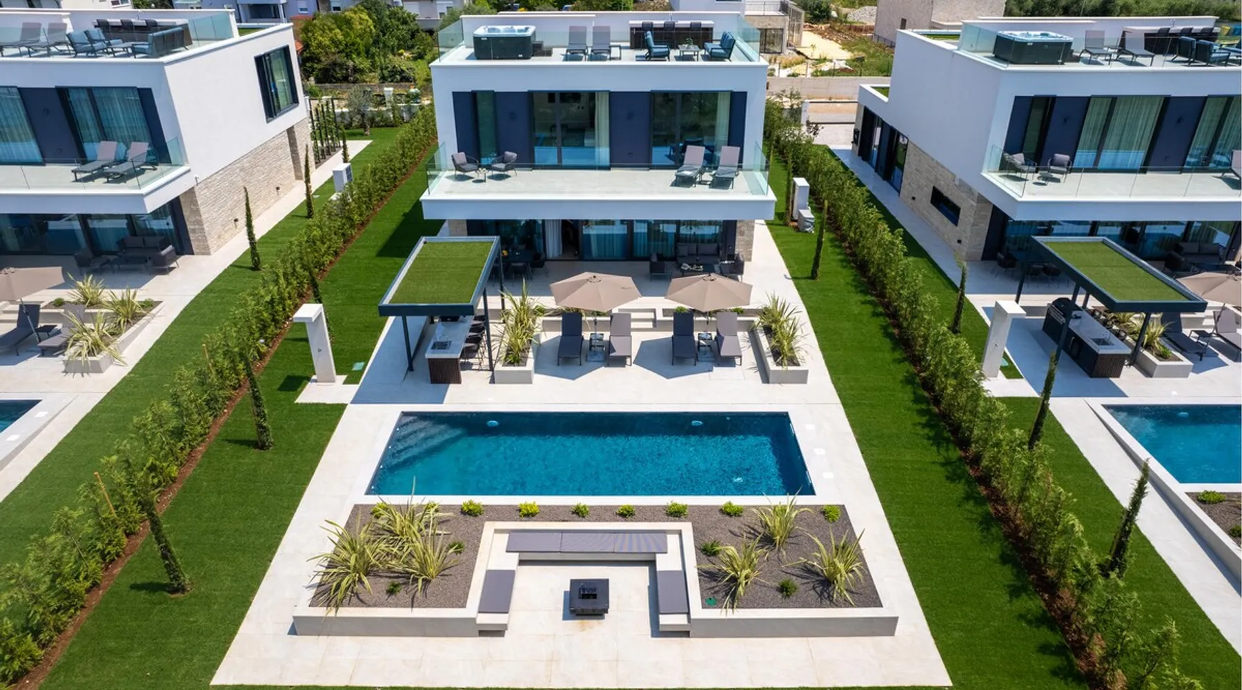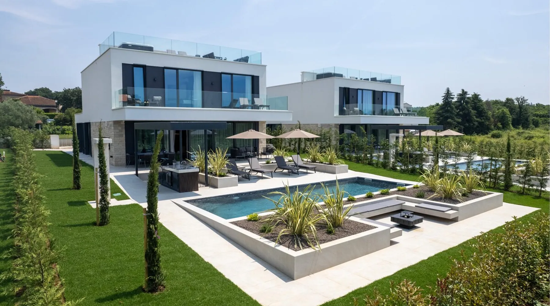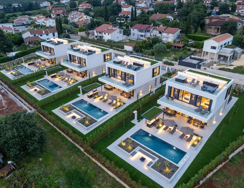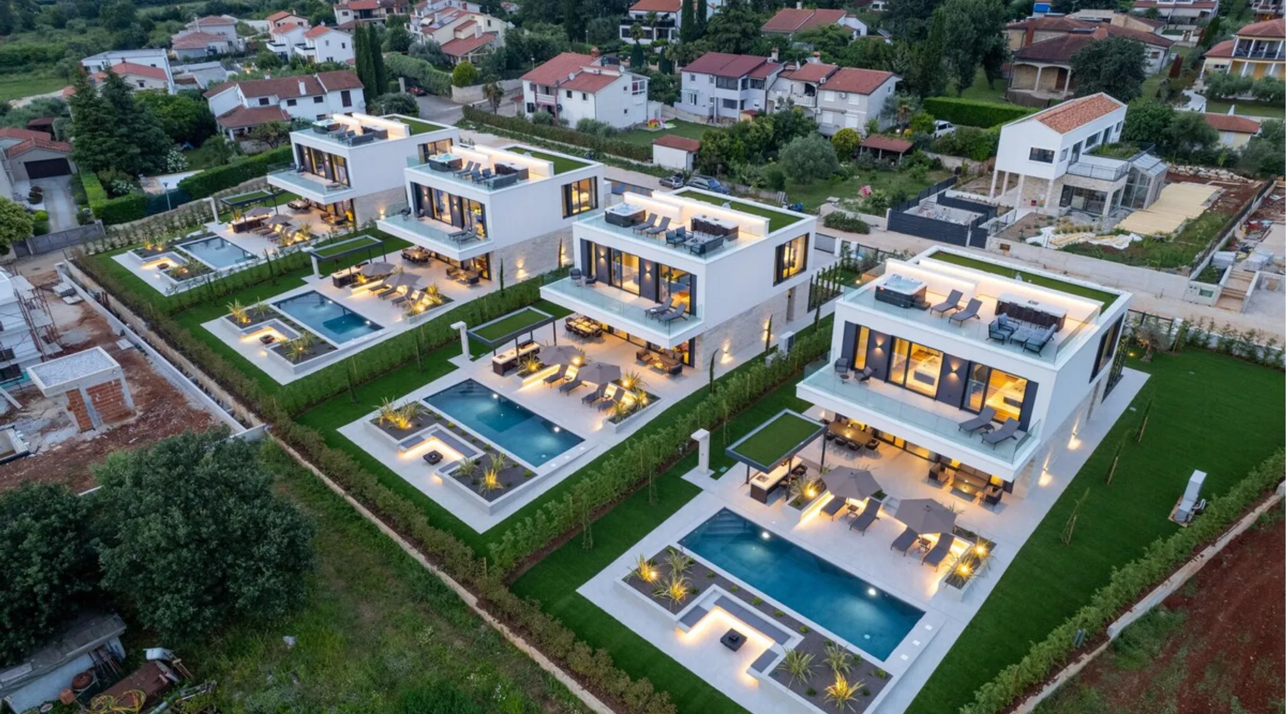 Experience a luxurious holiday in this exclusive holiday home in Porec Kukci. The space Experience a luxurious holiday in this exclusive holiday home in Porec Kukci. Welcome to your dream holiday. The two-storey villa will impress you with its stylish furnishings and modern amenities. High-quality materials, select design and attention to detail create an atmosphere of rest and relaxation in this holiday home. Numerous rooms invite you to enjoy your privacy or get together in the open-plan living room on the ground floor. The spacious bedrooms with en-suite bathrooms ensure maximum comfort. On the roof terrace you will find a whirlpool and a kitchenette with cooling facilities for drinks, perfect for relaxing evenings. The terrace with covered summer kitchen and adjoining pool with sun deck invites you to linger. A sauna and a fireplace offer additional relaxation and socialising. Discover the charming old town of Porec, just a few kilometres away, with its rich history and lively atmosphere. Go on bike tours or hikes through the picturesque Istrian countryside and find peace and quiet. For water sports enthusiasts, the nearby beaches offer a variety of opportunities for swimming, diving and sailing. Try out new water sports and really burn off some energy. You can also visit local wineries and enjoy the culinary specialities of the region. Note: Other identical holiday homes in the immediate vicinity offer space for larger groups or families. Can comfortably fit up to 8 people