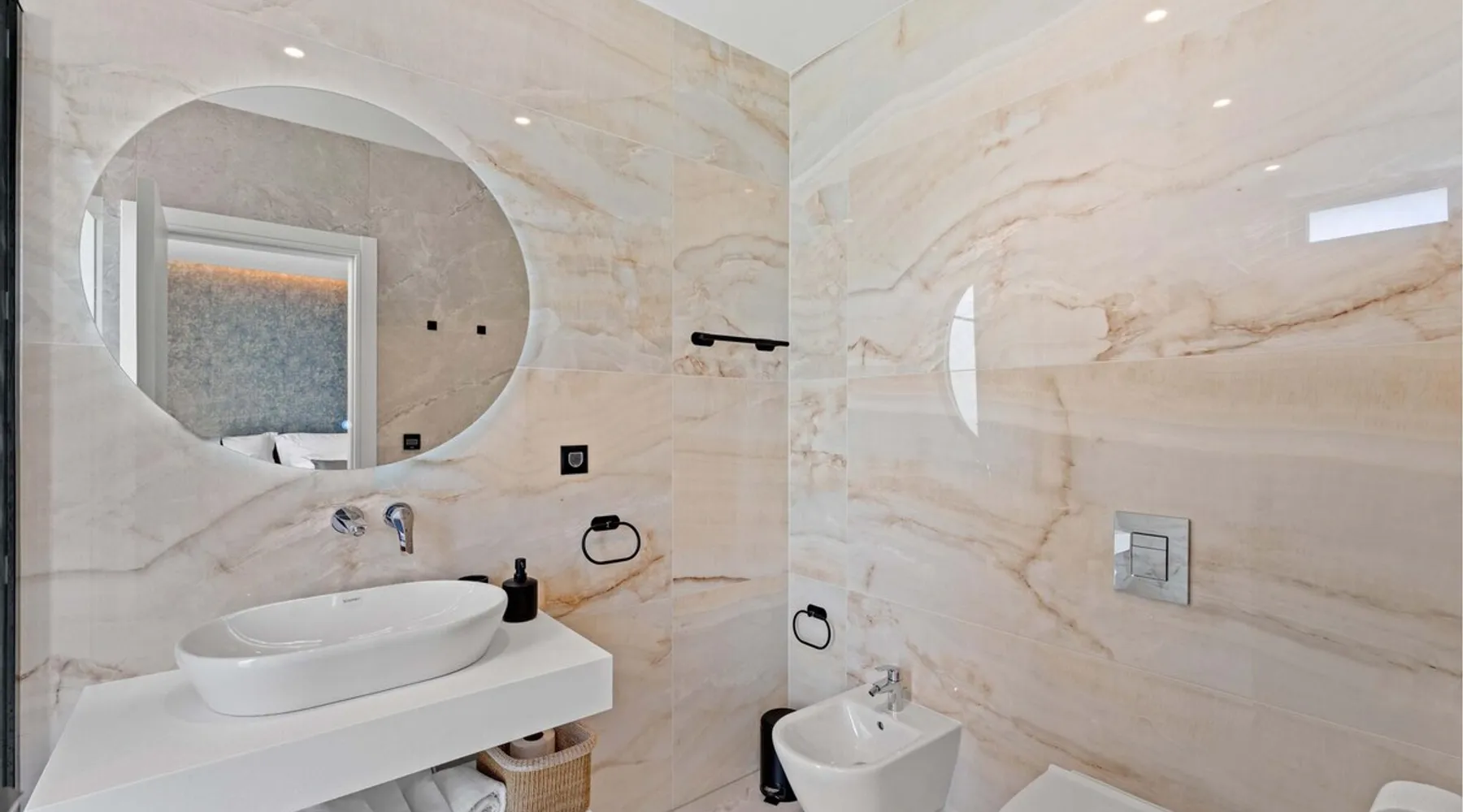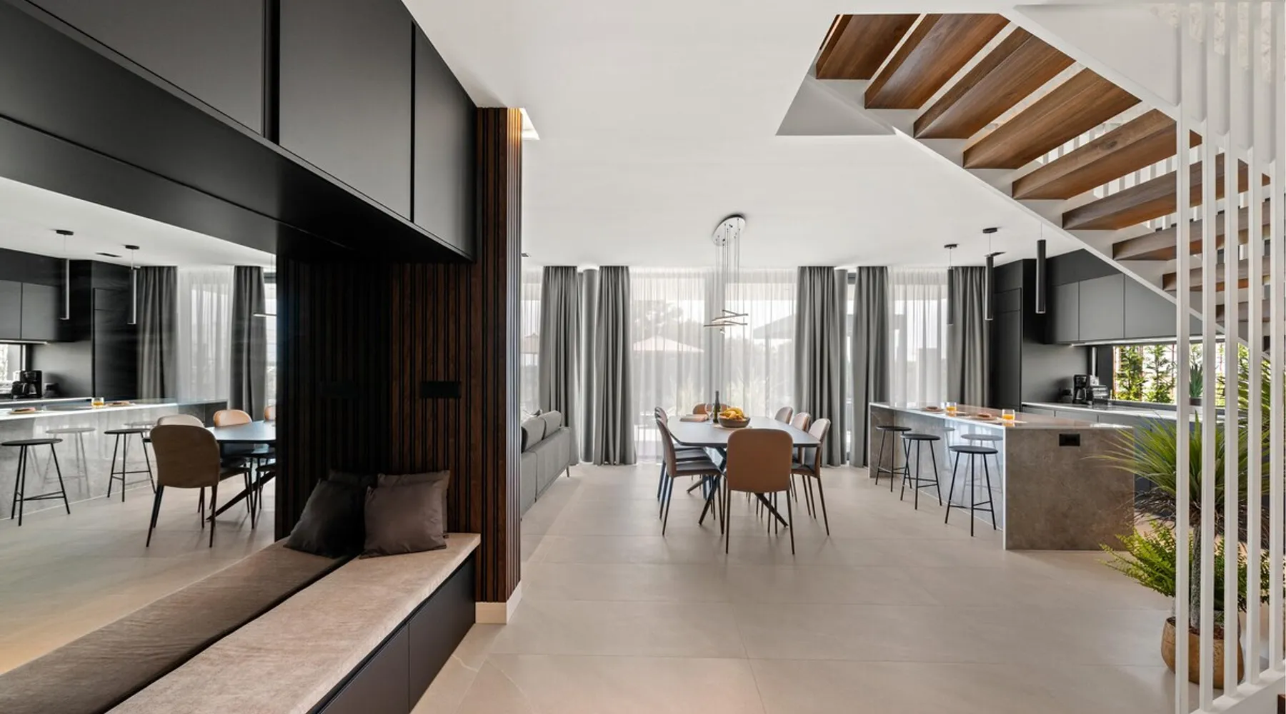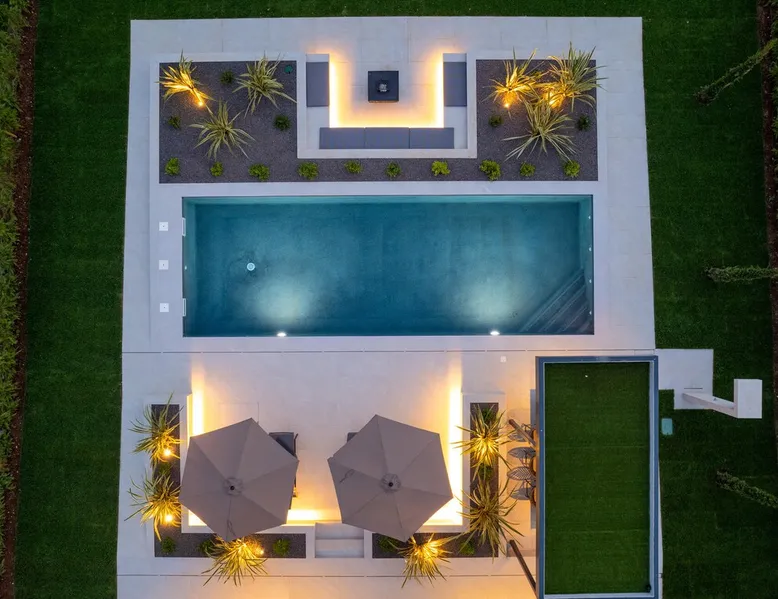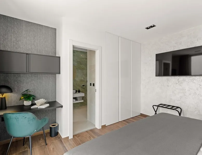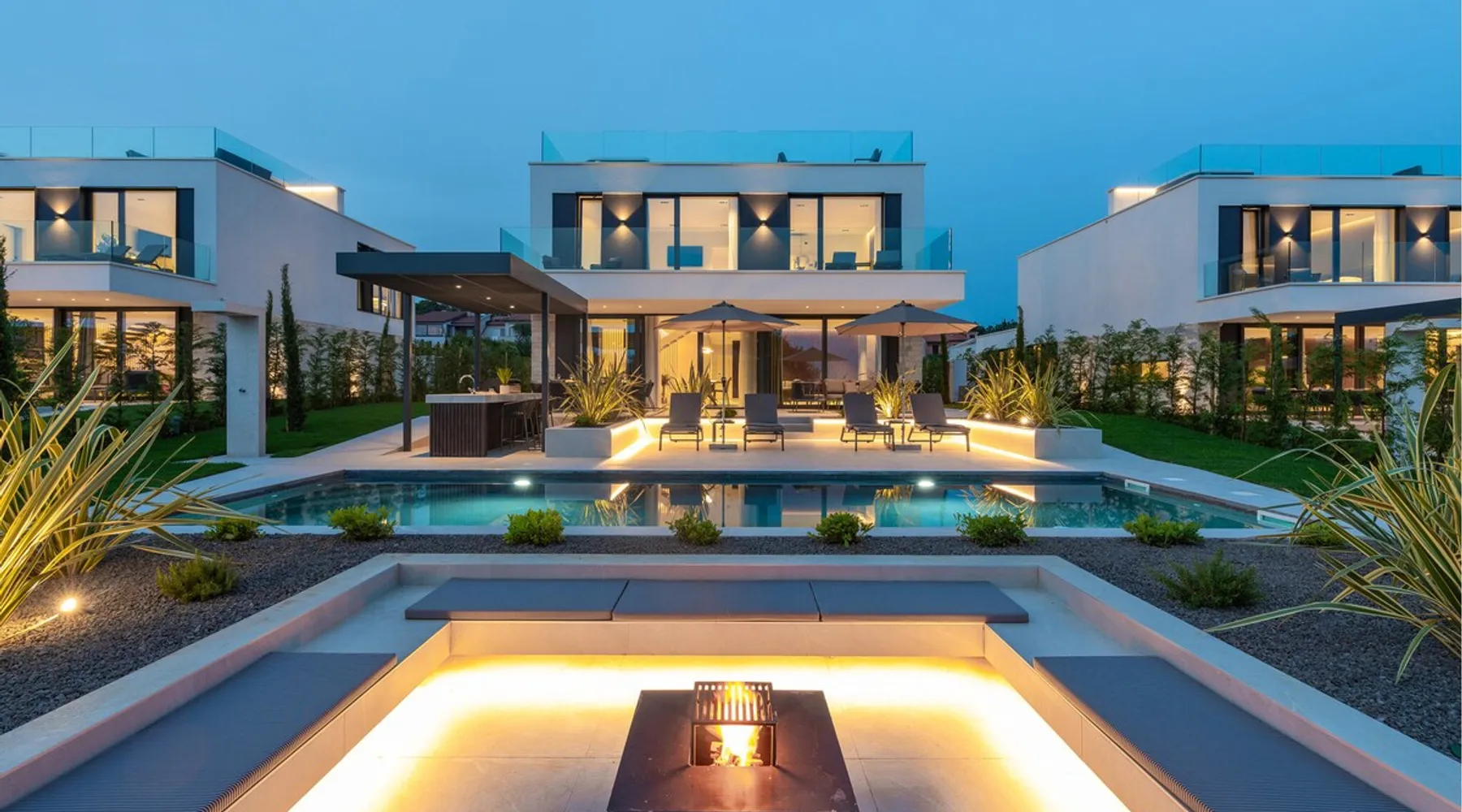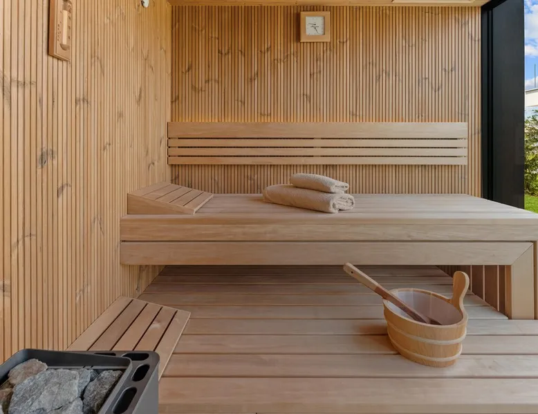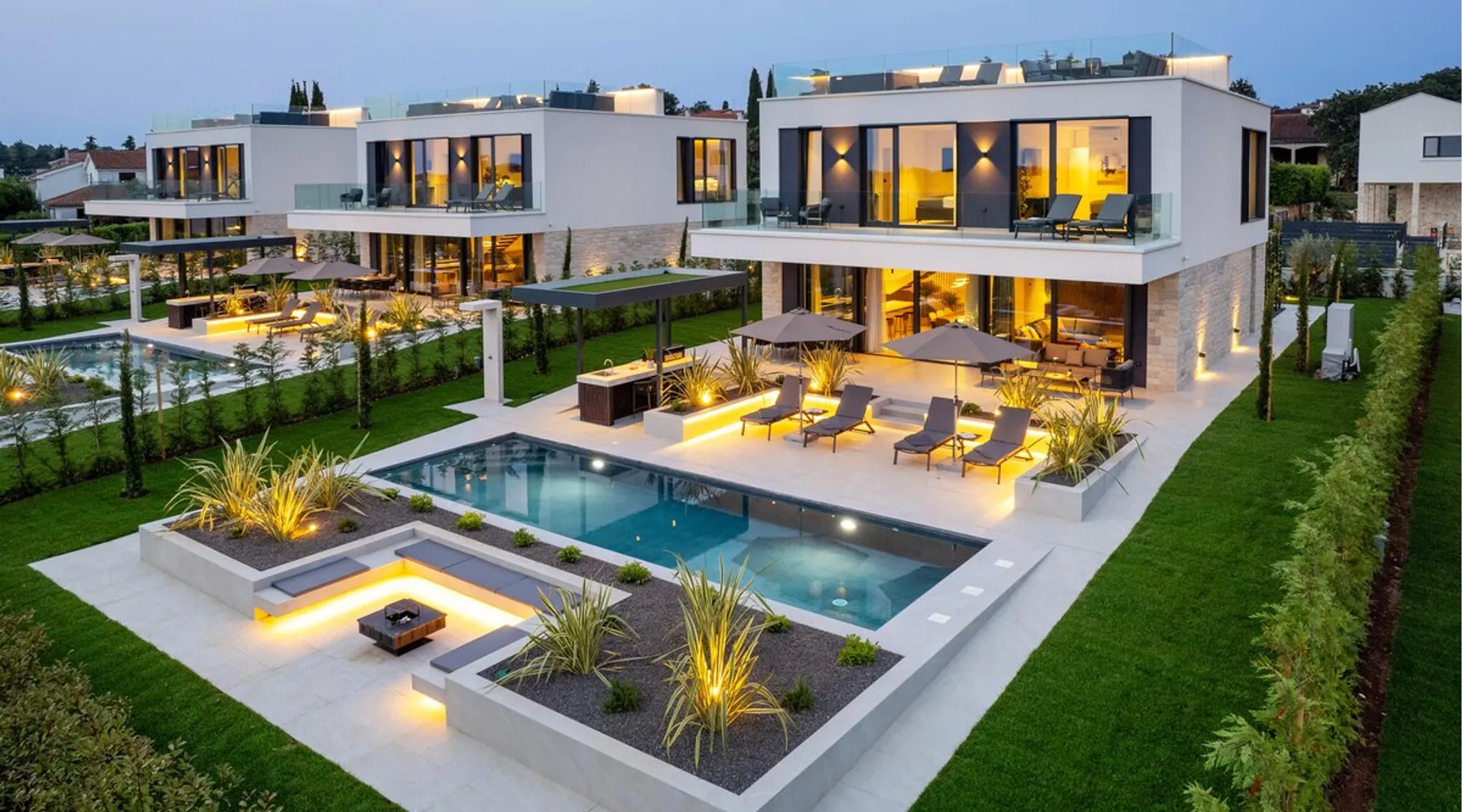 Experience a luxurious holiday in this exclusive holiday home in Porec Kukci. The space Experience a luxurious holiday in this exclusive holiday home in Porec Kukci. Welcome to your dream holiday. The two-storey villa will impress you with its stylish furnishings and modern amenities. High-quality materials, select design and attention to detail create an atmosphere of rest and relaxation in this holiday home. Numerous rooms invite you to enjoy your privacy or get together in the open-plan living room on the ground floor. The spacious bedrooms with en-suite bathrooms ensure maximum comfort. On the roof terrace you will find a whirlpool and a kitchenette with cooling facilities for drinks, perfect for relaxing evenings. The terrace with covered summer kitchen and adjoining pool with sun deck invites you to linger. A sauna and a fireplace offer additional relaxation and socialising. Discover the charming old town of Porec, just a few kilometres away, with its rich history and lively atmosphere. Go on bike tours or hikes through the picturesque Istrian countryside and find peace and quiet. For water sports enthusiasts, the nearby beaches offer a variety of opportunities for swimming, diving and sailing. Try out new water sports and really burn off some energy. You can also visit local wineries and enjoy the culinary specialities of the region. Note: Other identical holiday homes in the immediate vicinity offer space for larger groups or families. Can comfortably fit up to 8 people