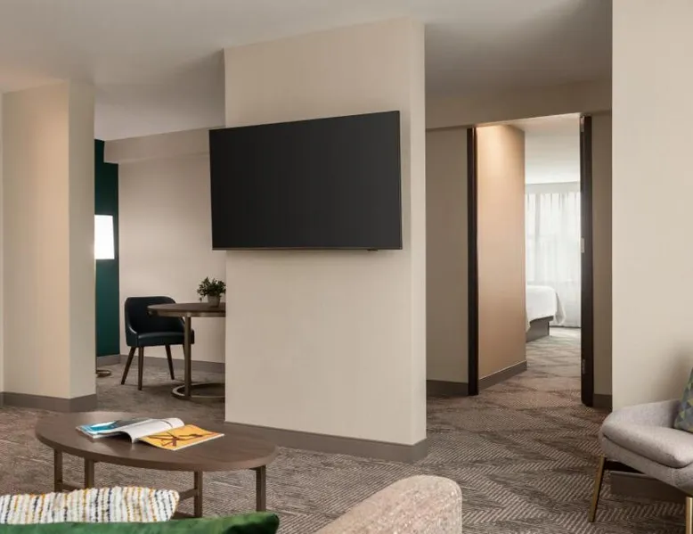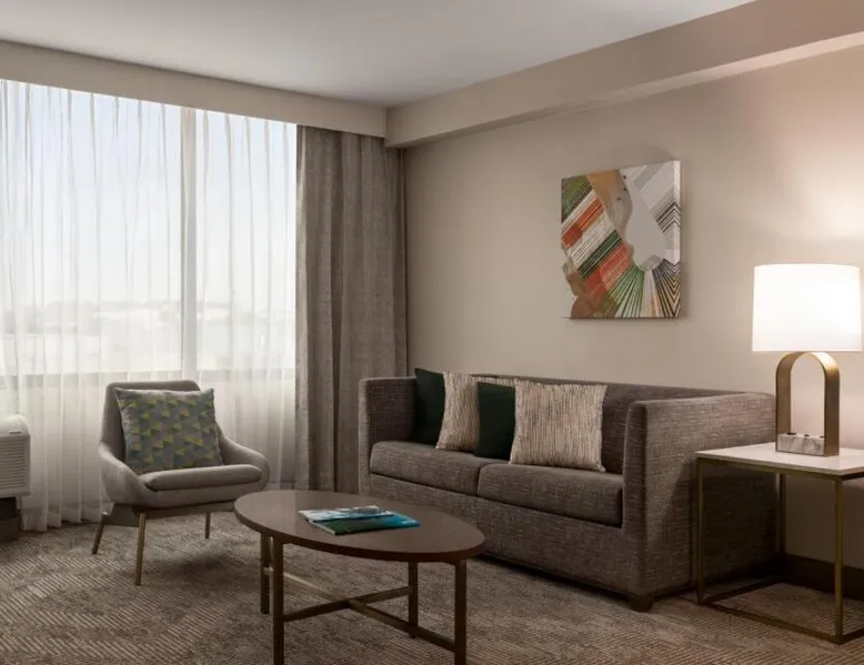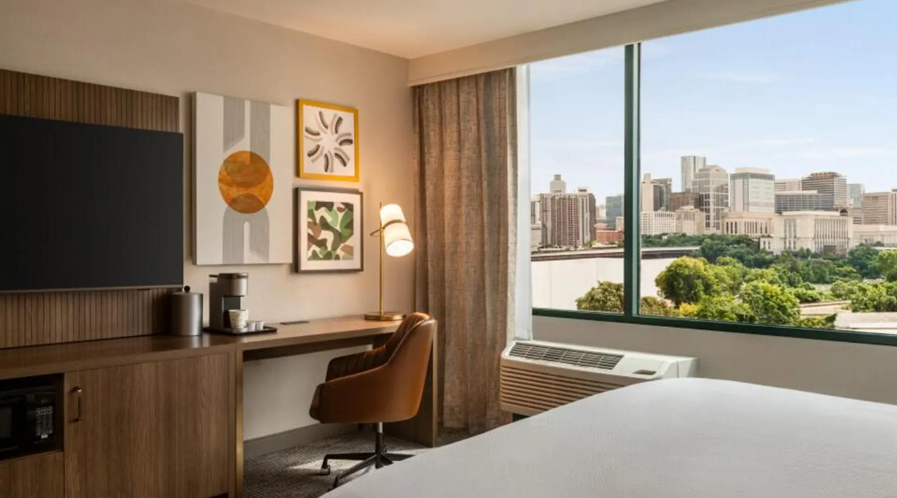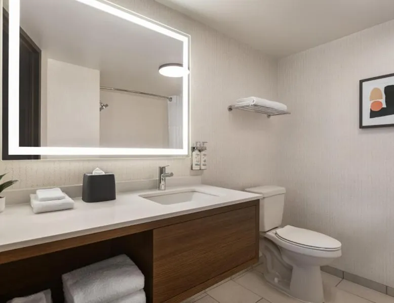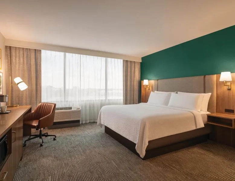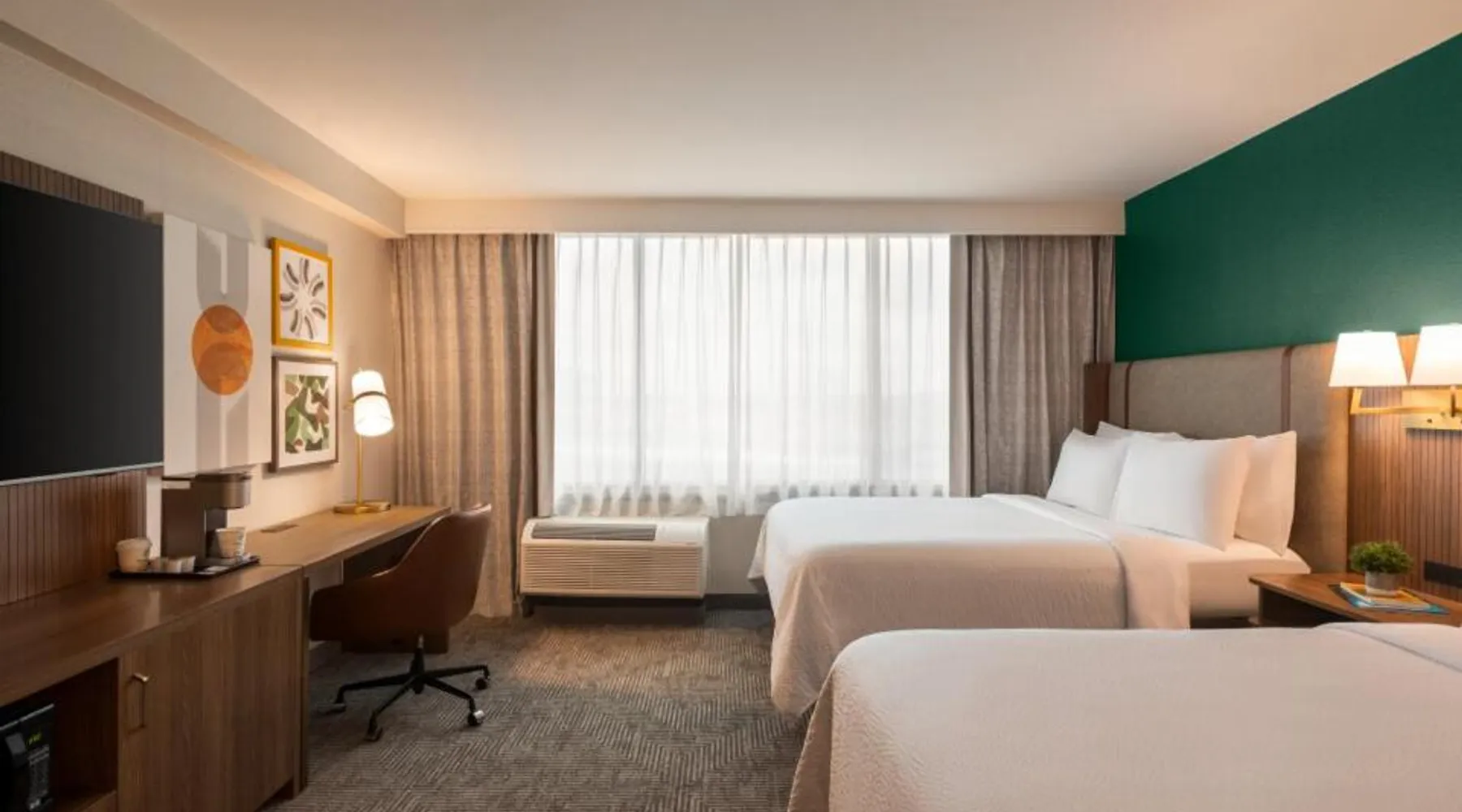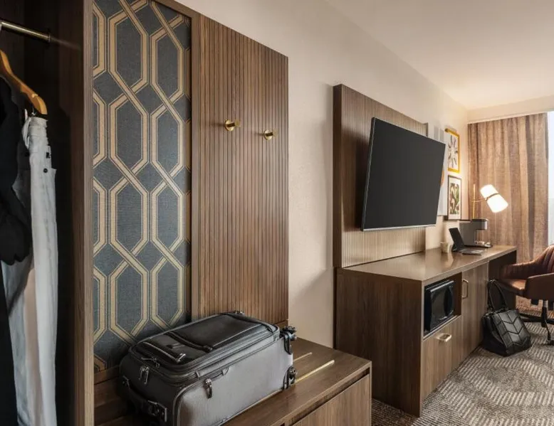 This Nashville hotel is located in Nashville city center and is 1 mi from the Bridgestone Arena sports and concert venue. Features include an indoor salt water pool, free hot buffet-style breakfast for a charge of 12.95, and free WiFi. A flat-screen cable TV, alarm clock, and desk is offered in each room at the Holiday Inn Nashville Downtown - Stadium Extras include an upholstered chair, hairdryer, and ironing facilities. A business center, workout in the fitness center, or pre-schedule a ride on the free hourly transfer service to the Music City Center. Parking is available on-site for free at the Holiday Inn Nashville Downtown - Stadium Hotel. Holiday Inn Nashville Downtown - Stadium is 10 minutes' walk from Nissan Stadium, which is the Tennessee Titan’s football stadium. The hotel is within walking distance to Top Golf. The Grand Ole Opry is 12 mi from the hotel. The spacious double room features a tea and coffee maker, a wardrobe, a safe deposit box and a flat-screen TV with cable channels. The unit has 2 beds.