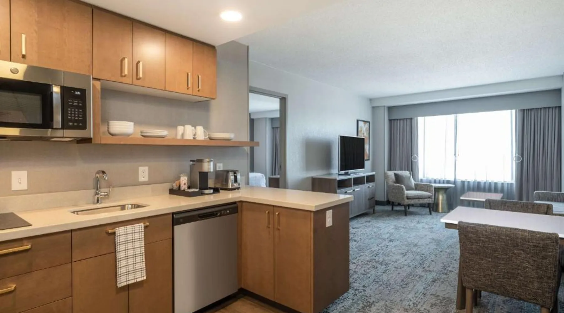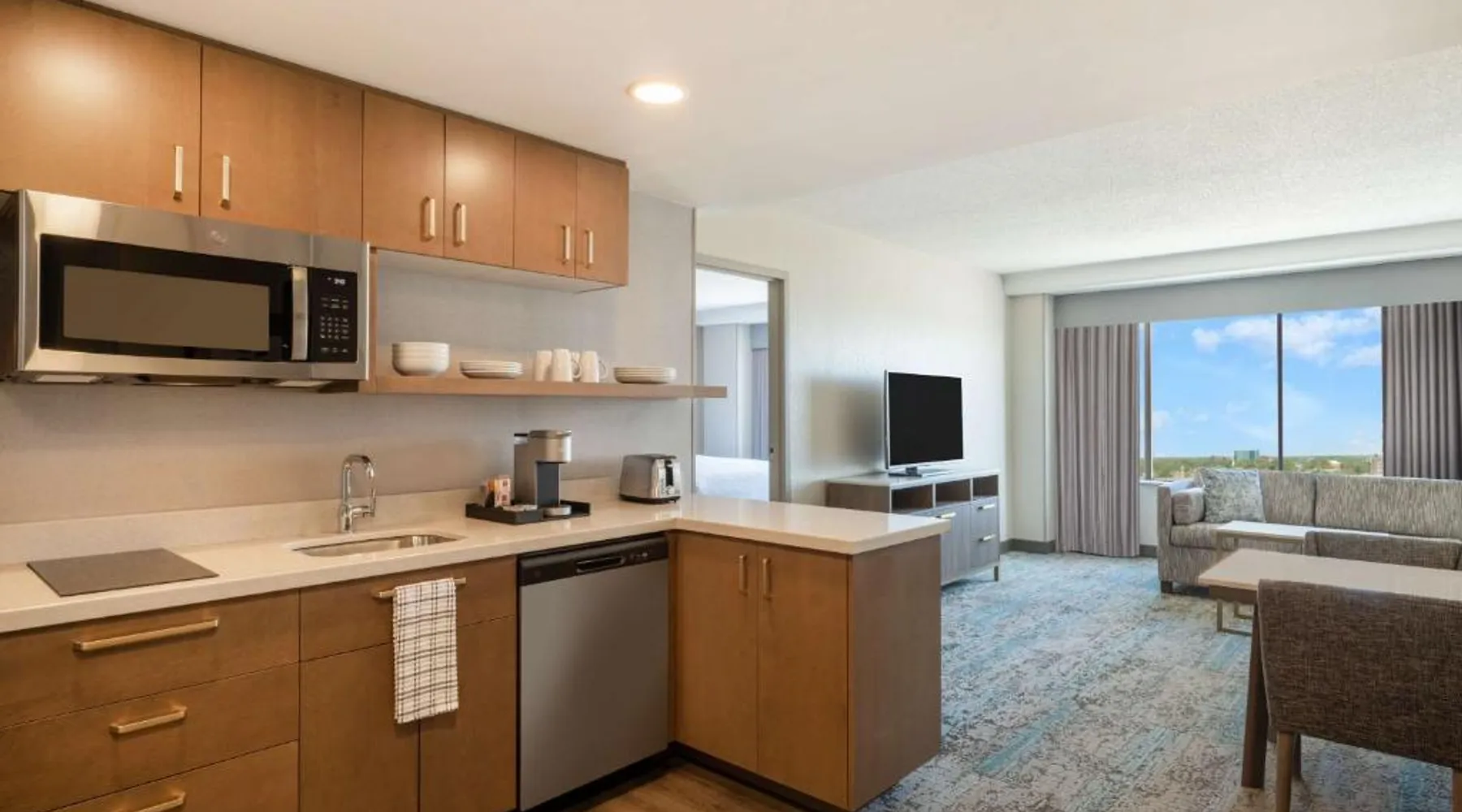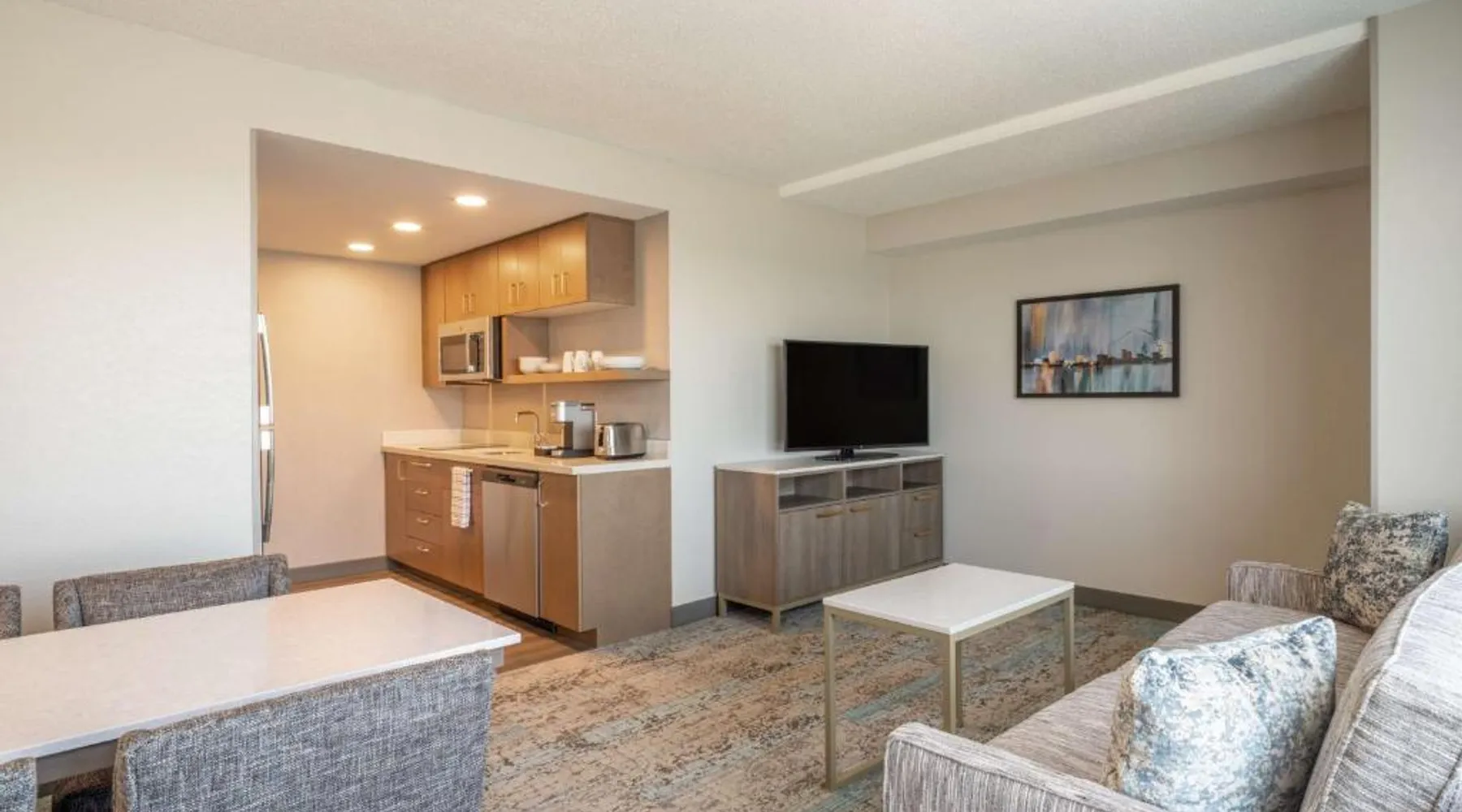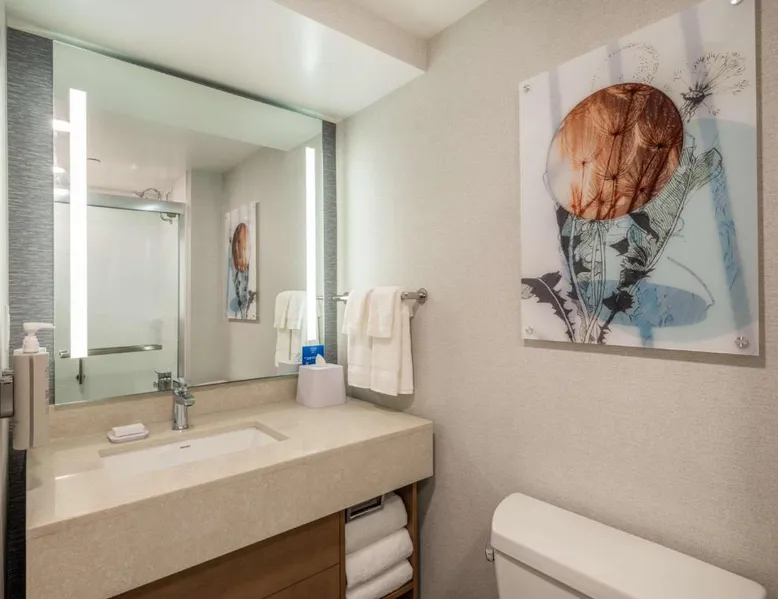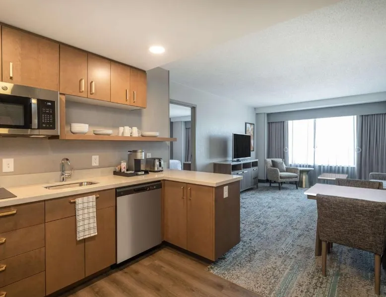 Comfortable Accommodations: Rooms feature air-conditioning, kitchen facilities, and modern amenities. Guests enjoy free toiletries, a work desk, and a seating area. Dining and Leisure: The hotel offers an American restaurant and bar, a fitness center, and a child-friendly buffet. Additional facilities include a minimarket, business area, and bicycle parking. Convenient Location: Located in Toledo, the property is 14 mi from Toledo Express Airport. Nearby attractions include Fifth Third Field (984 feet) and The Valentine Theater (8-minute walk). Guest Satisfaction: Highly rated for room comfort, breakfast provided by the property, and convenient location. Meals can be prepared in the kitchen, which is fitted with a stovetop, a refrigerator, a dishwasher and kitchenware. The spacious suite offers air conditioning, a tea and coffee maker, a seating area, a safe deposit box and a TV with cable channels. The unit offers 2 beds.