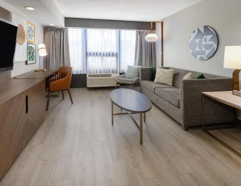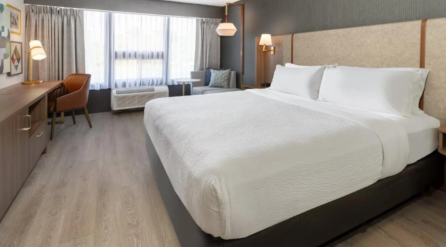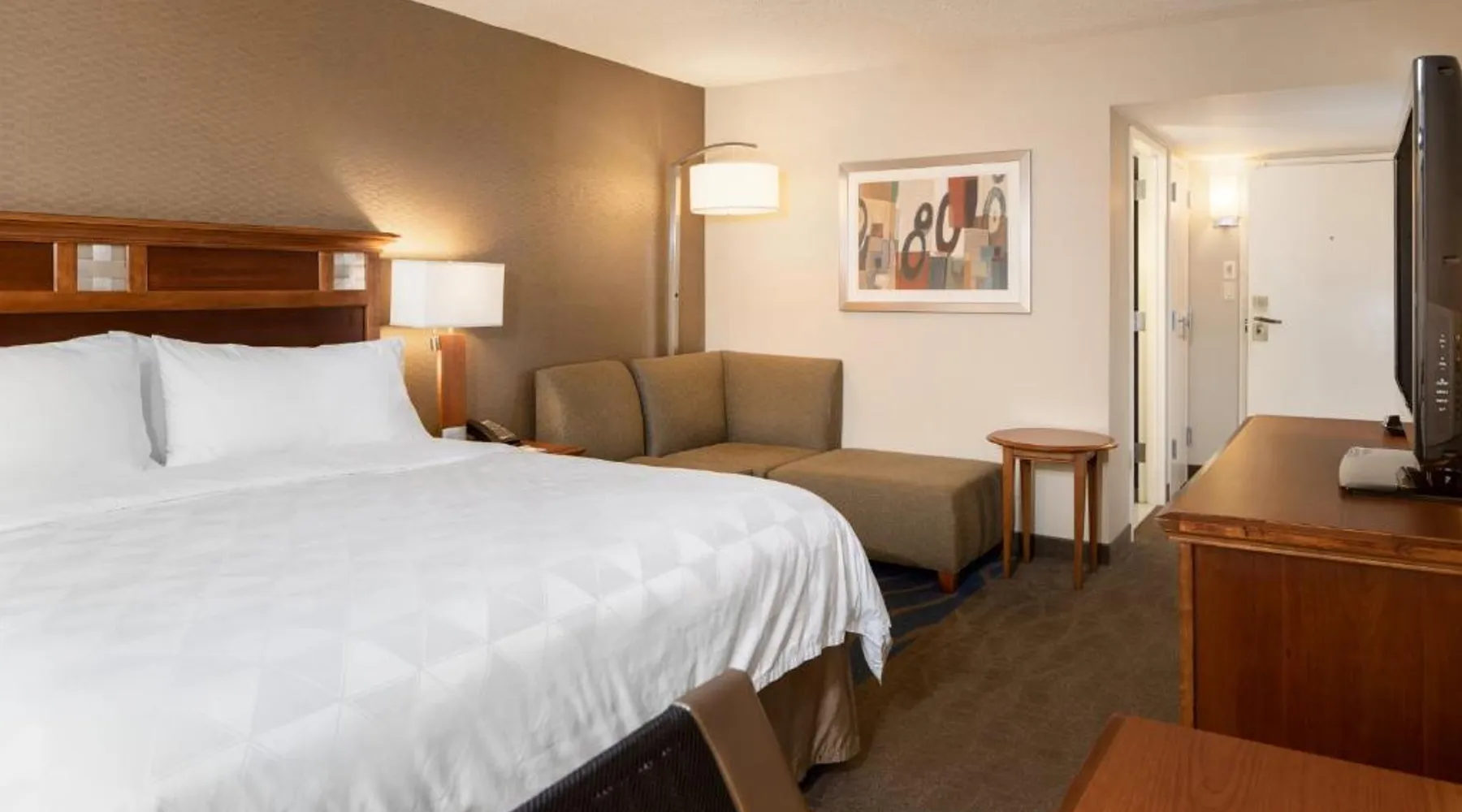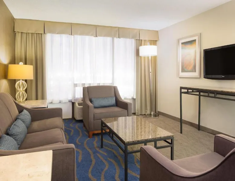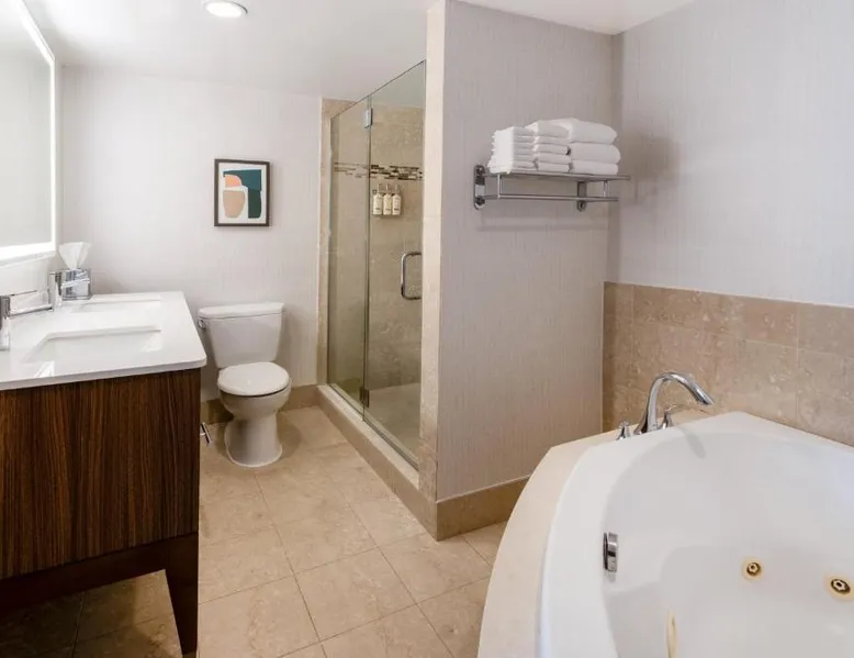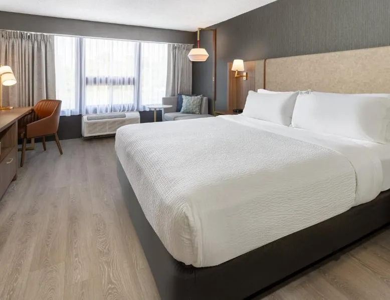 Comfortable Accommodations: Holiday Inn Columbia East-Jessup by IHG in Columbia offers air-conditioned rooms with private bathrooms, tea and coffee makers, and free WiFi. Each room includes a work desk, TV, and wardrobe. Dining and Leisure: Guests can enjoy an American restaurant serving dinner, a bar, and a fitness center. The property features a seasonal outdoor swimming pool, lounge, and outdoor seating area. Convenient Location: Located 7.5 mi from Baltimore-Washington International Airport, the hotel is near attractions such as Carroll Park (12 mi) and Inner Harbor (14 mi). Free on-site parking is available. Guest Satisfaction: Highly rated for its breakfast, value for money, and room cleanliness. Offering free toiletries, this double room includes a private bathroom with a bath or a shower and a hairdryer. The spacious air-conditioned double room offers a flat-screen TV with cable channels, a tea and coffee maker, a seating area and a wardrobe. The unit offers 1 bed.