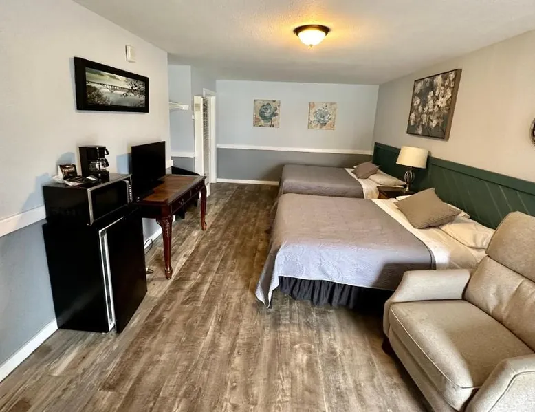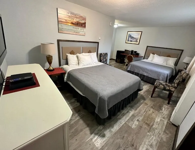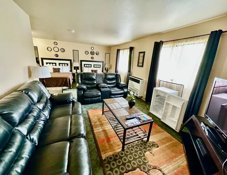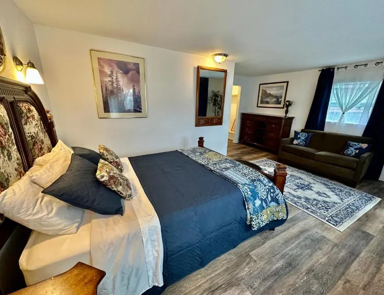 Comfortable Accommodations: Alaska Angler's Inn in Soldotna offers family rooms with private bathrooms, featuring amenities such as a coffee machine, refrigerator, and TV. Each room includes a seating area and free WiFi, ensuring a pleasant stay. Dining and Leisure: The hotel offers a restaurant serving brunch, dinner, and cocktails, alongside a bar. Guests can relax in the lounge or outdoor fireplace, enjoy live music, and utilize the outdoor seating and picnic areas. Convenient Location: Located 11 mi from Kenai Municipal Airport, the hotel is near attractions like skiing, hiking, and cycling. Free on-site private parking and bicycle parking cater to active travelers. Guest Satisfaction: Guests appreciate the convenient location, room cleanliness, and attentive property staff. Additional services include daily housekeeping, express check-in and check-out, and breakfast in the room. Providing free toiletries, this family room includes a private bathroom with a bath, a shower and a hairdryer. This family room features a coffee machine, a seating area, a flat-screen TV with cable channels and a patio. The unit offers 2 beds.