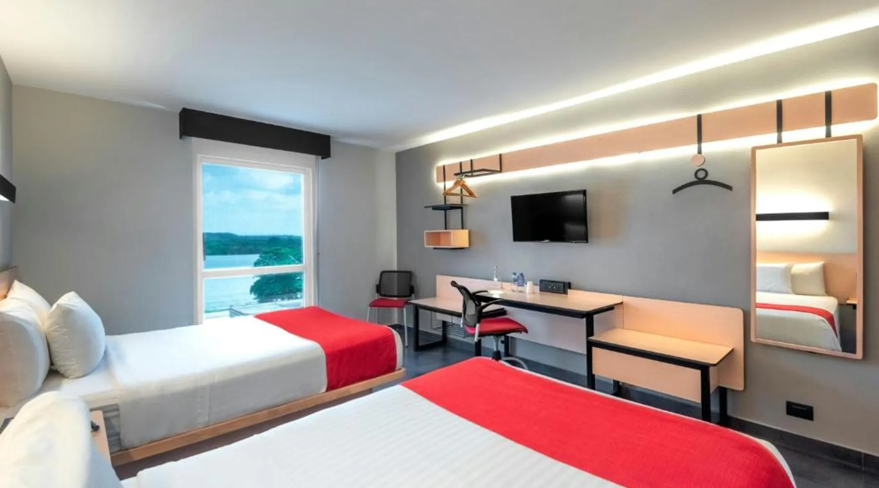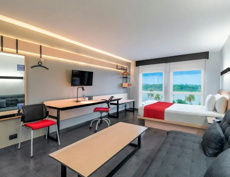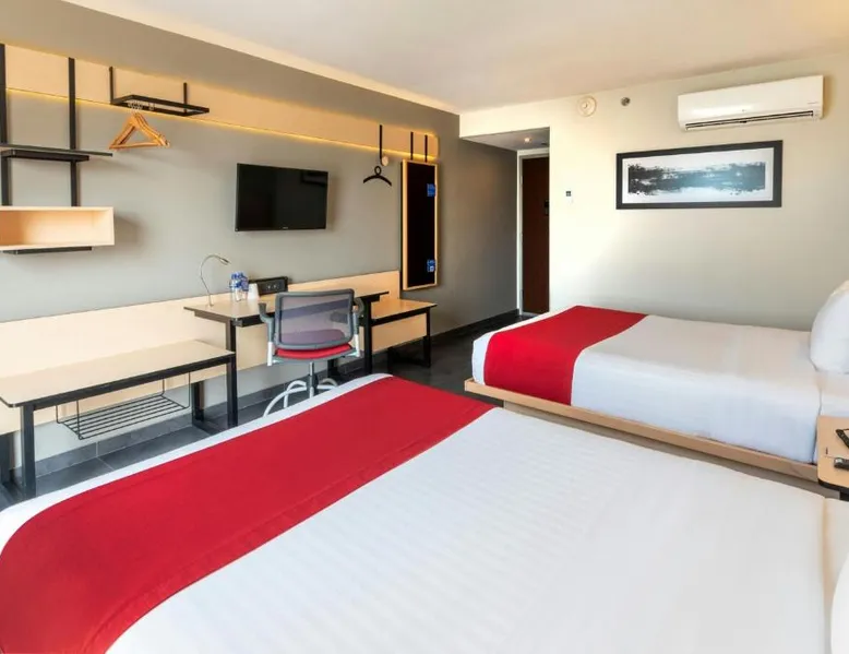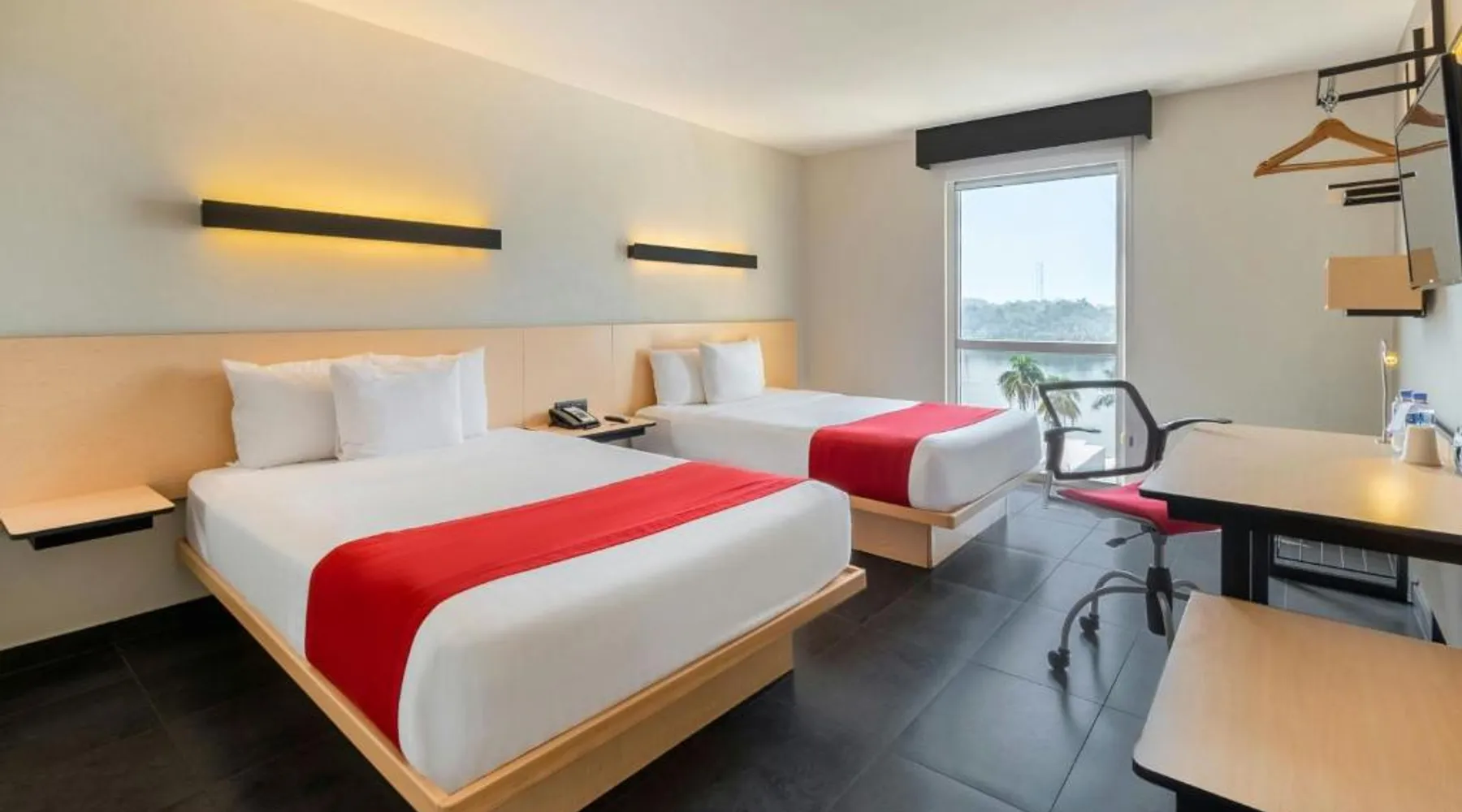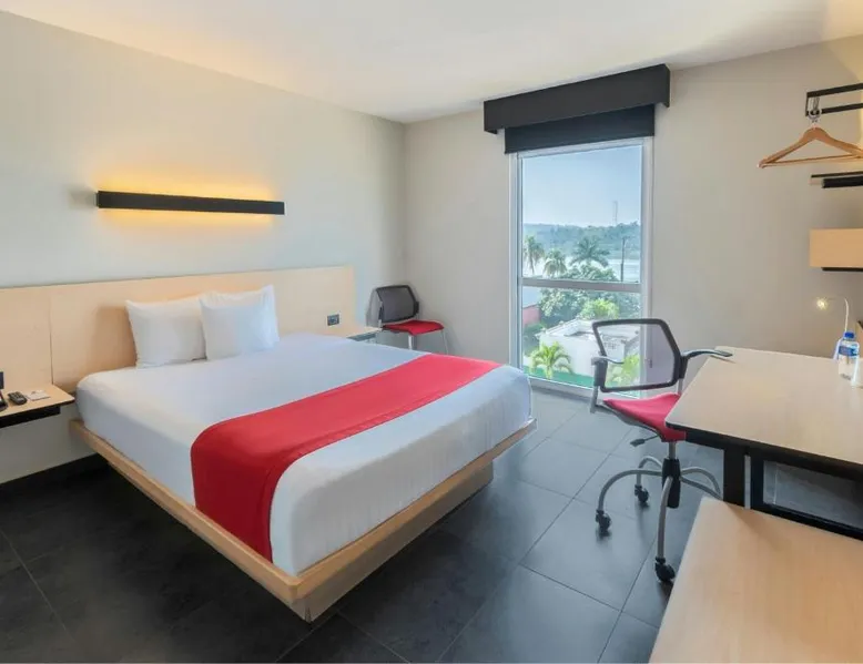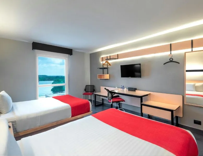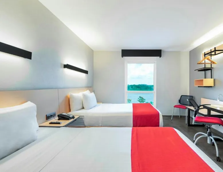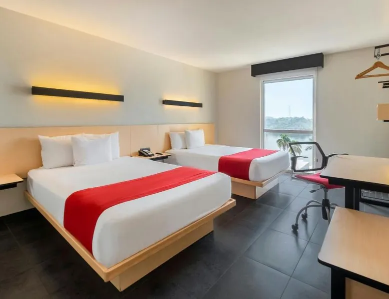 Comfortable Accommodations: City Express by Marriott Tuxpan in Tuxpan de Rodríguez Cano offers air-conditioned rooms with private bathrooms, work desks, and free WiFi. Each room includes a TV, mini-bar, and kitchenette with a tea and coffee maker. Exceptional Facilities: Guests can enjoy a fitness center, year-round outdoor swimming pool, and free on-site private parking. Additional amenities include a business area, shuttle service, and 24-hour front desk. Delightful Dining: An American breakfast is served daily, complemented by a variety of dining options. The hotel provides free WiFi throughout the property, ensuring connectivity for all guests. Guest Satisfaction: Highly rated for its attentive staff, convenient location, and immaculate room cleanliness, City Express by Marriott Tuxpan consistently exceeds guest expectations. The double room features air conditioning and a mini-bar, as well as a private bathroom boasting a hairdryer. The double room's kitchenette, which has an oven and a microwave, is available for cooking and storing food. This double room offers a tea and coffee maker and a TV. The unit has 2 beds.