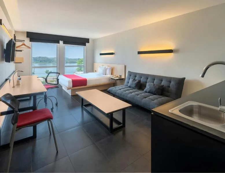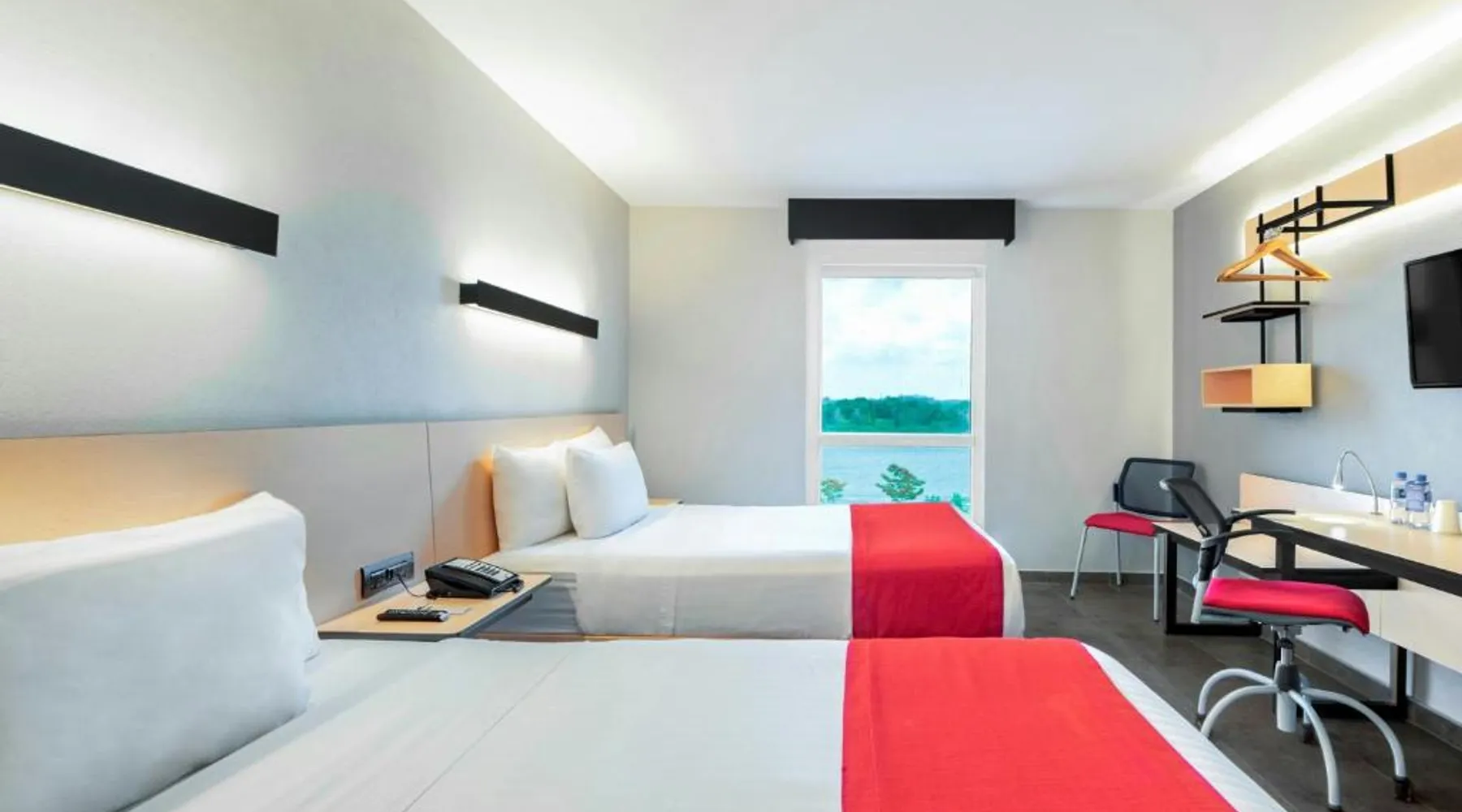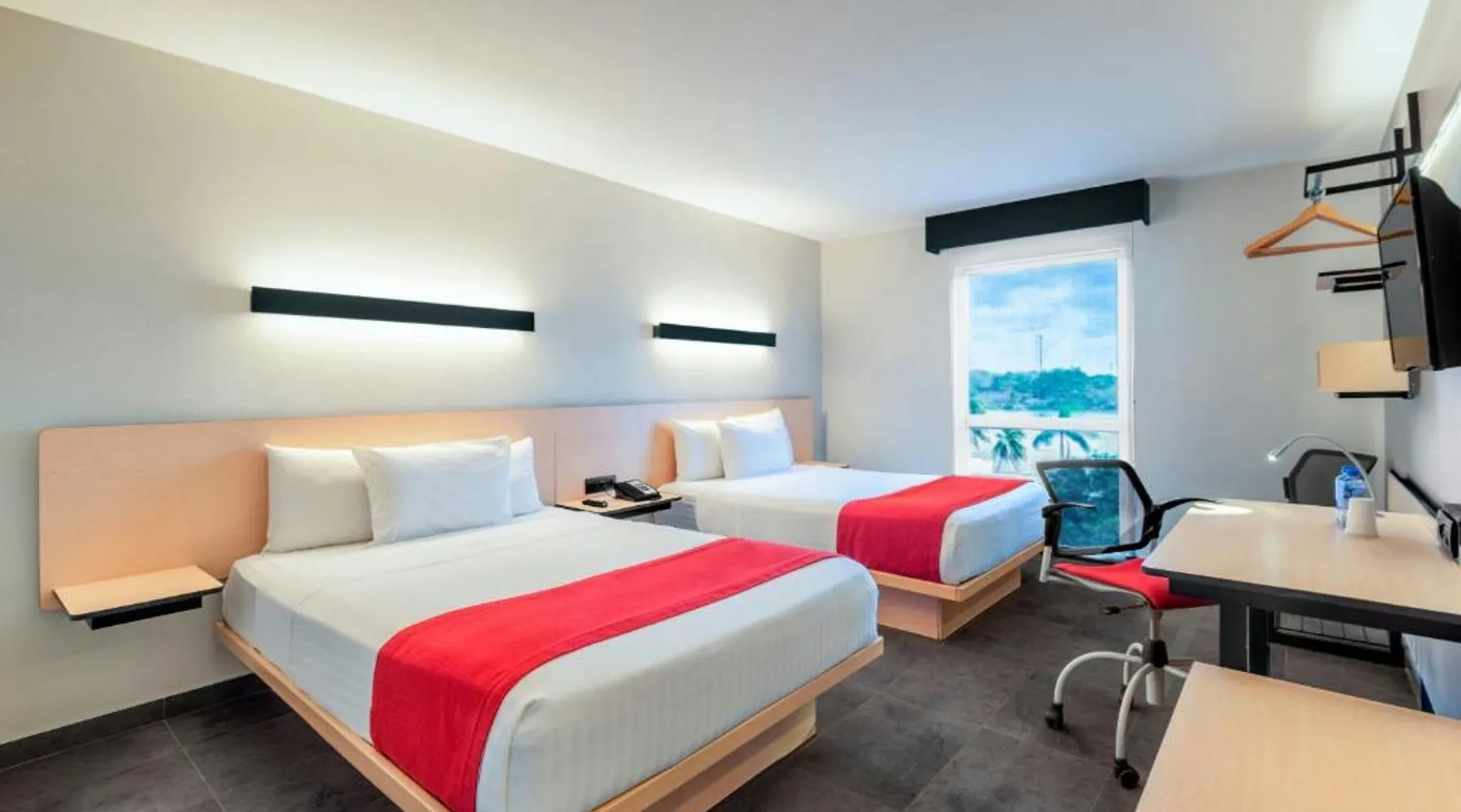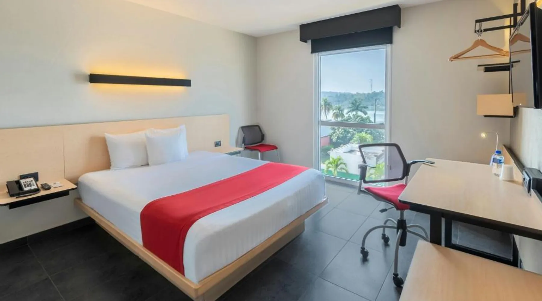 Comfortable Accommodations: City Express by Marriott Tuxpan in Tuxpan de Rodríguez Cano offers air-conditioned rooms with private bathrooms, work desks, and free WiFi. Each room includes a TV, mini-bar, and kitchenette with a tea and coffee maker. Exceptional Facilities: Guests can enjoy a fitness center, year-round outdoor swimming pool, and free on-site private parking. Additional amenities include a business area, shuttle service, and 24-hour front desk. Delightful Dining: An American breakfast is served daily, complemented by a variety of dining options. The hotel provides free WiFi throughout the property, ensuring connectivity for all guests. Guest Satisfaction: Highly rated for its attentive staff, convenient location, and immaculate room cleanliness, City Express by Marriott Tuxpan consistently exceeds guest expectations. The double room features air conditioning and a mini-bar, as well as a private bathroom boasting a hairdryer. The double room's kitchenette, which has an oven and a microwave, is available for cooking and storing food. This double room offers a tea and coffee maker and a TV. The unit has 2 beds.