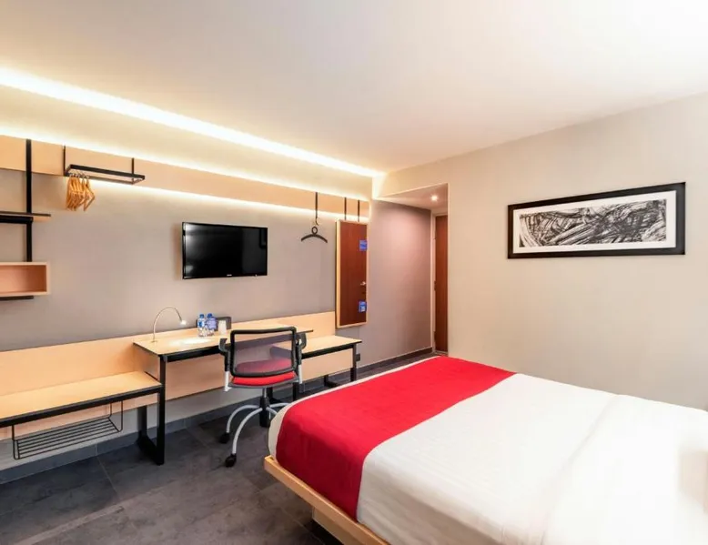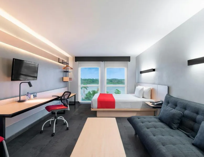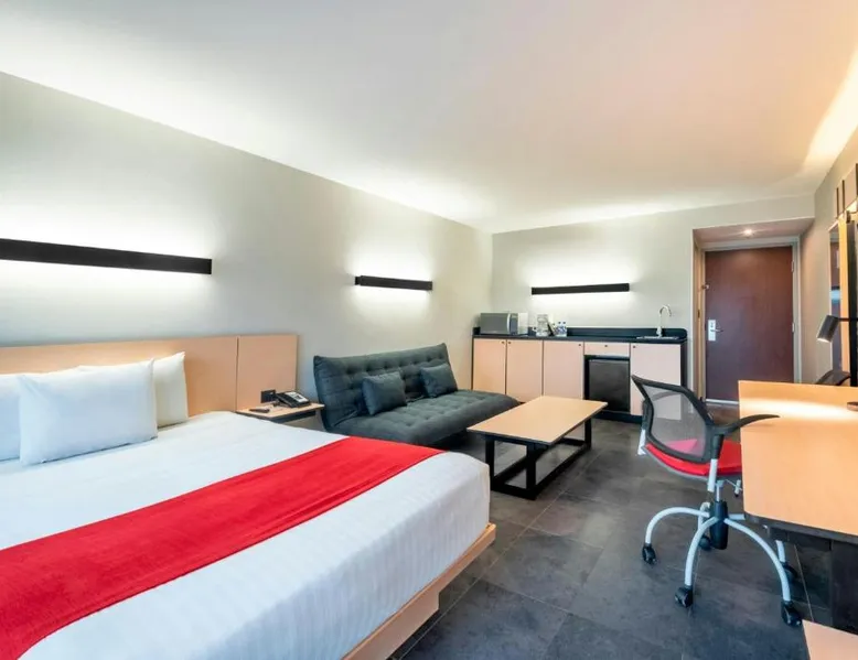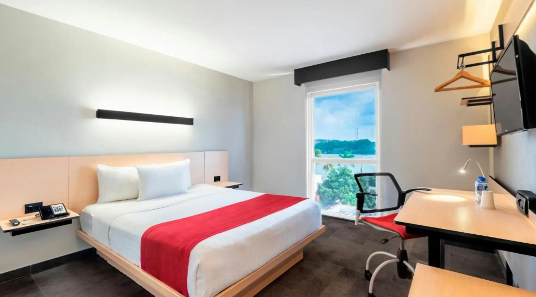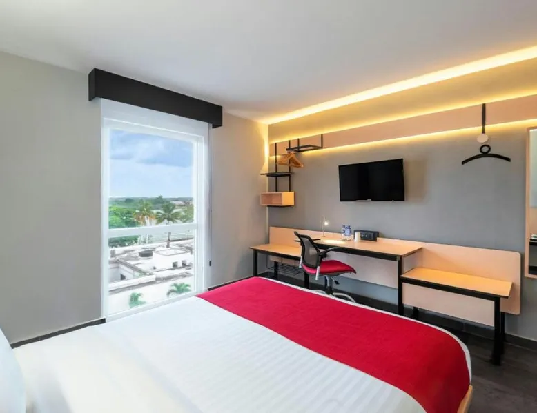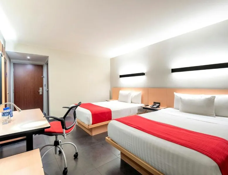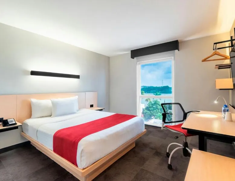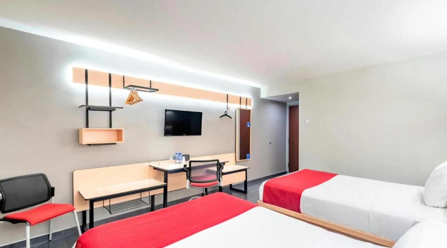 Comfortable Accommodations: City Express by Marriott Tuxpan in Tuxpan de Rodríguez Cano offers air-conditioned rooms with private bathrooms, work desks, and free WiFi. Each room includes a TV, mini-bar, and kitchenette with a tea and coffee maker. Exceptional Facilities: Guests can enjoy a fitness center, year-round outdoor swimming pool, and free on-site private parking. Additional amenities include a business area, shuttle service, and 24-hour front desk. Delightful Dining: An American breakfast is served daily, complemented by a variety of dining options. The hotel provides free WiFi throughout the property, ensuring connectivity for all guests. Guest Satisfaction: Highly rated for its attentive staff, convenient location, and immaculate room cleanliness, City Express by Marriott Tuxpan consistently exceeds guest expectations. The double room features air conditioning and a mini-bar, as well as a private bathroom boasting a hairdryer. The double room's kitchenette, which has an oven and a microwave, is available for cooking and storing food. This double room offers a tea and coffee maker and a TV. The unit has 2 beds.