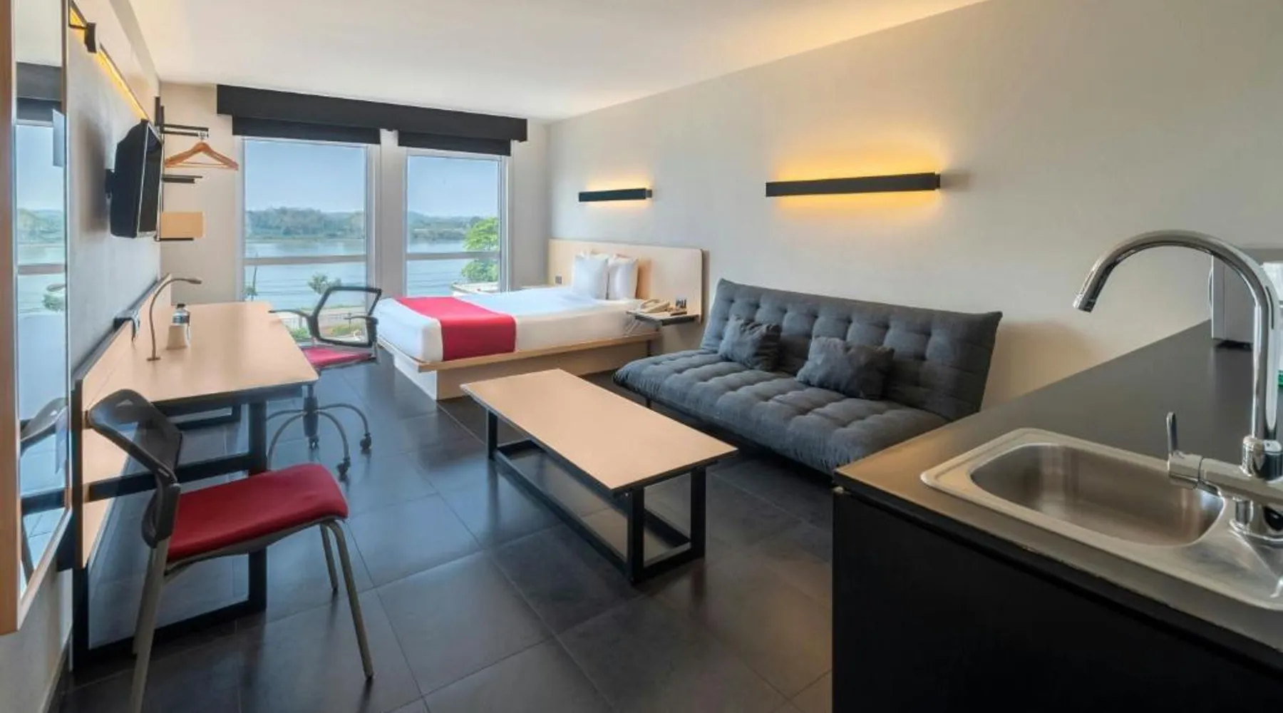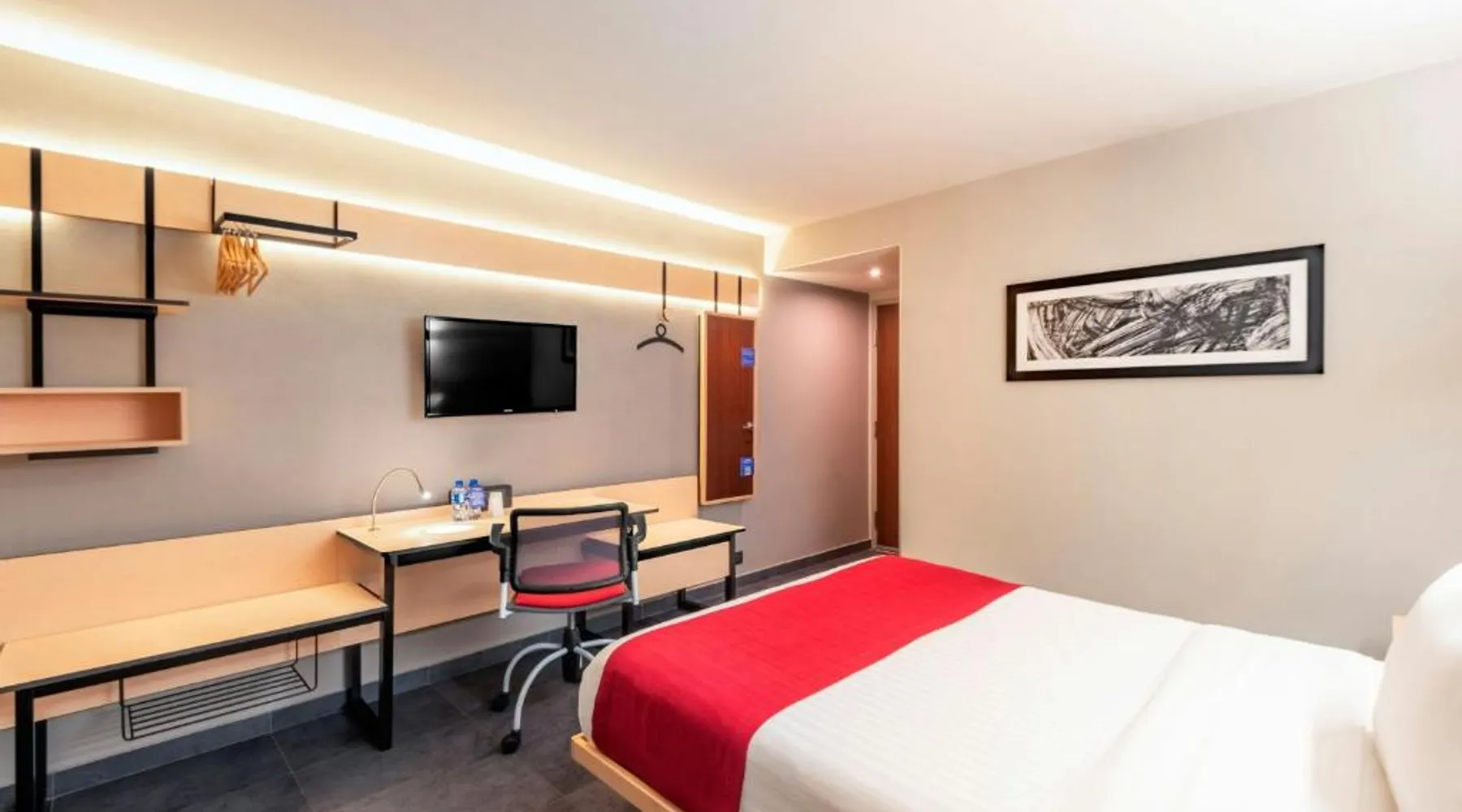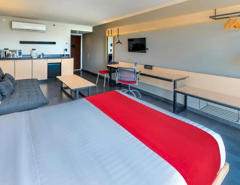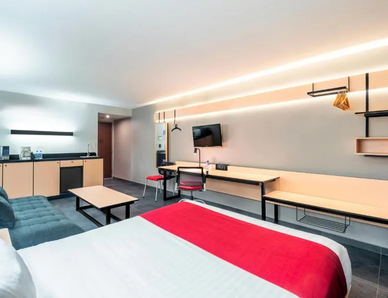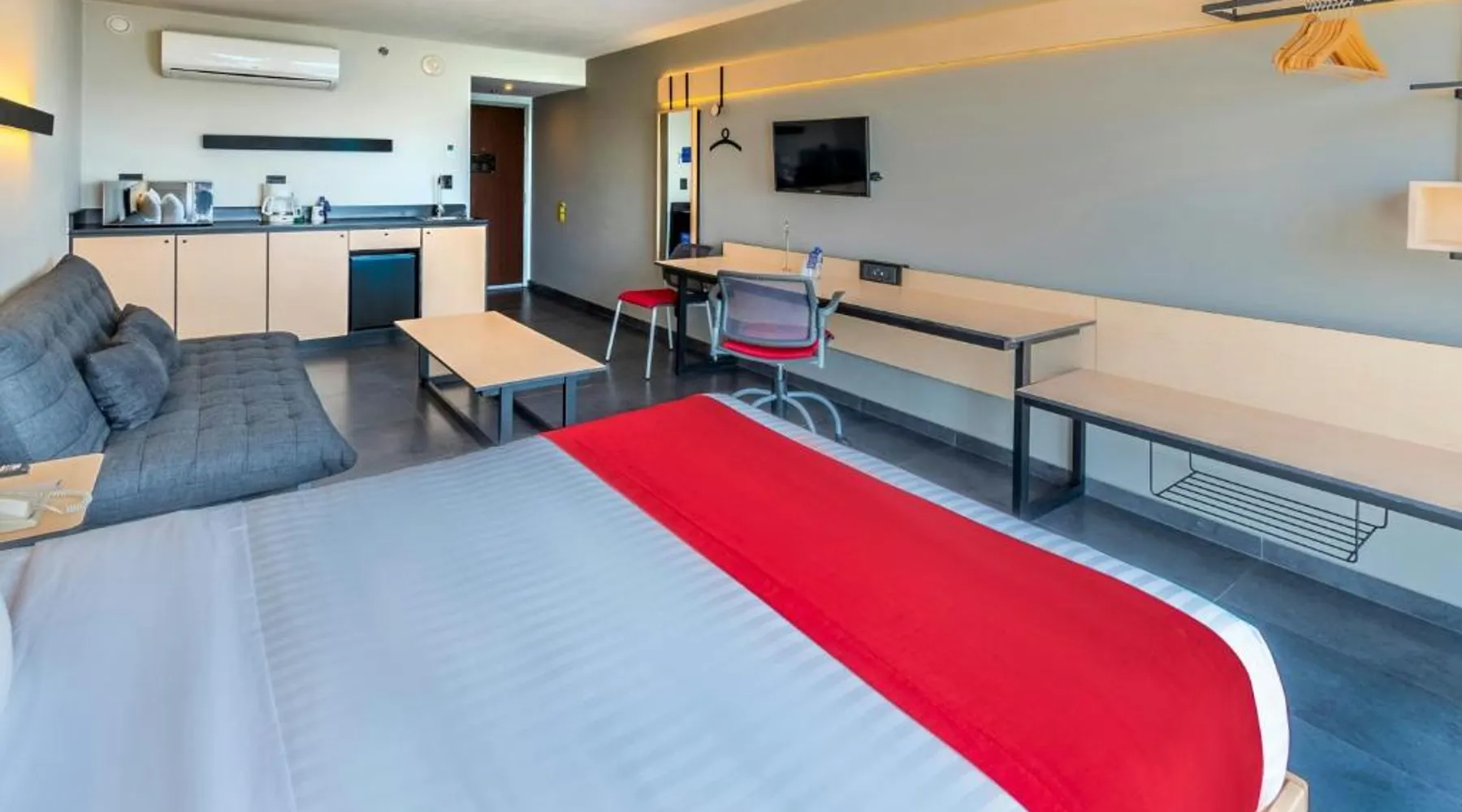 Comfortable Accommodations: City Express by Marriott Tuxpan in Tuxpan de Rodríguez Cano offers air-conditioned rooms with private bathrooms, work desks, and free WiFi. Each room includes a TV, mini-bar, and kitchenette with a tea and coffee maker. Exceptional Facilities: Guests can enjoy a fitness center, year-round outdoor swimming pool, and free on-site private parking. Additional amenities include a business area, shuttle service, and 24-hour front desk. Delightful Dining: An American breakfast is served daily, complemented by a variety of dining options. The hotel provides free WiFi throughout the property, ensuring connectivity for all guests. Guest Satisfaction: Highly rated for its attentive staff, convenient location, and immaculate room cleanliness, City Express by Marriott Tuxpan consistently exceeds guest expectations. The double room features air conditioning and a mini-bar, as well as a private bathroom boasting a hairdryer. The double room's kitchenette, which has an oven and a microwave, is available for cooking and storing food. This double room offers a tea and coffee maker and a TV. The unit has 2 beds.