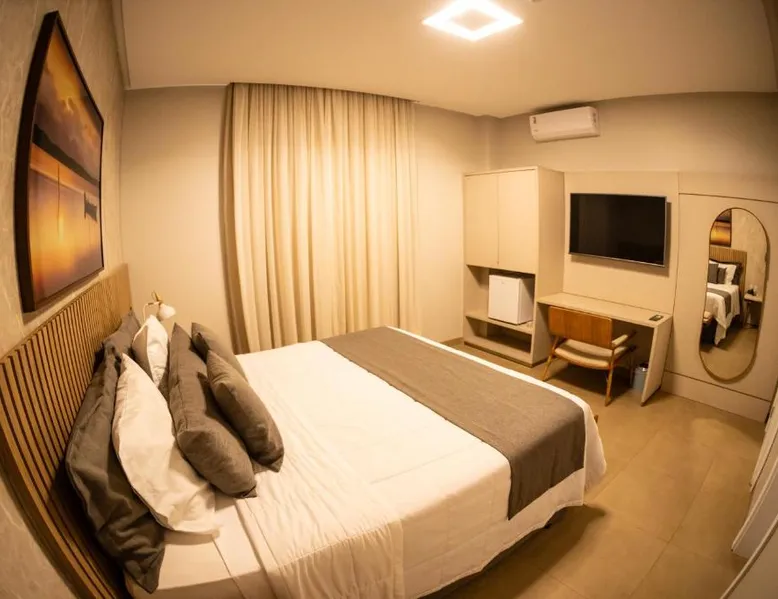 Comfortable Accommodations: Rooms feature air-conditioning, private bathrooms, hypoallergenic bedding, and free WiFi. Each room includes a work desk, mini-bar, and soundproofing for a pleasant stay. Dining Experience: The modern restaurant serves Brazilian cuisine for lunch and dinner. Guests can enjoy a buffet breakfast each morning in a comfortable setting. Facilities and Services: The hotel offers a fitness center, garden, and outdoor seating area. Additional amenities include a lounge, coffee shop, and business area. Free on-site parking is available. Location and Attractions: Located in Araguaína, the hotel is 1.9 mi from the airport and near a car park. Guests appreciate the convenient location and excellent room cleanliness. Providing free toiletries, this triple room includes a private bathroom with a shower and a hairdryer. The triple room provides air conditioning, soundproof walls, a mini-bar, a wardrobe and a flat-screen TV with cable channels. The unit offers 3 beds.