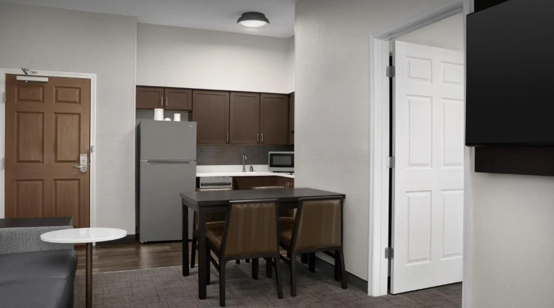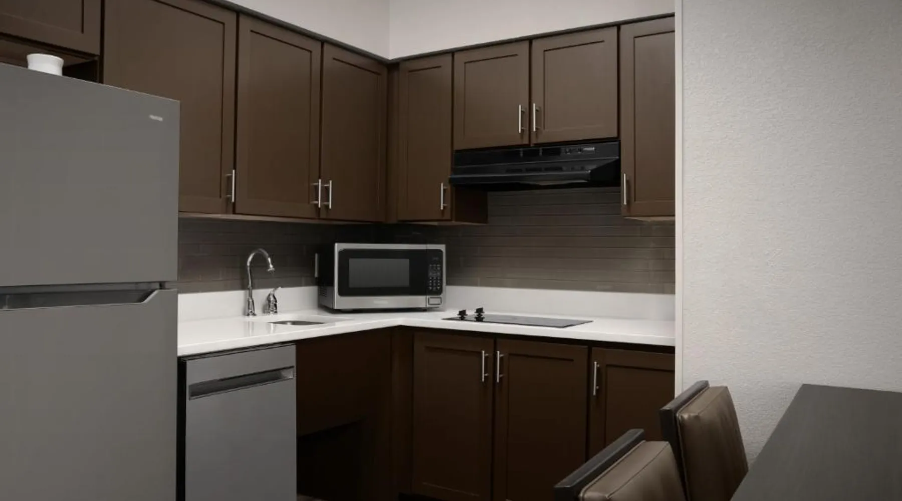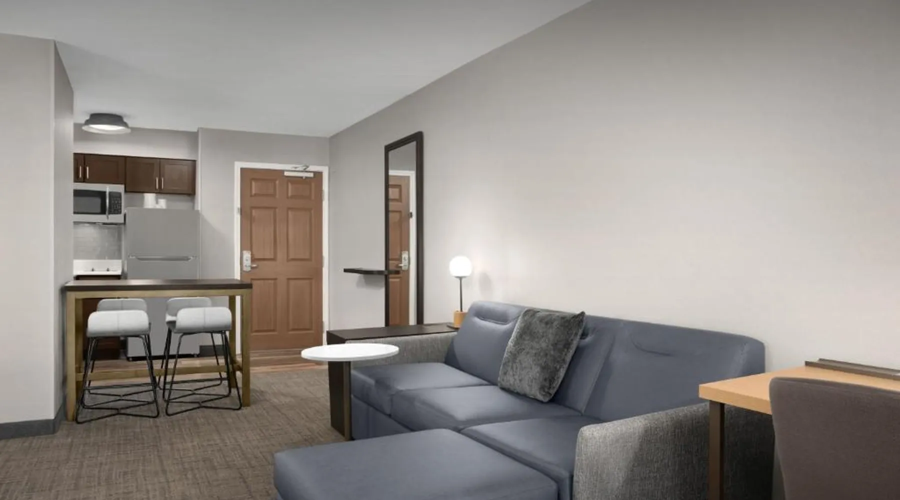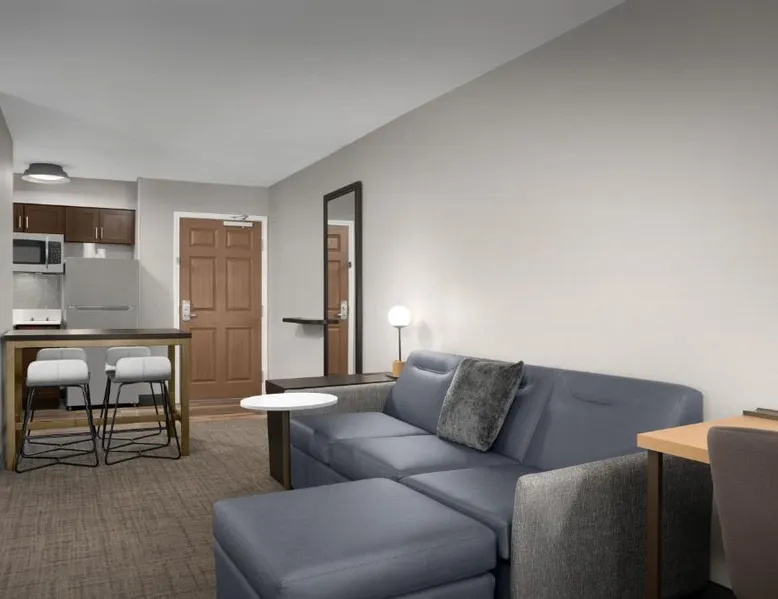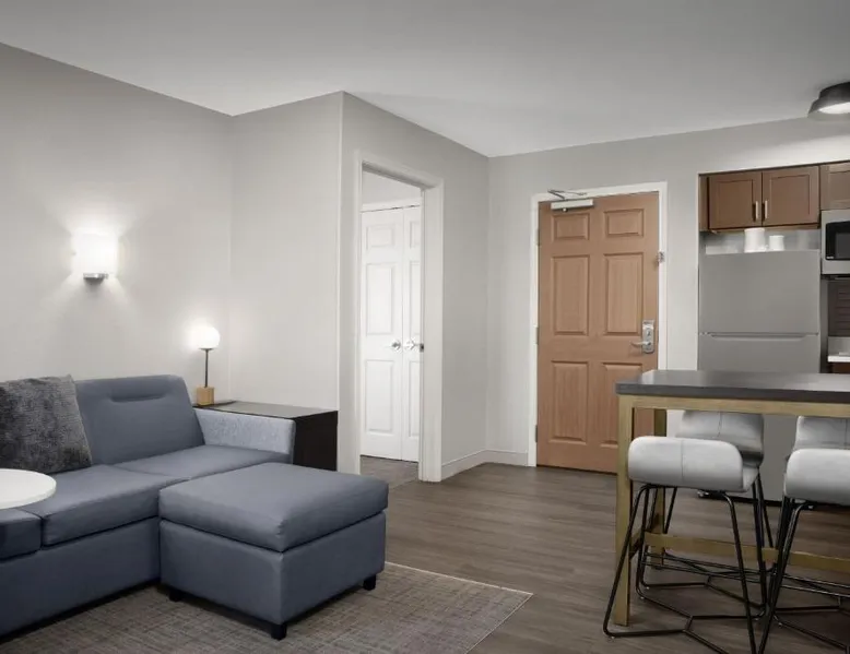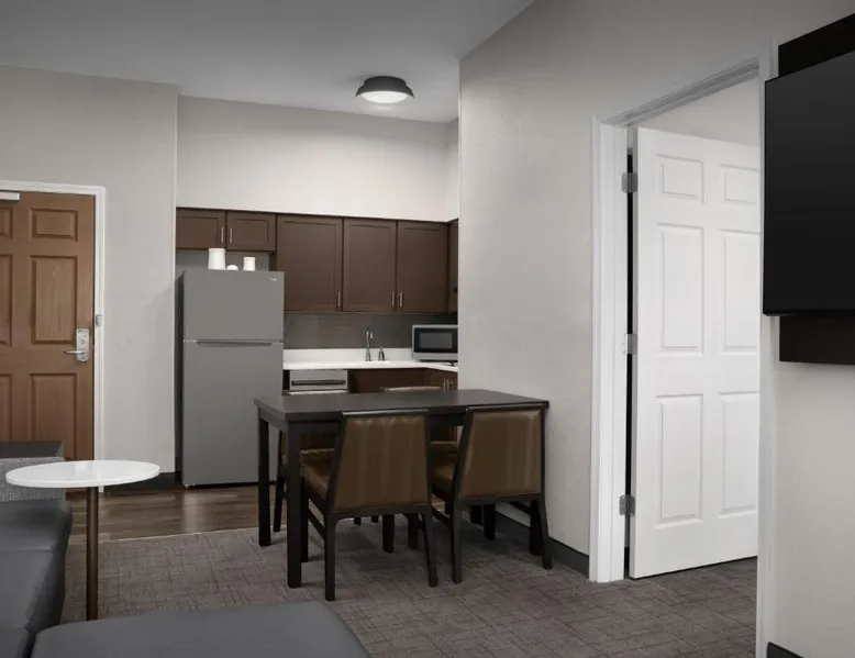 Comfortable Accommodations: Residence Inn by Marriott BWI Airport in Linthicum Heights offers family rooms with private bathrooms, air-conditioning, and free WiFi. Each room includes a kitchen, work desk, and modern amenities. Exceptional Facilities: Guests enjoy a fitness center, outdoor fireplace, and free airport shuttle service. Additional facilities include a lounge, business area, and electric vehicle charging station. Convenient Location: Located 3.7 mi from Baltimore - Washington International Airport, the hotel is near attractions such as Carroll Park (7.5 mi) and Benson-Hammond House (3.1 mi). Guests appreciate the attentive staff and excellent service. The spacious suite has 1 bedroom and 1 bathroom with a bath and free toiletries. Meals can be prepared in the kitchen, which has a stovetop, a refrigerator, a dishwasher and kitchenware. The air-conditioned suite features a TV with streaming services, a tea and coffee maker, a seating area and a dining area. The unit has 3 beds.