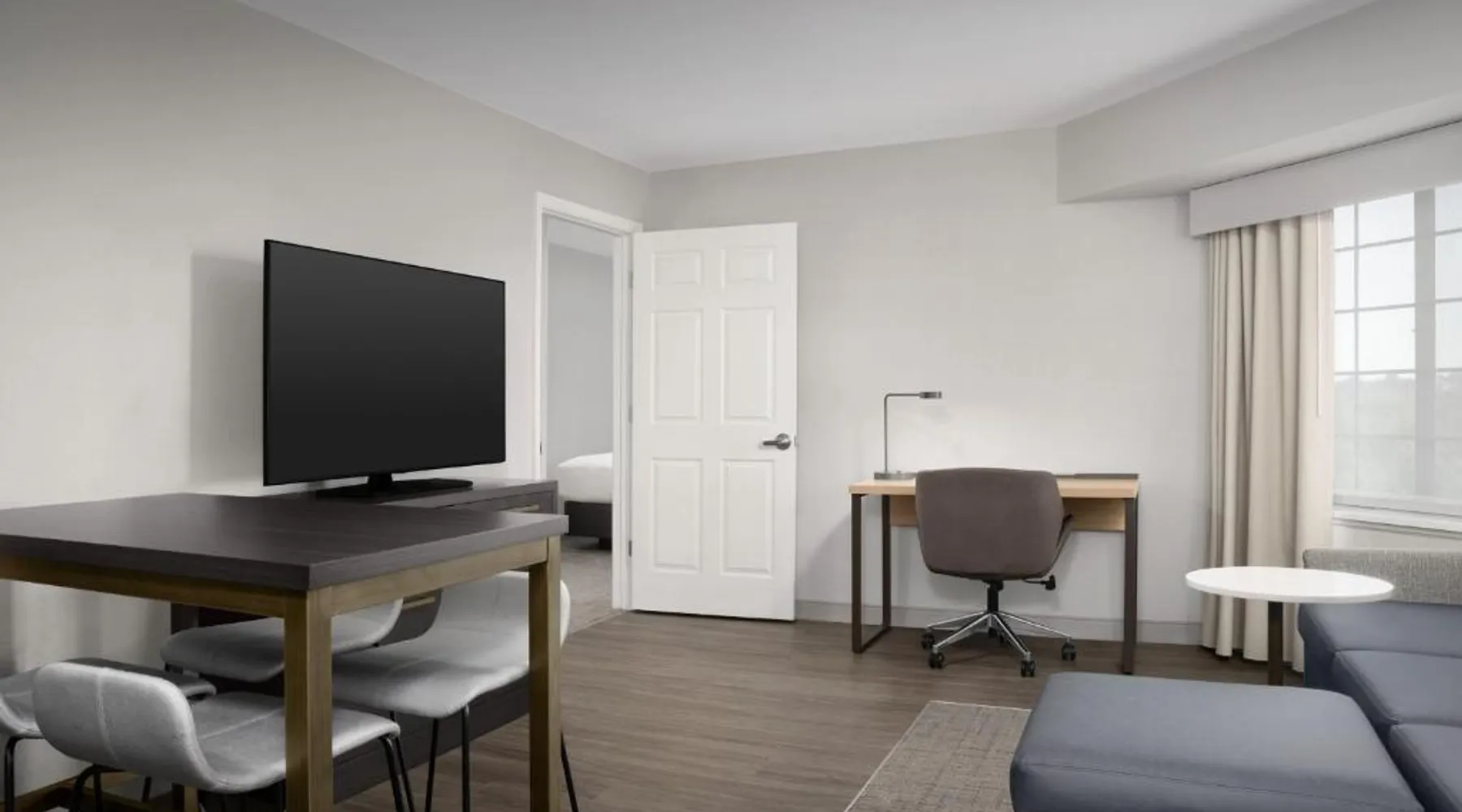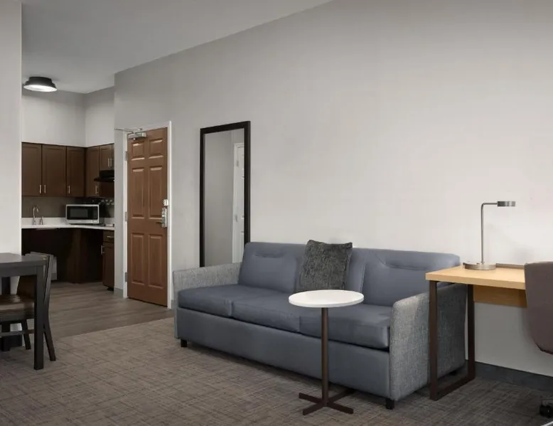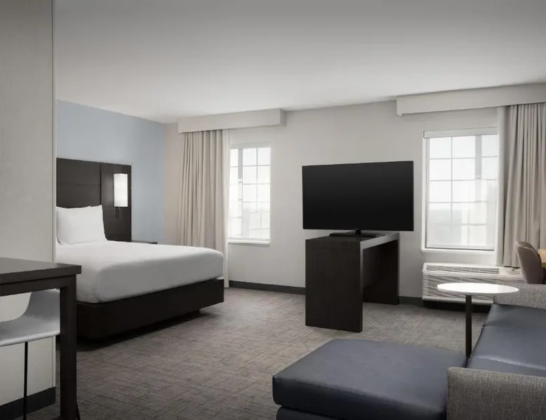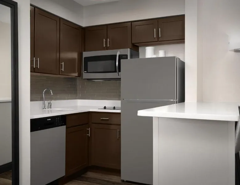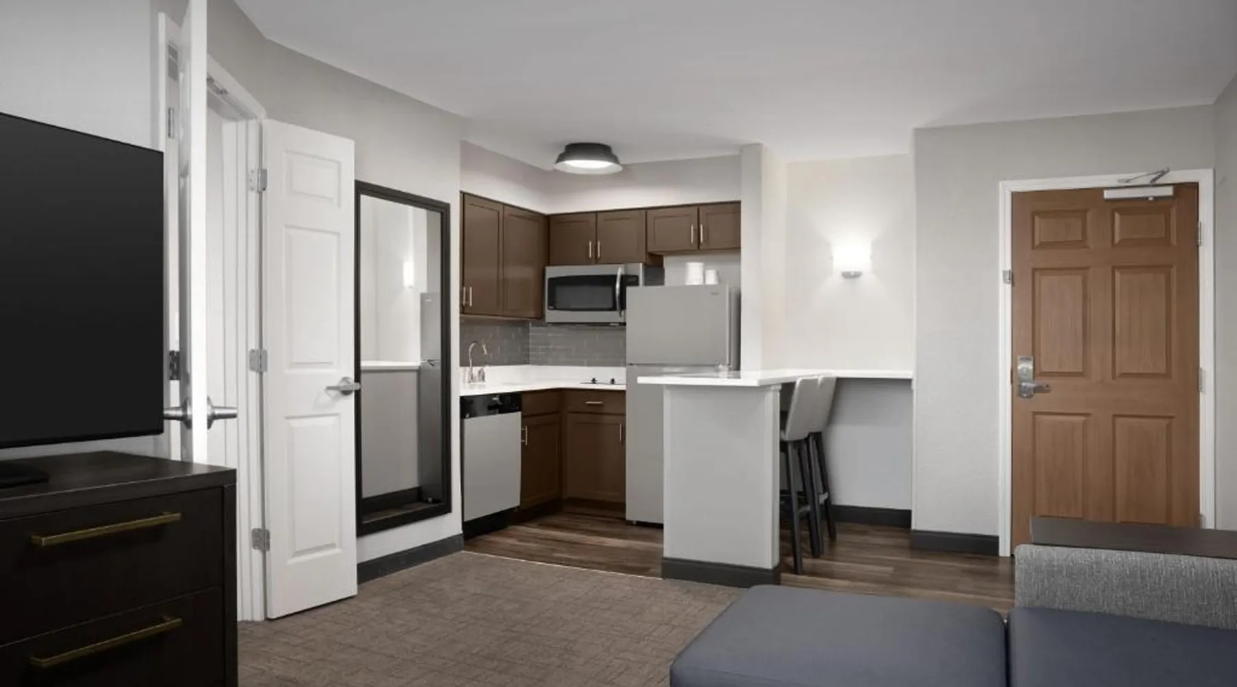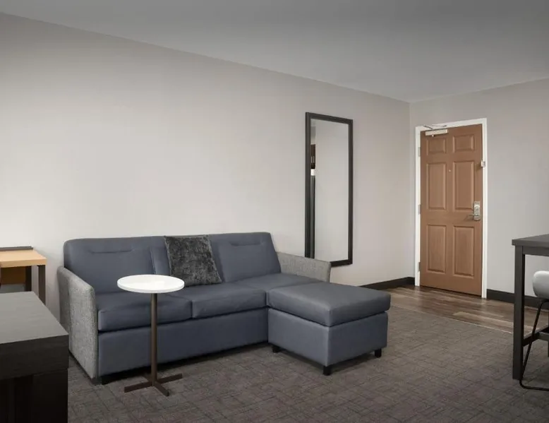 Comfortable Accommodations: Residence Inn by Marriott BWI Airport in Linthicum Heights offers family rooms with private bathrooms, air-conditioning, and free WiFi. Each room includes a kitchen, work desk, and modern amenities. Exceptional Facilities: Guests enjoy a fitness center, outdoor fireplace, and free airport shuttle service. Additional facilities include a lounge, business area, and electric vehicle charging station. Convenient Location: Located 3.7 mi from Baltimore - Washington International Airport, the hotel is near attractions such as Carroll Park (7.5 mi) and Benson-Hammond House (3.1 mi). Guests appreciate the attentive staff and excellent service. The spacious suite has 1 bedroom and 1 bathroom with a bath and free toiletries. Meals can be prepared in the kitchen, which has a stovetop, a refrigerator, a dishwasher and kitchenware. The air-conditioned suite features a TV with streaming services, a tea and coffee maker, a seating area and a dining area. The unit has 3 beds.