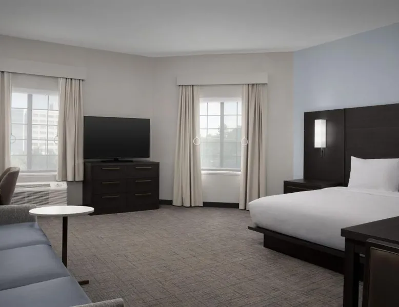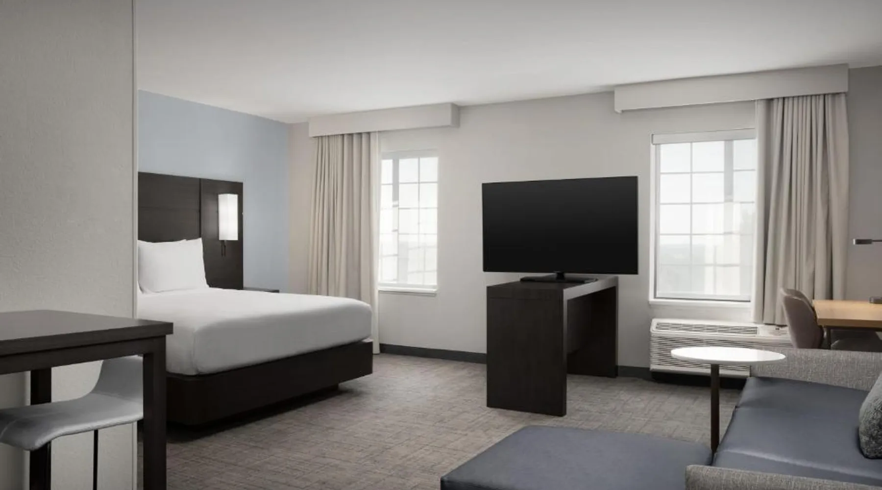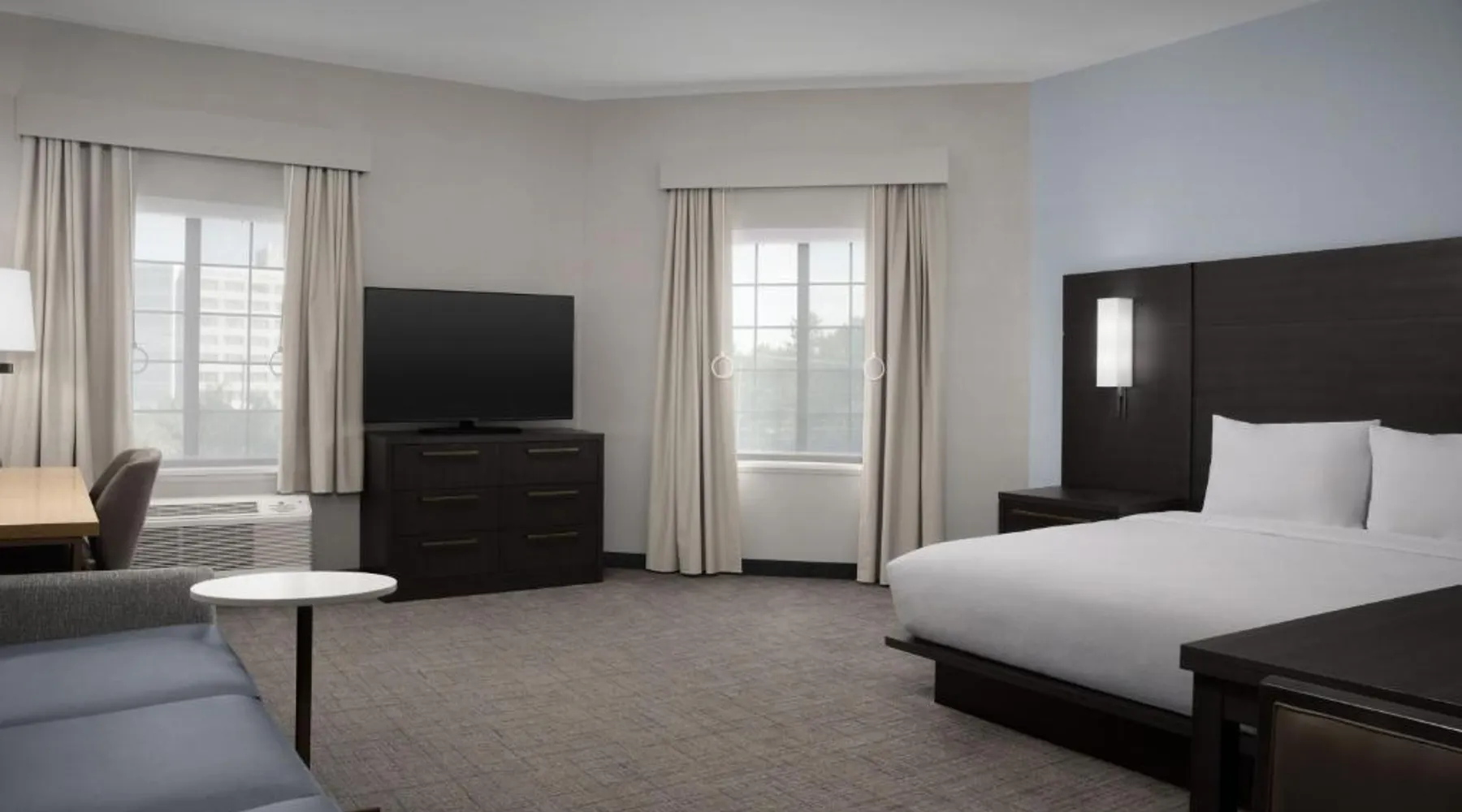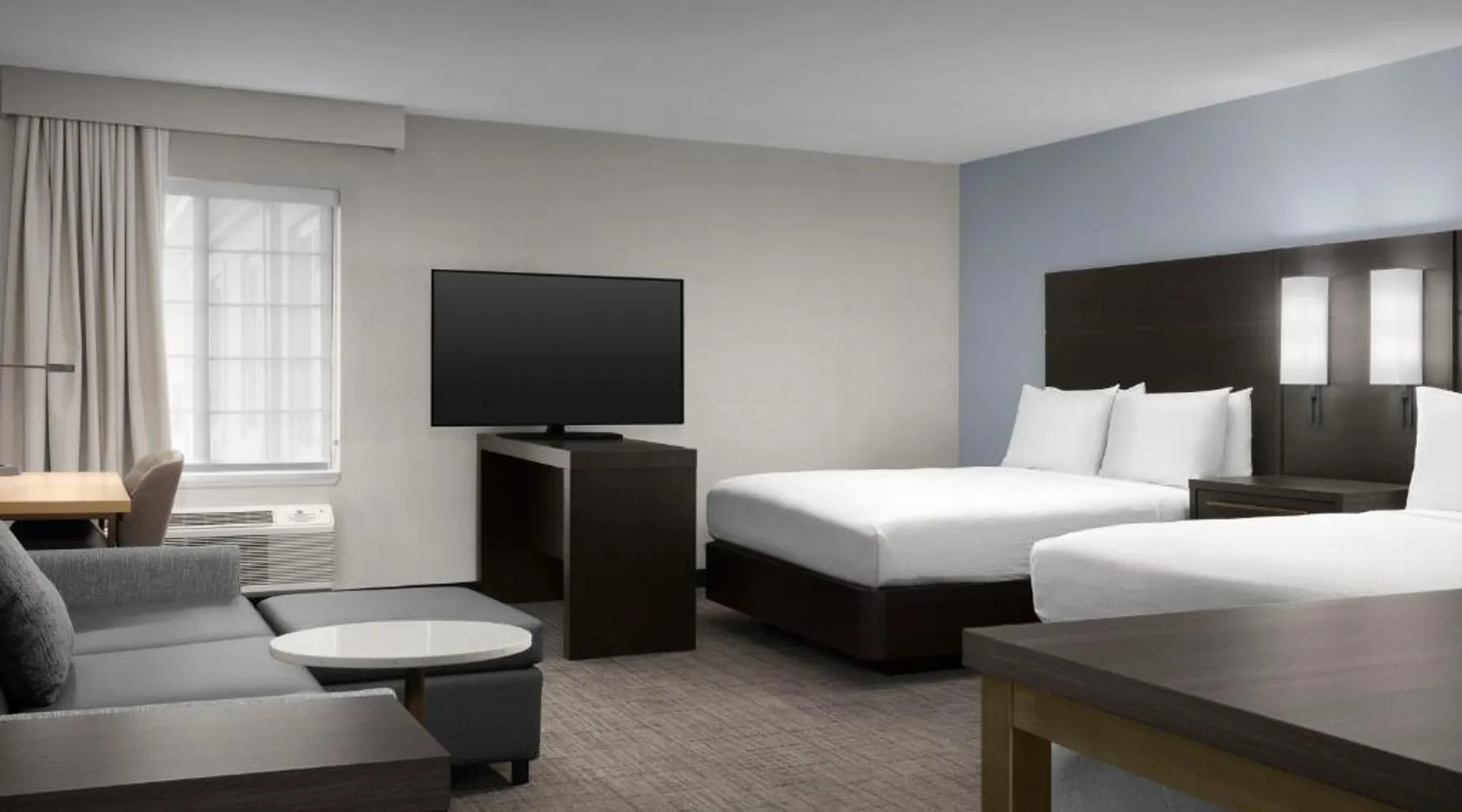 Comfortable Accommodations: Residence Inn by Marriott BWI Airport in Linthicum Heights offers family rooms with private bathrooms, air-conditioning, and free WiFi. Each room includes a kitchen, work desk, and modern amenities. Exceptional Facilities: Guests enjoy a fitness center, outdoor fireplace, and free airport shuttle service. Additional facilities include a lounge, business area, and electric vehicle charging station. Convenient Location: Located 3.7 mi from Baltimore - Washington International Airport, the hotel is near attractions such as Carroll Park (7.5 mi) and Benson-Hammond House (3.1 mi). Guests appreciate the attentive staff and excellent service. The spacious suite has 1 bedroom and 1 bathroom with a bath and free toiletries. Meals can be prepared in the kitchen, which has a stovetop, a refrigerator, a dishwasher and kitchenware. The air-conditioned suite features a TV with streaming services, a tea and coffee maker, a seating area and a dining area. The unit has 3 beds.