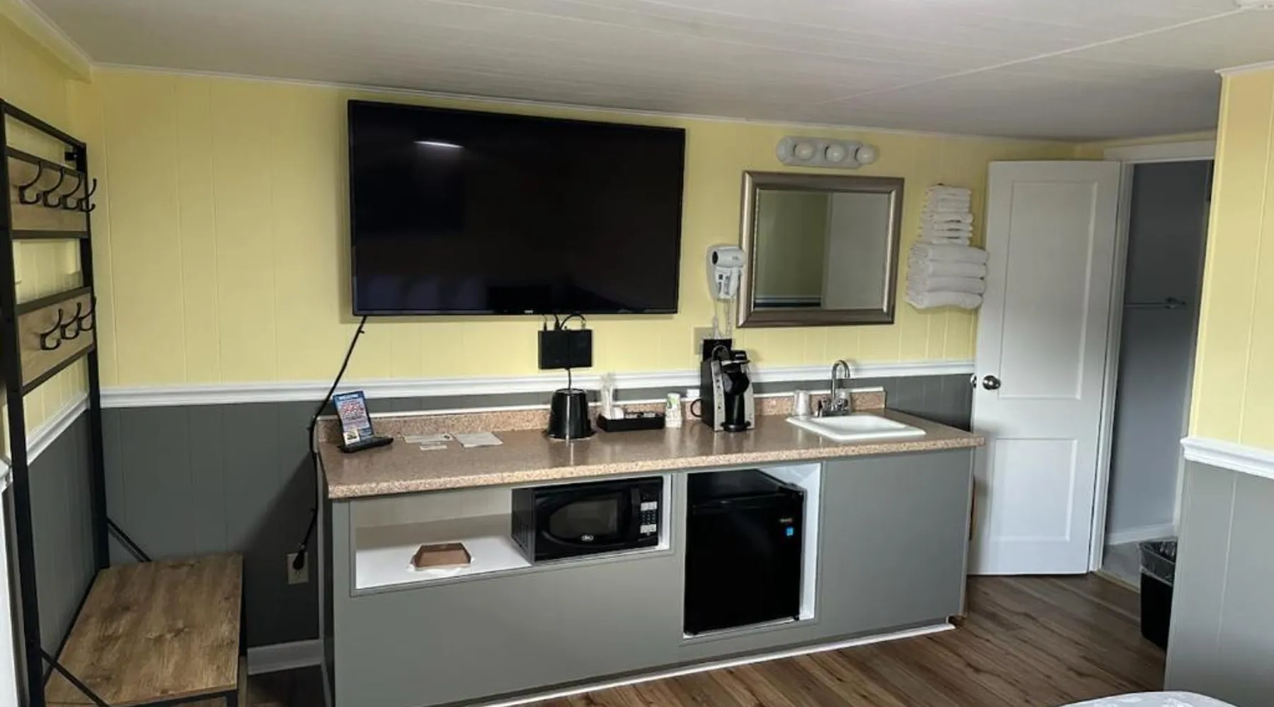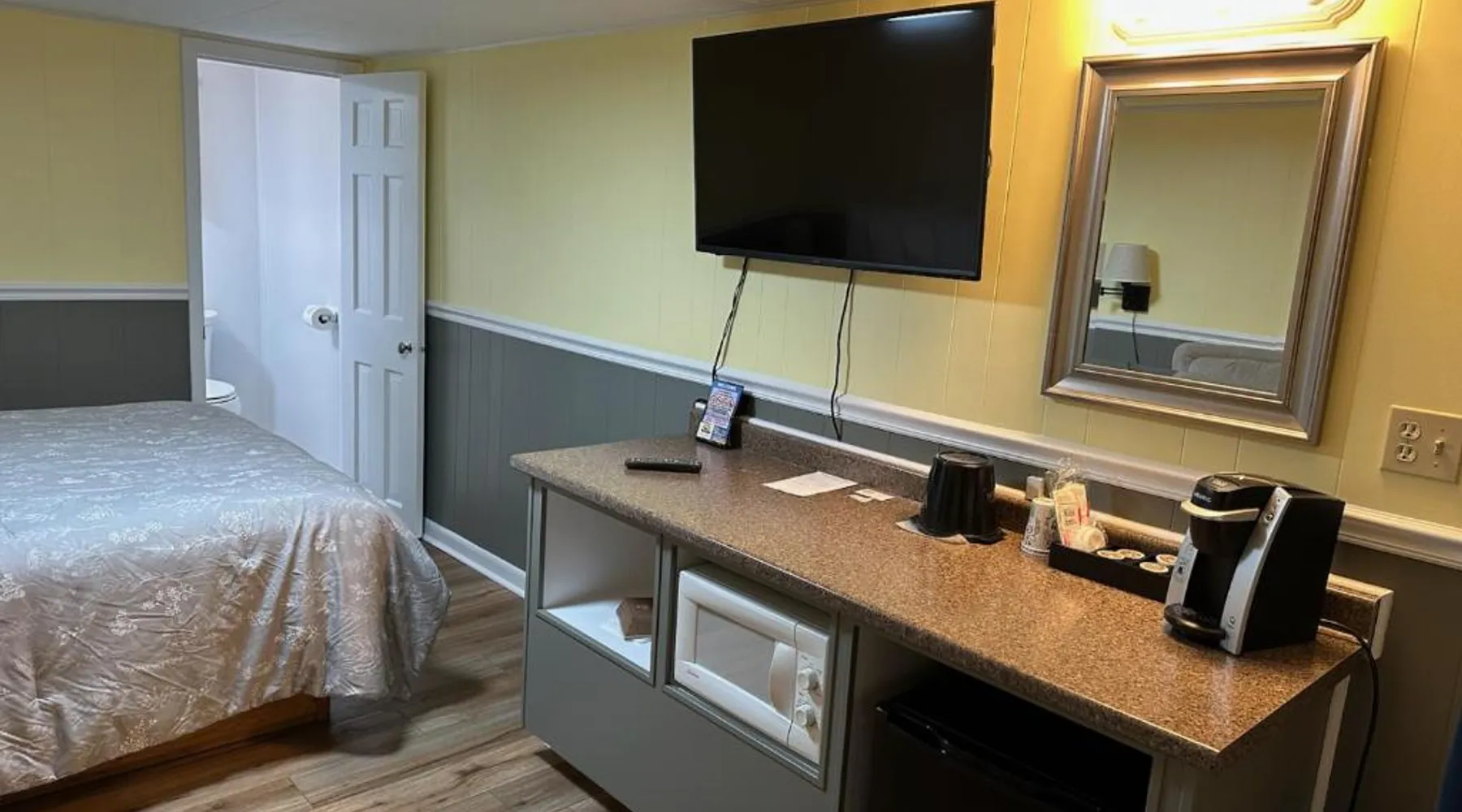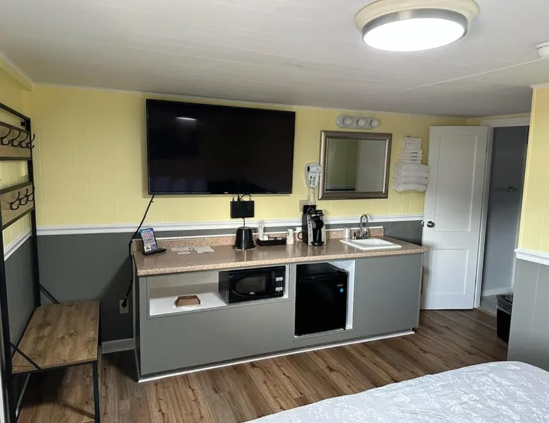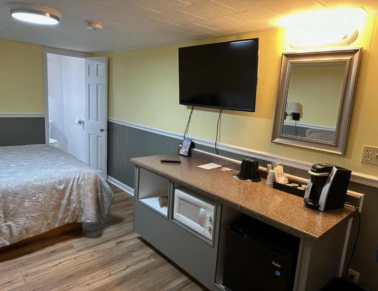 Comfortable Accommodations: Sunset Motel at Armand's Gardens in Saint Ignace offers four-star comfort with air-conditioning, private bathrooms, and free WiFi. Each room includes a coffee machine, refrigerator, and TV. Dining and Leisure: Guests can enjoy meals at the on-site restaurant serving lunch and dinner. The bar provides a relaxing atmosphere for unwinding. An outdoor seating area and picnic area enhance the dining experience. Convenient Services: The motel offers a shuttle service, housekeeping, and free on-site private parking. Additional amenities include a hairdryer, free toiletries, and outdoor furniture. Local Attractions: Located 4.3 mi from Mackinac Bridge and 22 mi from Pellston Regional Airport, the property is highly rated for its beautiful garden, room cleanliness, and attentive staff. This air-conditioned double room is consisted of of a flat-screen TV with cable channels, a private bathroom as well as outdoor furniture. The unit has 1 bed.