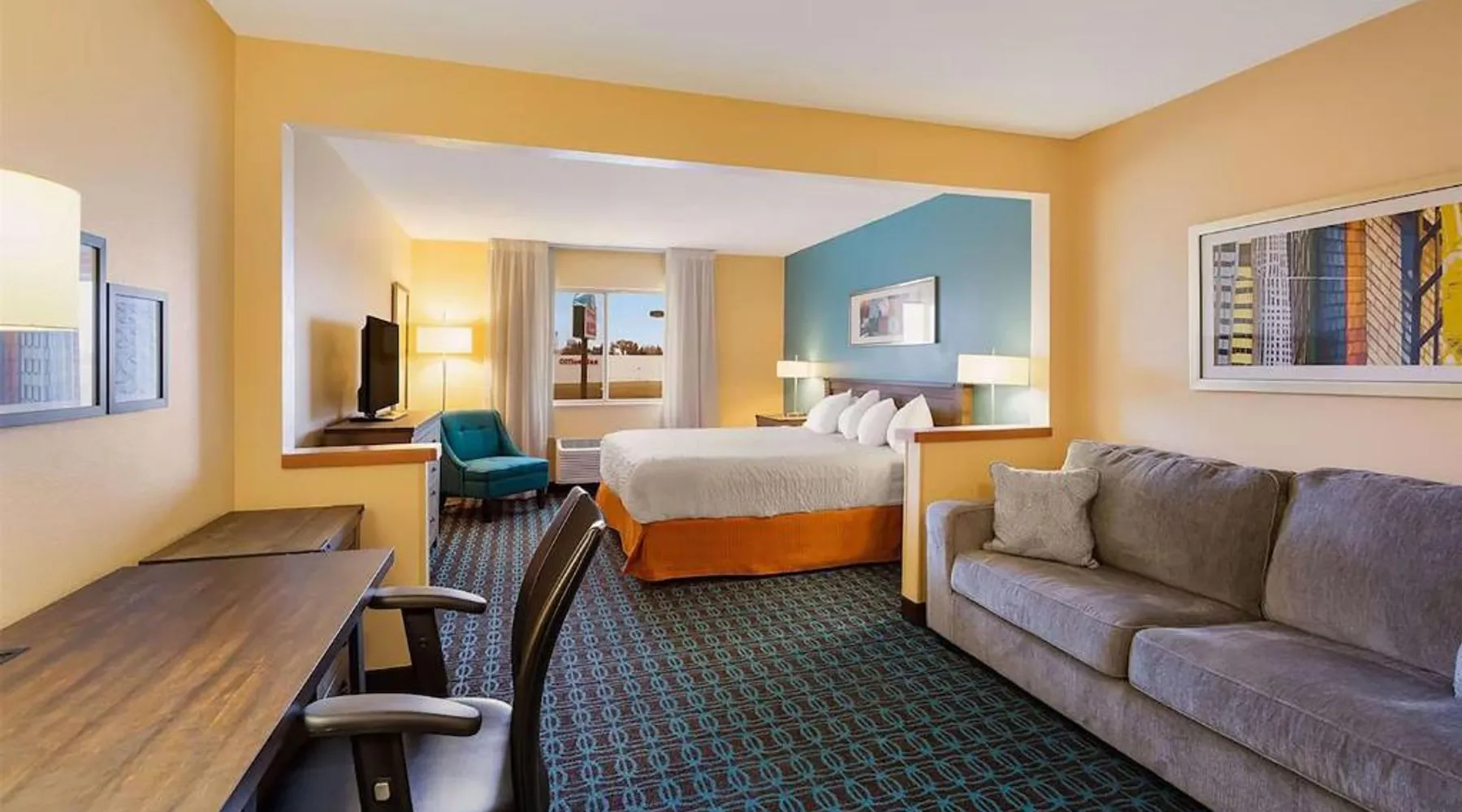 Comfortable Accommodations: AmericInn by Wyndham Minot in Minot offers family rooms with private bathrooms, air-conditioning, and free WiFi. Each room includes a work desk, soundproofing, and a seating area. Exceptional Facilities: Guests can enjoy an indoor swimming pool, fitness center, and outdoor seating area. Additional amenities include a lounge, games room, and picnic area. Free on-site private parking is available. Convenient Location: Located 4.3 mi from Minot International Airport, the hotel provides easy access to local attractions. Guests appreciate the convenient location, value for money, and room cleanliness. The air-conditioned quadruple room provides soundproof walls, a tea and coffee maker and a wardrobe. The unit offers 2 beds.