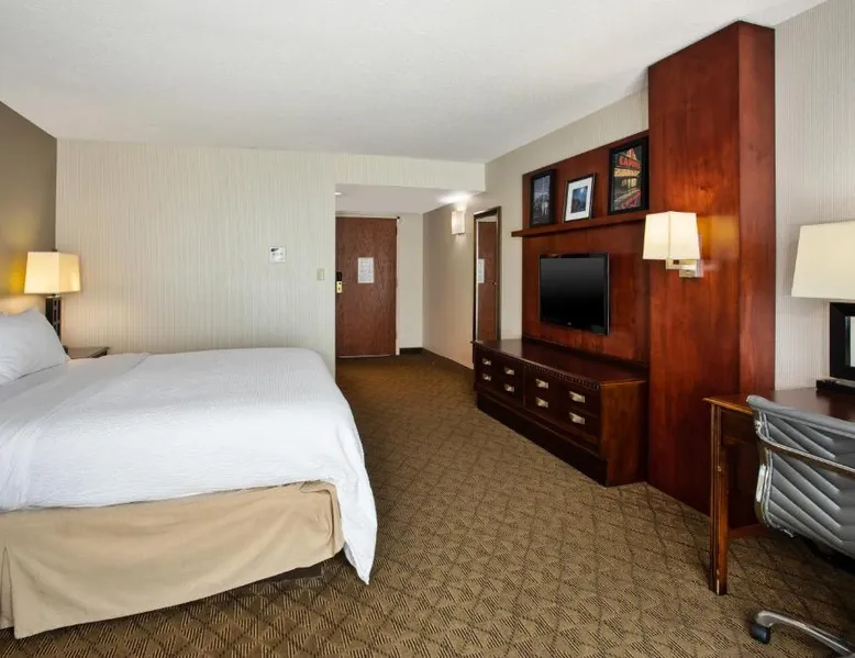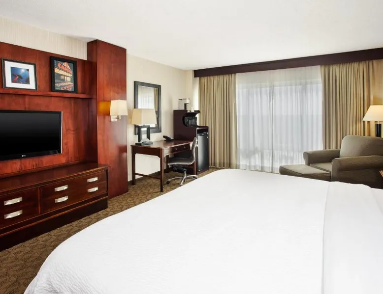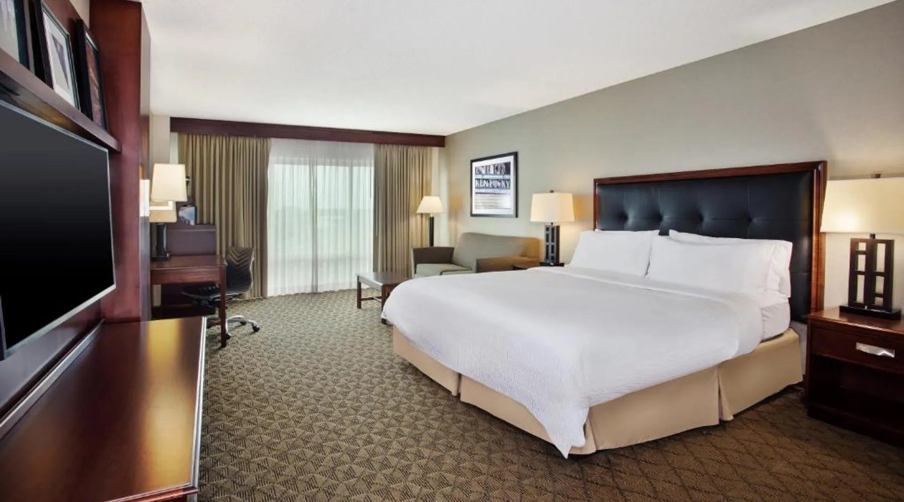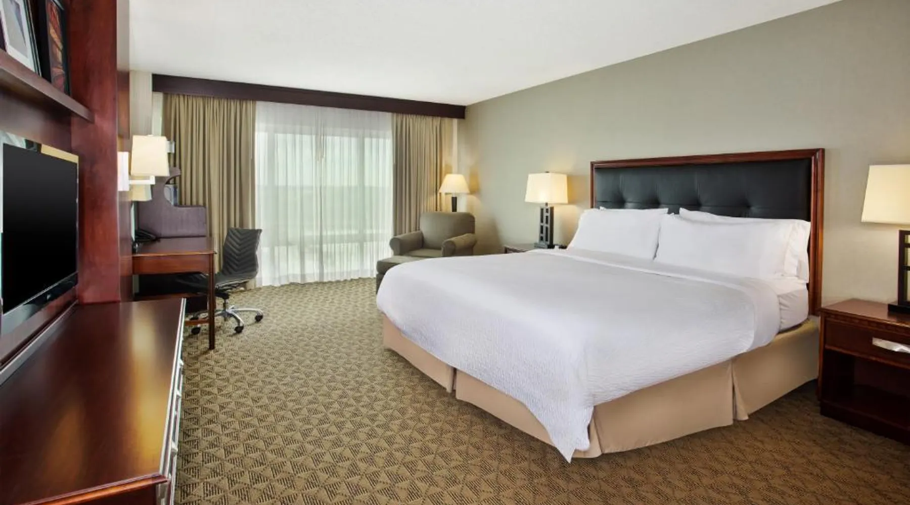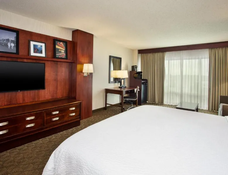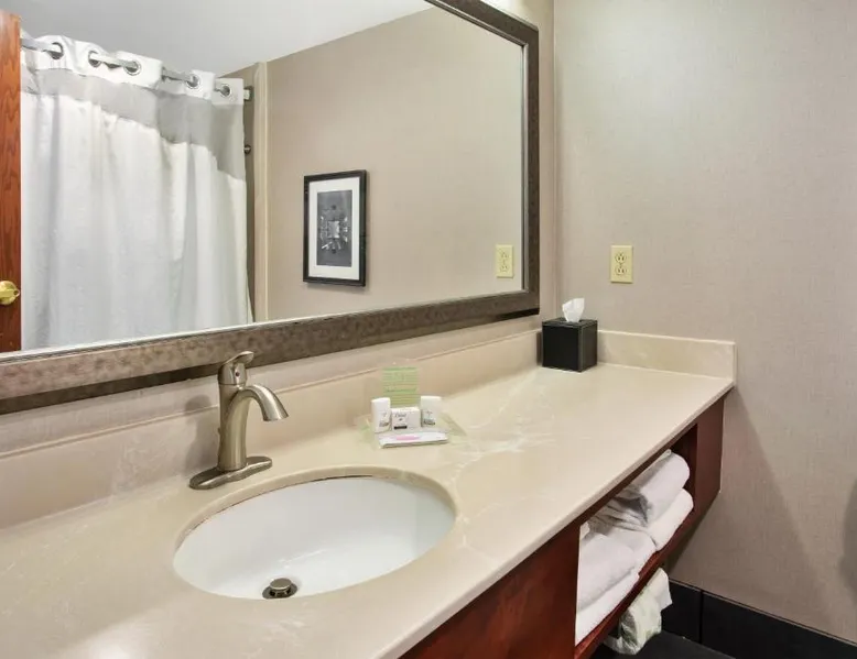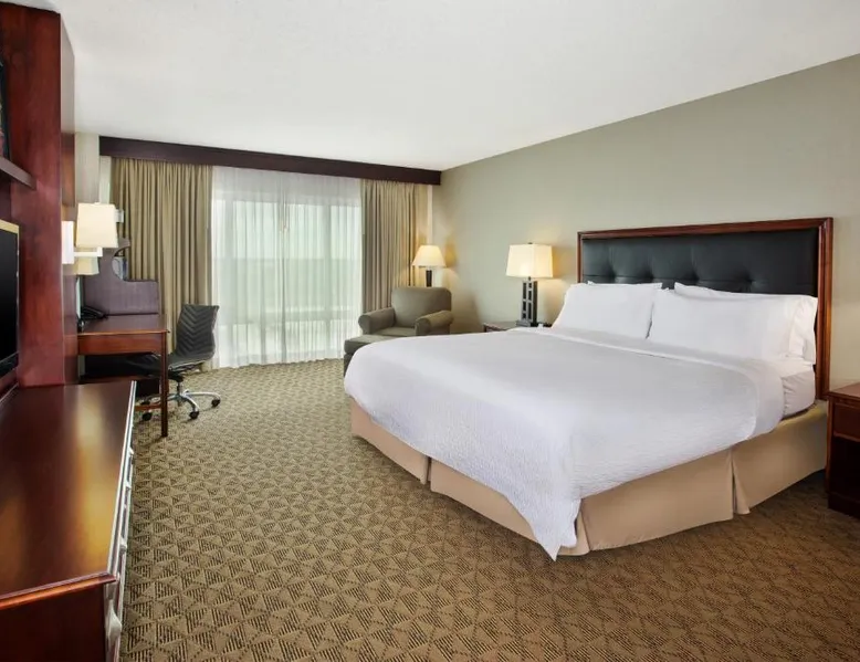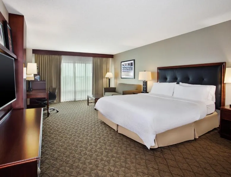 Comfortable Accommodations: Holiday Inn University Plaza-Bowling Green by IHG in Bowling Green offers comfortable rooms with air-conditioning, private bathrooms, and modern amenities. Guests enjoy free WiFi, flat-screen TVs, and work desks. Leisure Facilities: The hotel features a saltwater swimming pool, indoor pool, fitness center, sun terrace, and outdoor fireplace. Additional amenities include a restaurant, bar, and outdoor seating area. Dining Options: A family-friendly restaurant serves American cuisine with vegetarian options for lunch and dinner. Breakfast includes warm dishes, fresh pastries, and a variety of beverages. Convenient Location: Located 68 mi from Nashville International Airport, the hotel is near Sloan Convention Center and CrossWinds Golf Course. Western Kentucky University is 2.5 mi away. Guests appreciate the attentive staff and comfortable rooms. The unit has 1 bed.