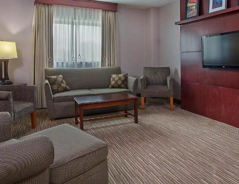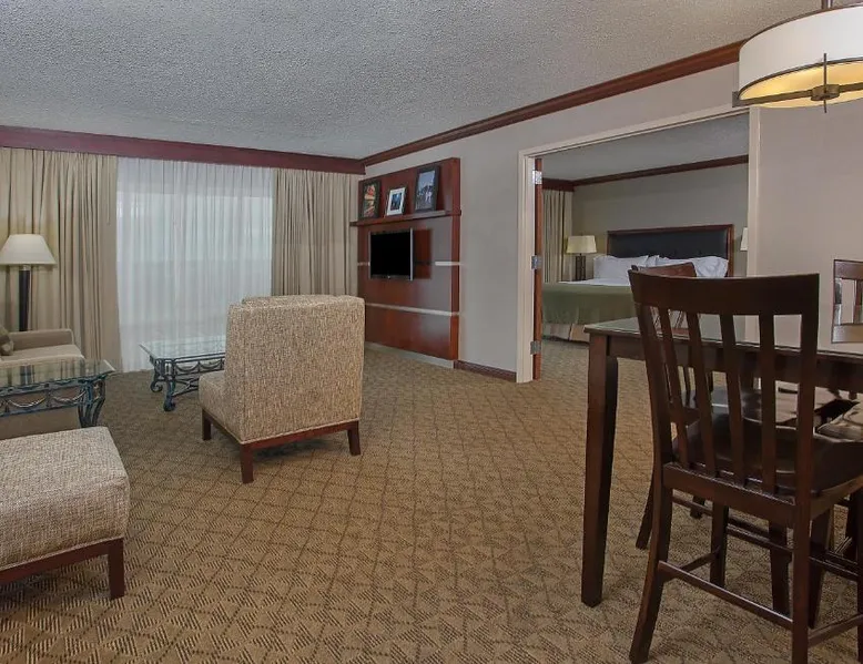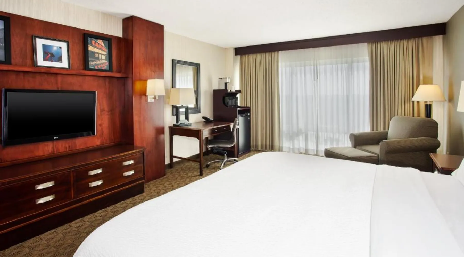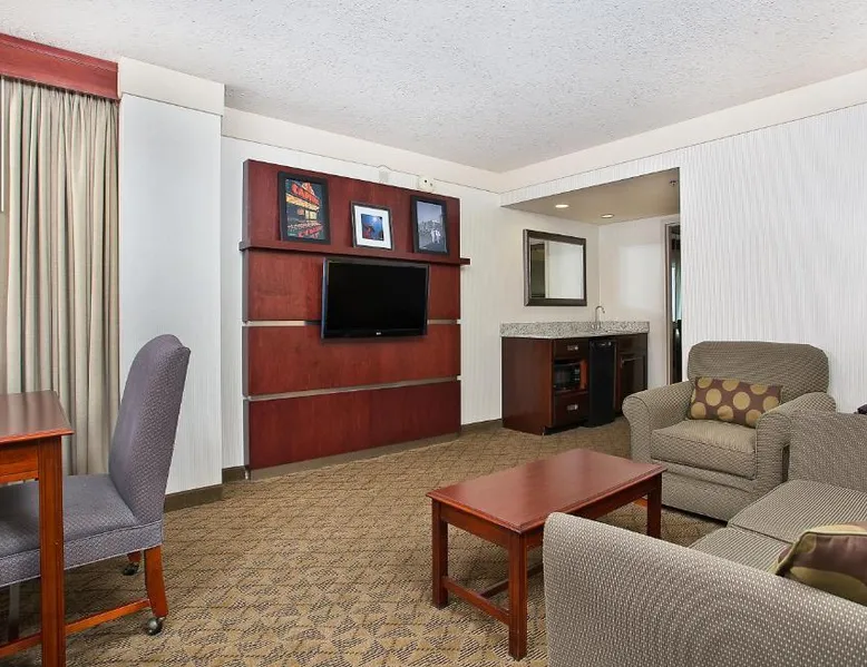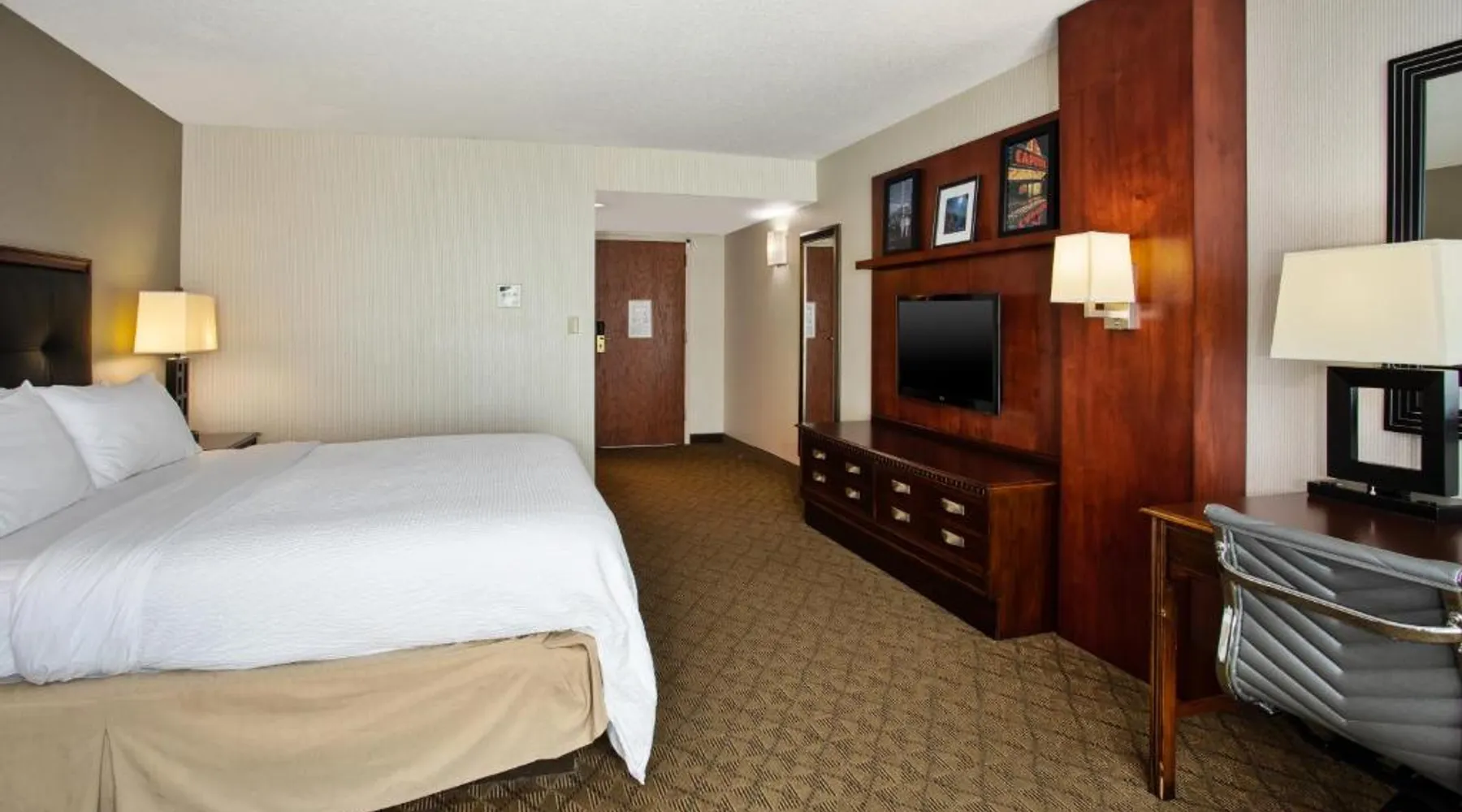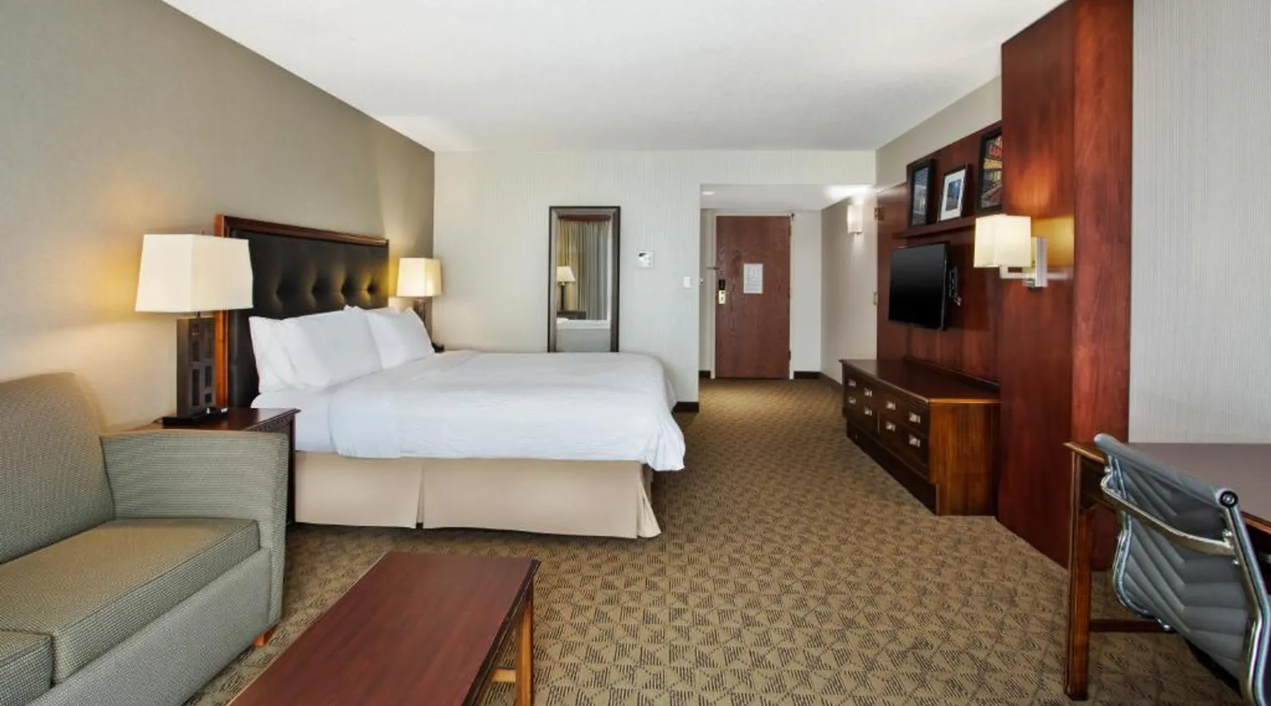 Comfortable Accommodations: Holiday Inn University Plaza-Bowling Green by IHG in Bowling Green offers comfortable rooms with air-conditioning, private bathrooms, and modern amenities. Guests enjoy free WiFi, flat-screen TVs, and work desks. Leisure Facilities: The hotel features a saltwater swimming pool, indoor pool, fitness center, sun terrace, and outdoor fireplace. Additional amenities include a restaurant, bar, and outdoor seating area. Dining Options: A family-friendly restaurant serves American cuisine with vegetarian options for lunch and dinner. Breakfast includes warm dishes, fresh pastries, and a variety of beverages. Convenient Location: Located 68 mi from Nashville International Airport, the hotel is near Sloan Convention Center and CrossWinds Golf Course. Western Kentucky University is 2.5 mi away. Guests appreciate the attentive staff and comfortable rooms. The unit has 1 bed.