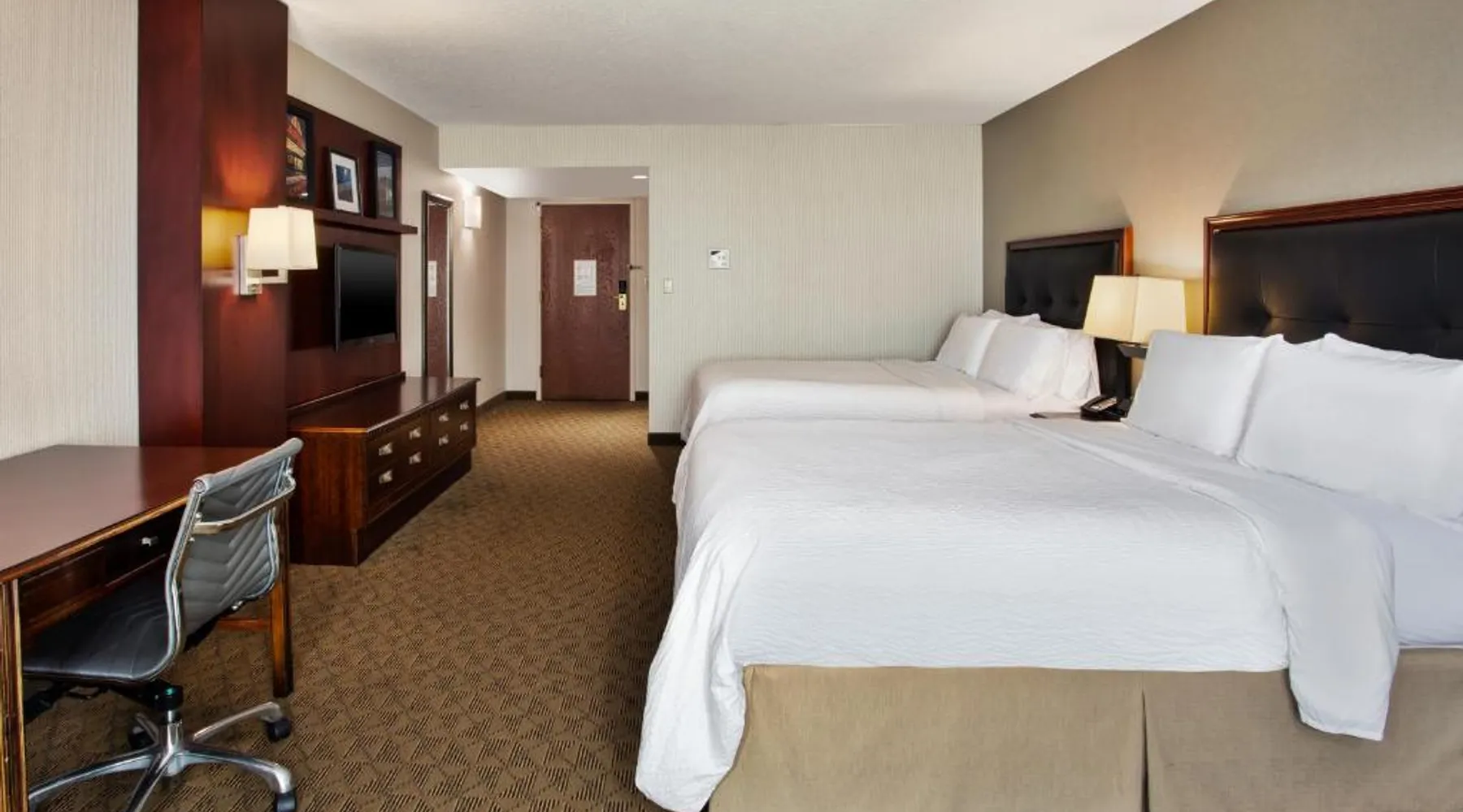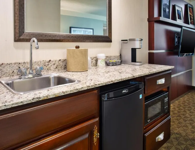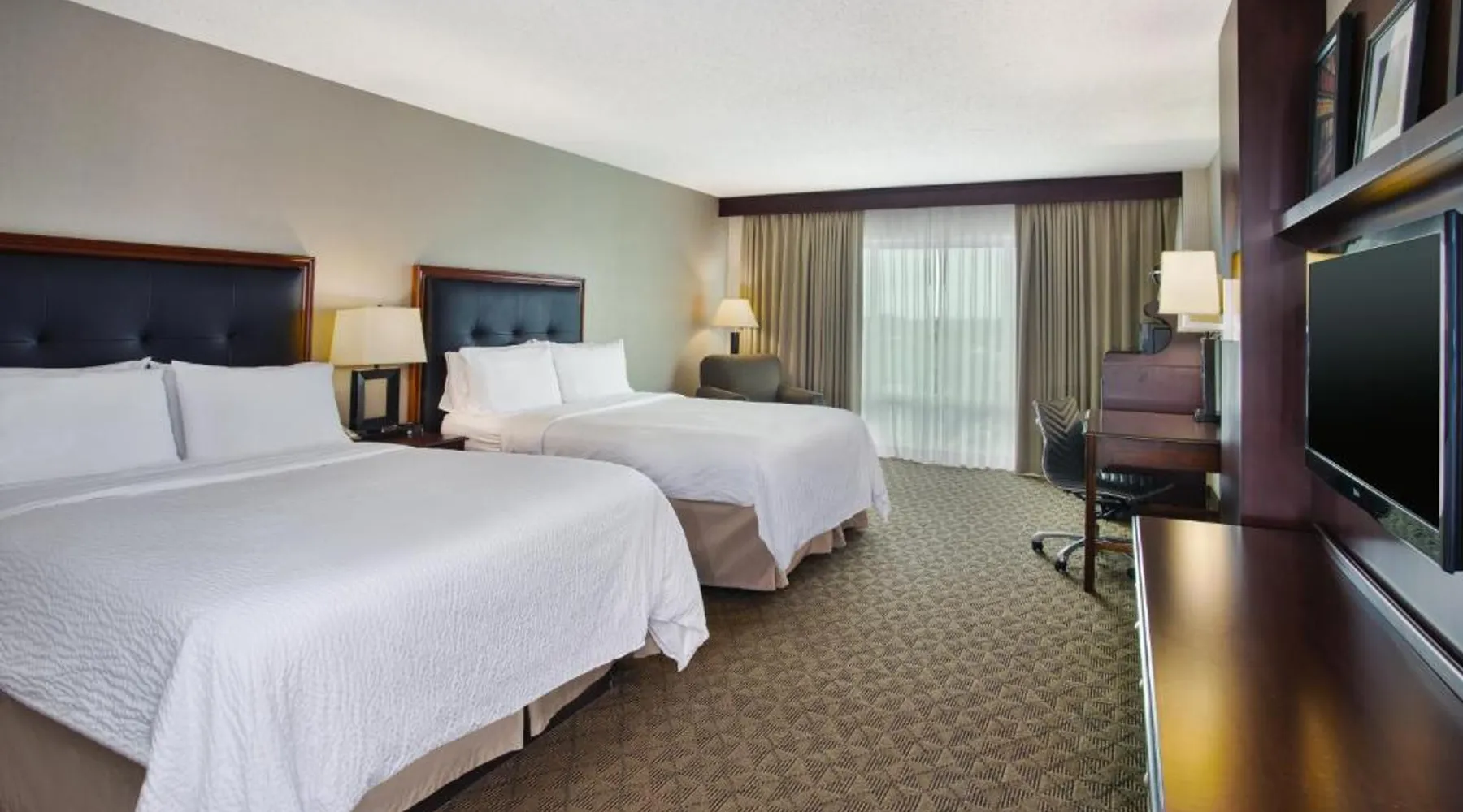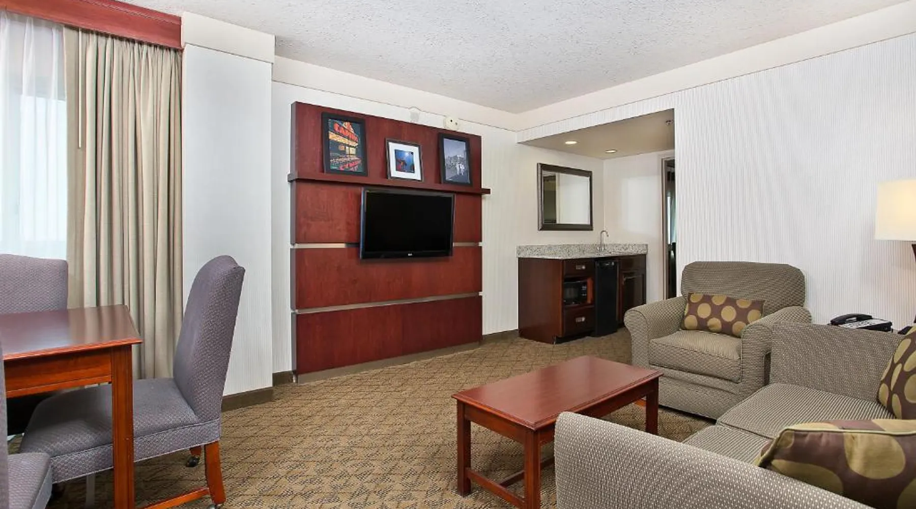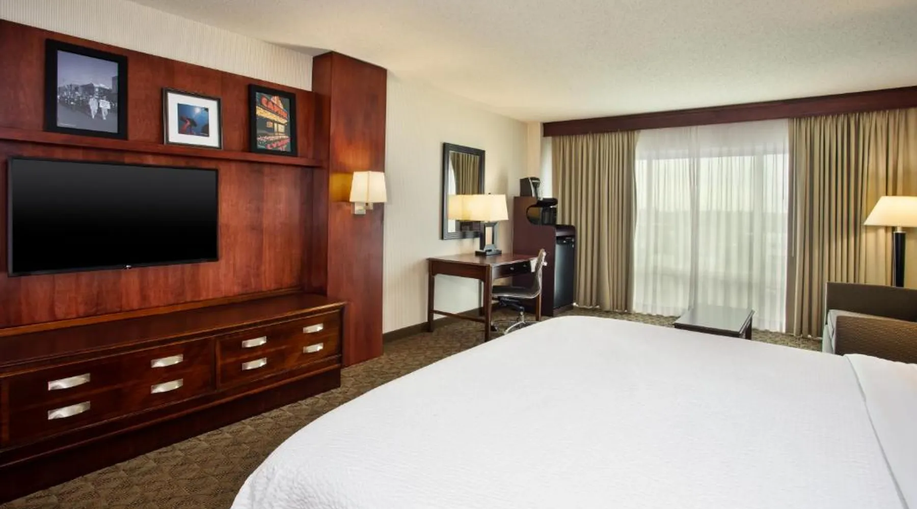 Comfortable Accommodations: Holiday Inn University Plaza-Bowling Green by IHG in Bowling Green offers comfortable rooms with air-conditioning, private bathrooms, and modern amenities. Guests enjoy free WiFi, flat-screen TVs, and work desks. Leisure Facilities: The hotel features a saltwater swimming pool, indoor pool, fitness center, sun terrace, and outdoor fireplace. Additional amenities include a restaurant, bar, and outdoor seating area. Dining Options: A family-friendly restaurant serves American cuisine with vegetarian options for lunch and dinner. Breakfast includes warm dishes, fresh pastries, and a variety of beverages. Convenient Location: Located 68 mi from Nashville International Airport, the hotel is near Sloan Convention Center and CrossWinds Golf Course. Western Kentucky University is 2.5 mi away. Guests appreciate the attentive staff and comfortable rooms. The unit has 1 bed.