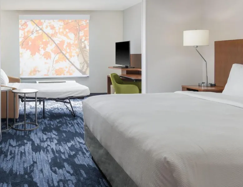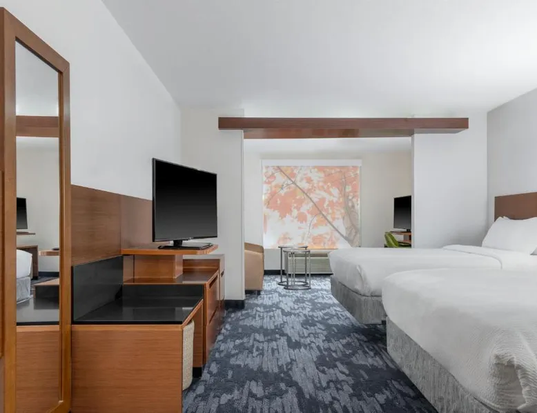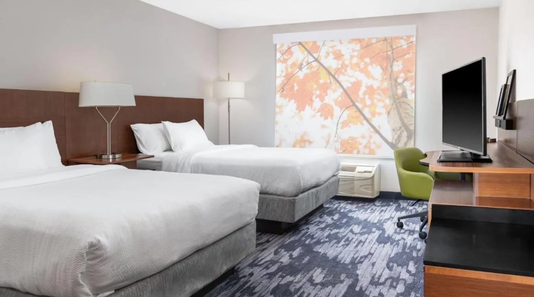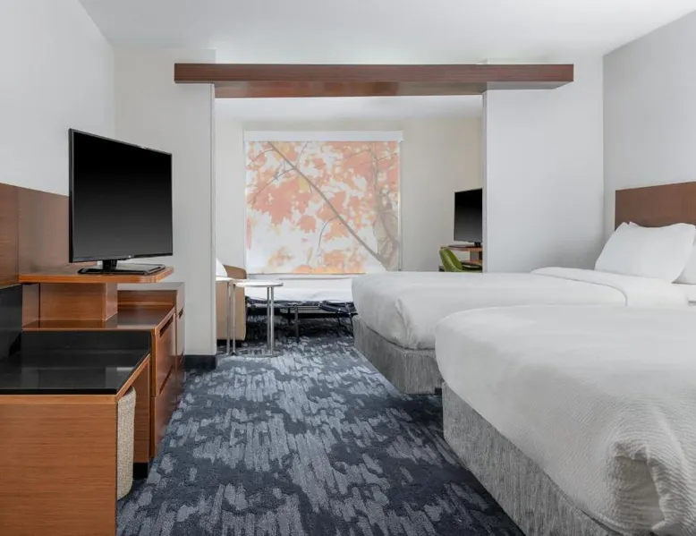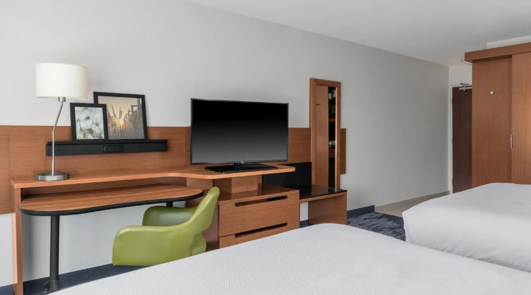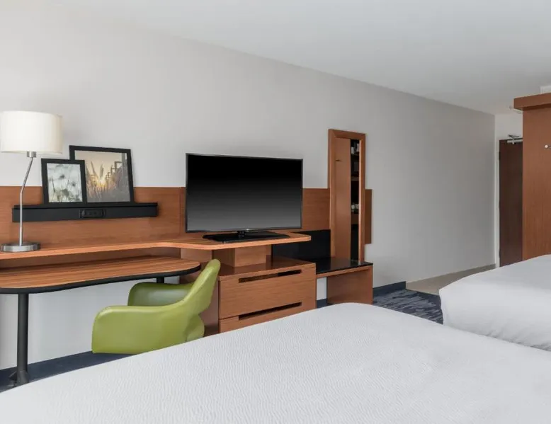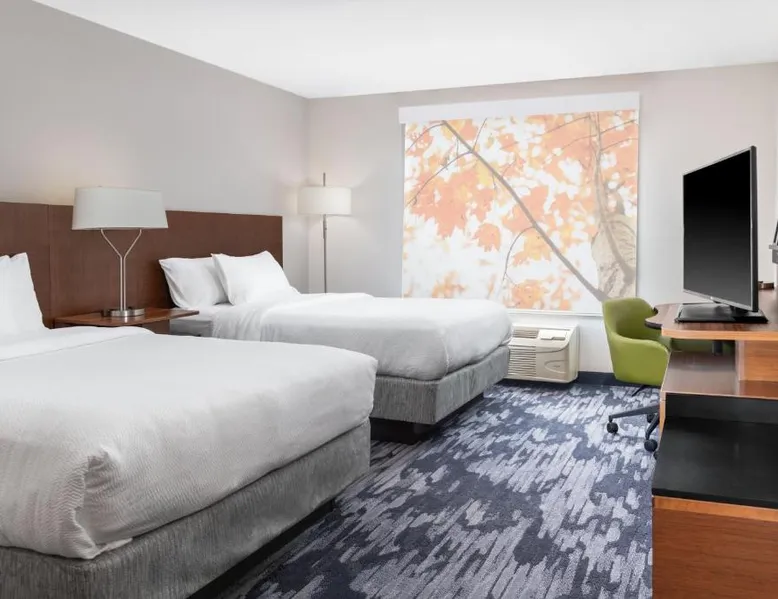 Comfortable Accommodations: Fairfield Inn & Suites by Marriott Martinsburg in Martinsburg offers rooms with air-conditioning, private bathrooms, and free WiFi. Each room includes a work desk, TV, and complimentary toiletries. Leisure Facilities: Guests can enjoy a fitness center, sun terrace, and seasonal outdoor swimming pool. Additional amenities include a lounge, fitness room, and outdoor seating area. Dining Options: A continental, American, and buffet breakfast is served daily, featuring warm dishes, fresh pastries, fruits, and juices. Convenient Location: Located 24 mi from Hagerstown Regional Airport, the hotel is near attractions such as Locust Hill Golf Course (20 mi) and Harpers Ferry National Historical Park (24 mi). Free on-site private parking is available. The spacious double room offers air conditioning, a tea and coffee maker, as well as a private bathroom featuring a bath and a shower. The double room provides a wardrobe, tumble dryer, a carpeted floor, heating, as well as a flat-screen TV with streaming services. The unit offers 2 beds.