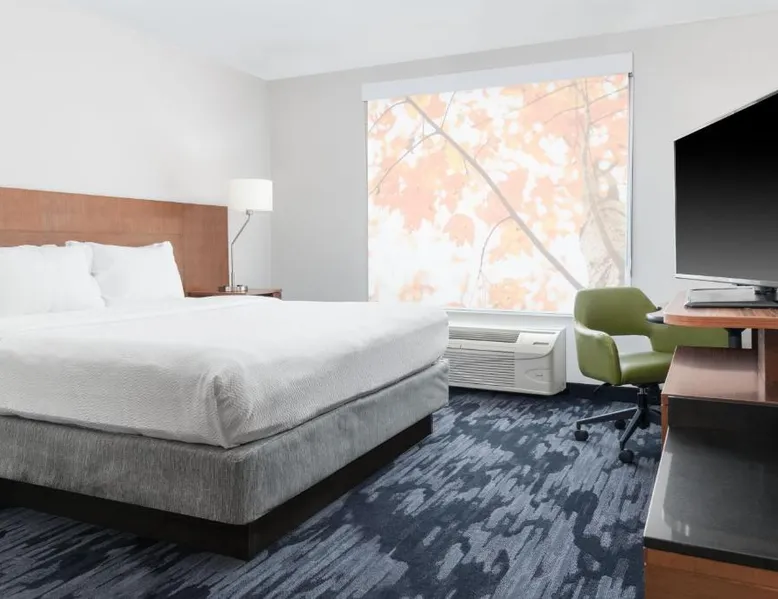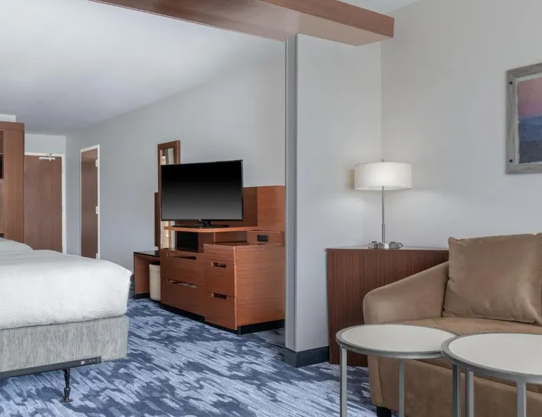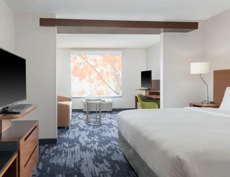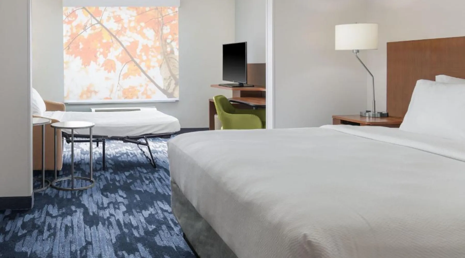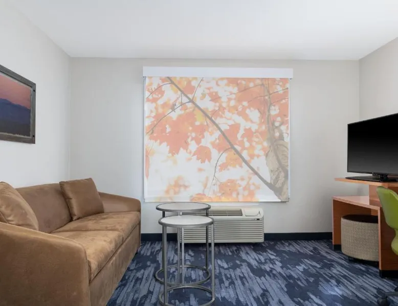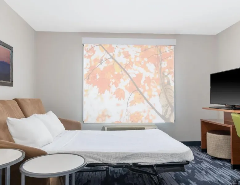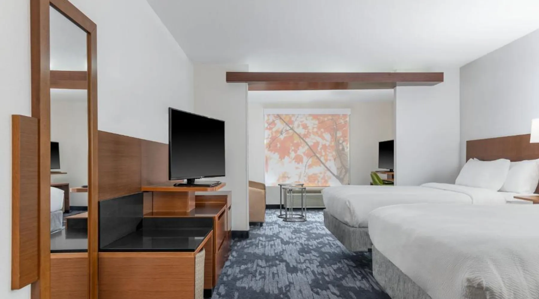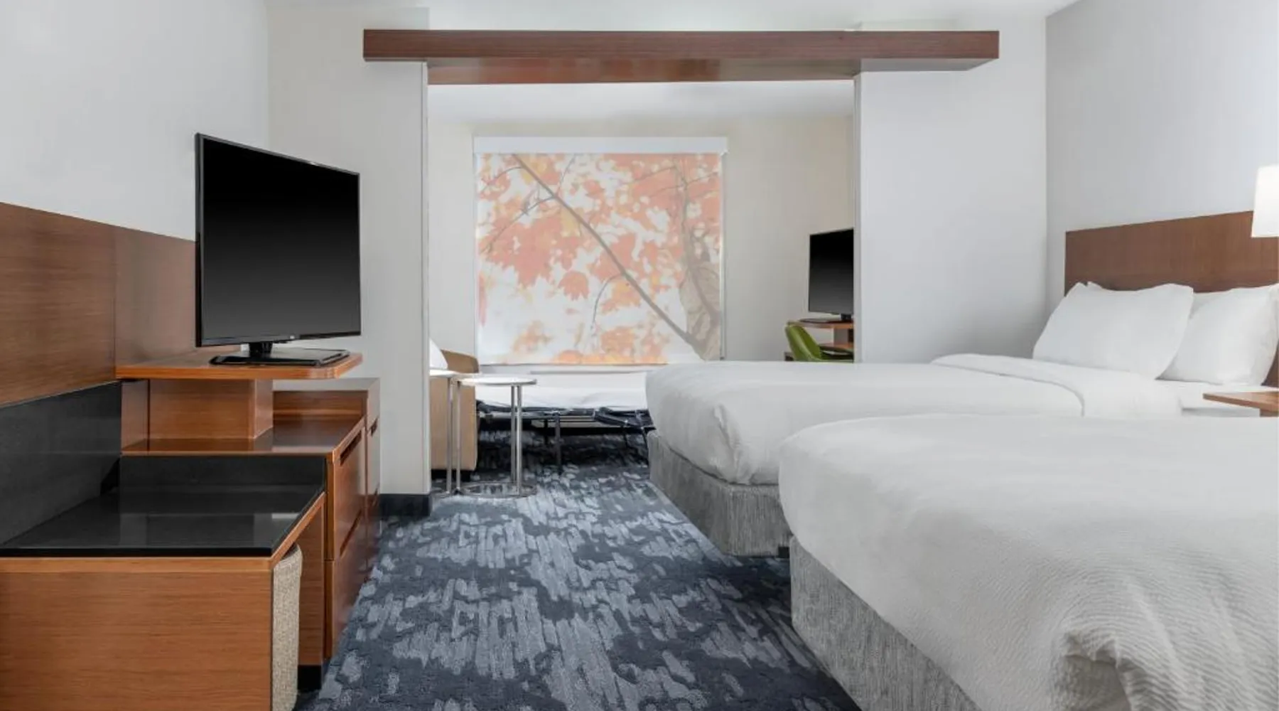 Comfortable Accommodations: Fairfield Inn & Suites by Marriott Martinsburg in Martinsburg offers rooms with air-conditioning, private bathrooms, and free WiFi. Each room includes a work desk, TV, and complimentary toiletries. Leisure Facilities: Guests can enjoy a fitness center, sun terrace, and seasonal outdoor swimming pool. Additional amenities include a lounge, fitness room, and outdoor seating area. Dining Options: A continental, American, and buffet breakfast is served daily, featuring warm dishes, fresh pastries, fruits, and juices. Convenient Location: Located 24 mi from Hagerstown Regional Airport, the hotel is near attractions such as Locust Hill Golf Course (20 mi) and Harpers Ferry National Historical Park (24 mi). Free on-site private parking is available. The spacious double room offers air conditioning, a tea and coffee maker, as well as a private bathroom featuring a bath and a shower. The double room provides a wardrobe, tumble dryer, a carpeted floor, heating, as well as a flat-screen TV with streaming services. The unit offers 2 beds.