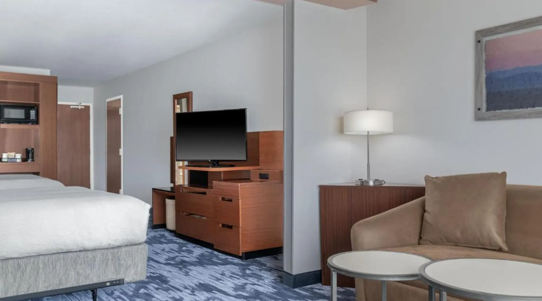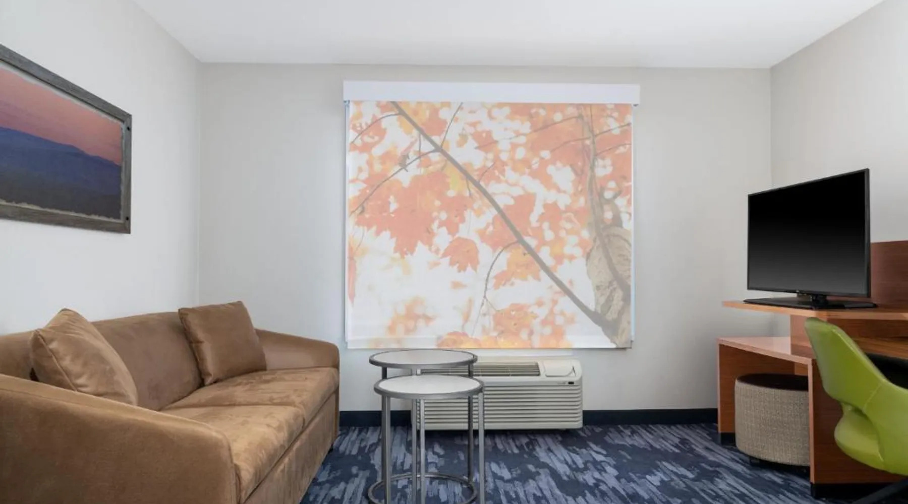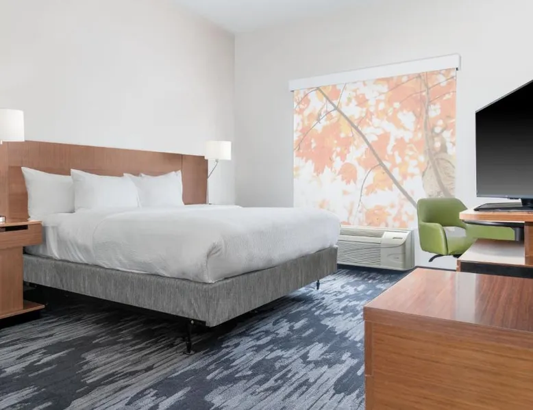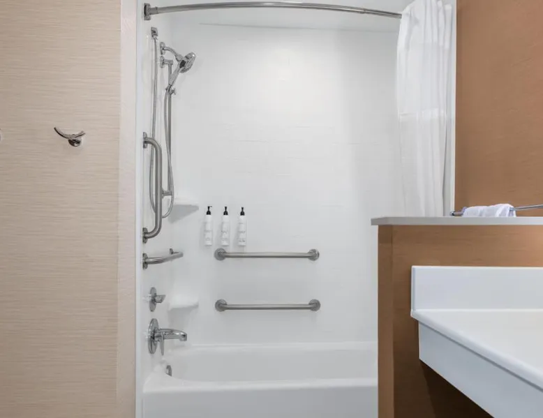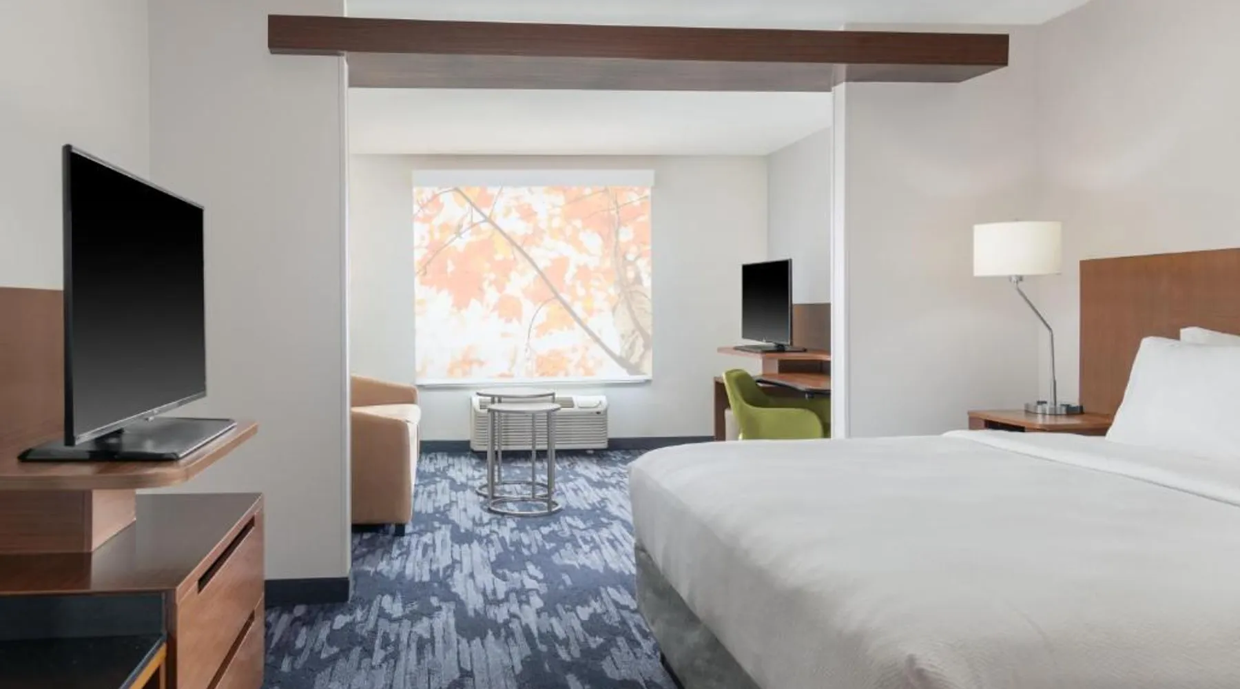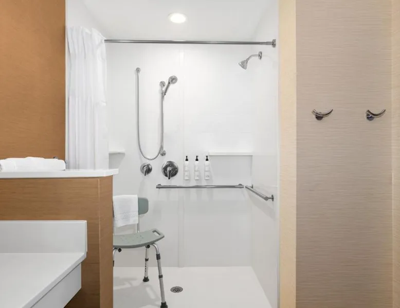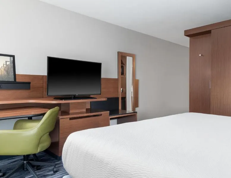 Comfortable Accommodations: Fairfield Inn & Suites by Marriott Martinsburg in Martinsburg offers rooms with air-conditioning, private bathrooms, and free WiFi. Each room includes a work desk, TV, and complimentary toiletries. Leisure Facilities: Guests can enjoy a fitness center, sun terrace, and seasonal outdoor swimming pool. Additional amenities include a lounge, fitness room, and outdoor seating area. Dining Options: A continental, American, and buffet breakfast is served daily, featuring warm dishes, fresh pastries, fruits, and juices. Convenient Location: Located 24 mi from Hagerstown Regional Airport, the hotel is near attractions such as Locust Hill Golf Course (20 mi) and Harpers Ferry National Historical Park (24 mi). Free on-site private parking is available. The spacious double room offers air conditioning, a tea and coffee maker, as well as a private bathroom featuring a bath and a shower. The double room provides a wardrobe, tumble dryer, a carpeted floor, heating, as well as a flat-screen TV with streaming services. The unit offers 2 beds.
