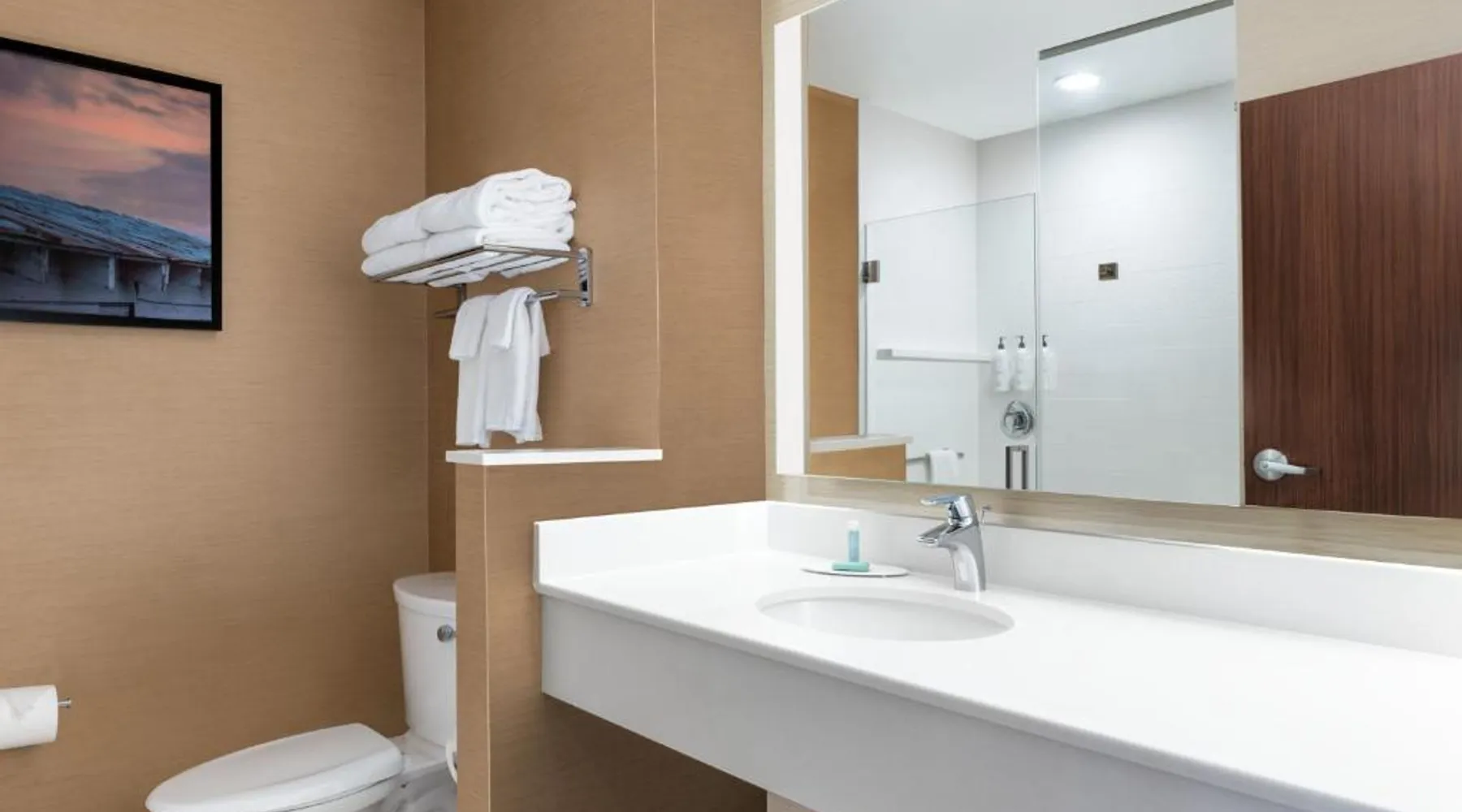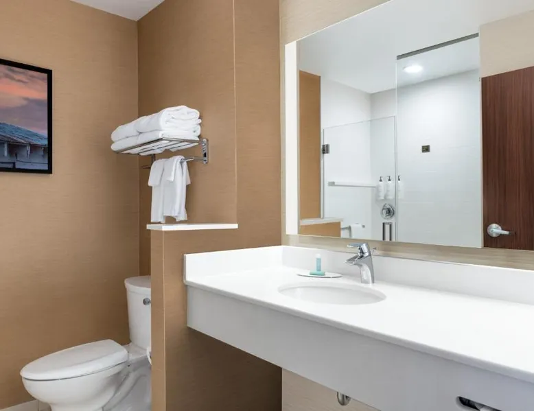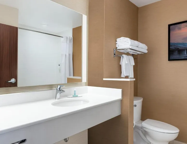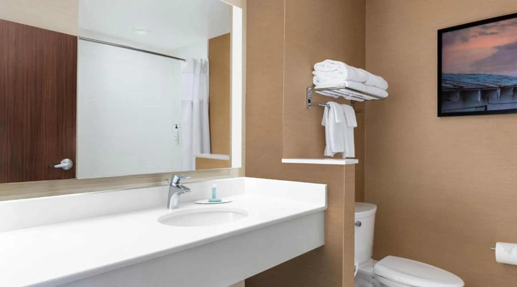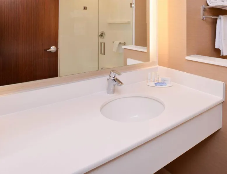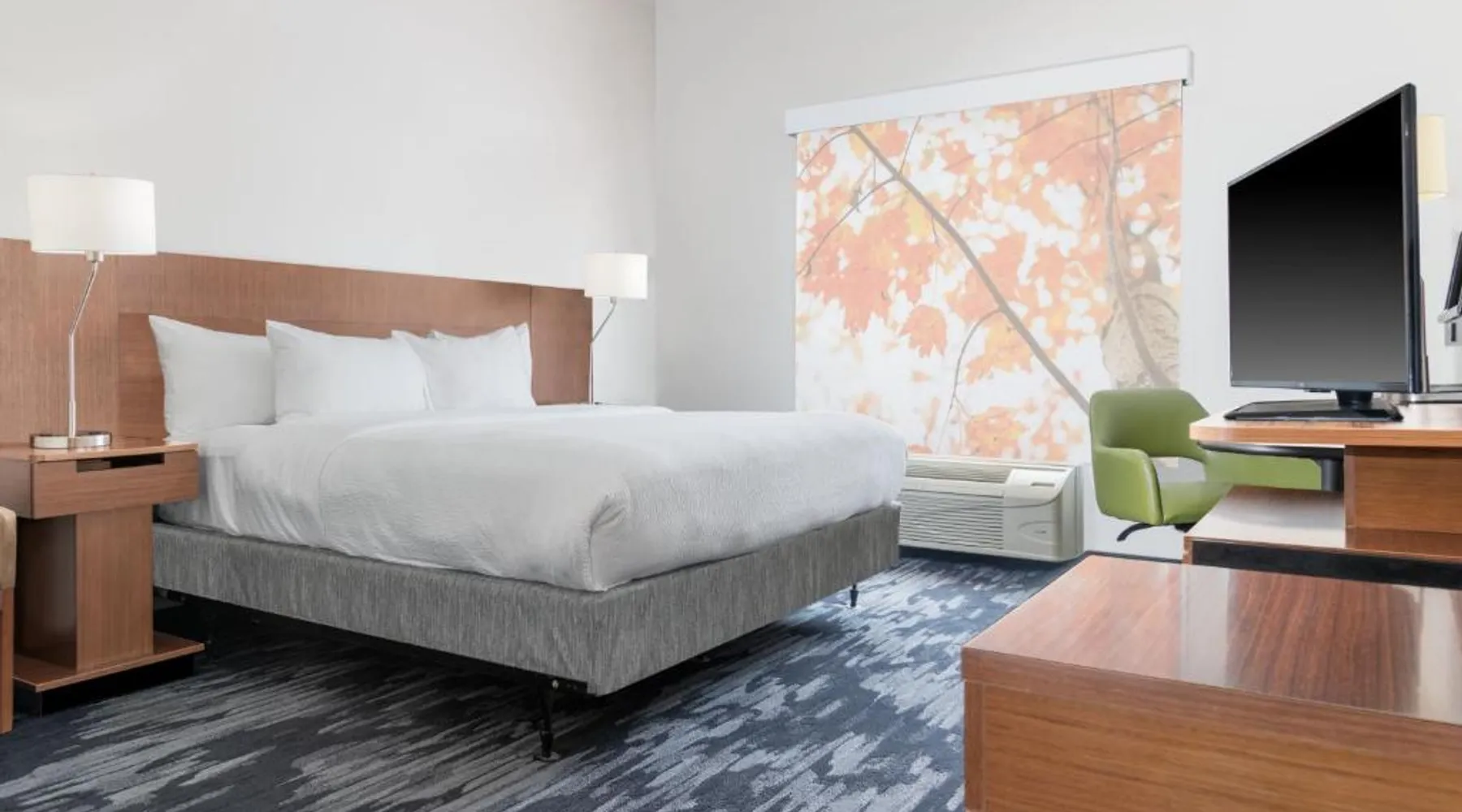 Comfortable Accommodations: Fairfield Inn & Suites by Marriott Martinsburg in Martinsburg offers rooms with air-conditioning, private bathrooms, and free WiFi. Each room includes a work desk, TV, and complimentary toiletries. Leisure Facilities: Guests can enjoy a fitness center, sun terrace, and seasonal outdoor swimming pool. Additional amenities include a lounge, fitness room, and outdoor seating area. Dining Options: A continental, American, and buffet breakfast is served daily, featuring warm dishes, fresh pastries, fruits, and juices. Convenient Location: Located 24 mi from Hagerstown Regional Airport, the hotel is near attractions such as Locust Hill Golf Course (20 mi) and Harpers Ferry National Historical Park (24 mi). Free on-site private parking is available. The spacious double room offers air conditioning, a tea and coffee maker, as well as a private bathroom featuring a bath and a shower. The double room provides a wardrobe, tumble dryer, a carpeted floor, heating, as well as a flat-screen TV with streaming services. The unit offers 2 beds.