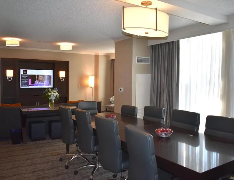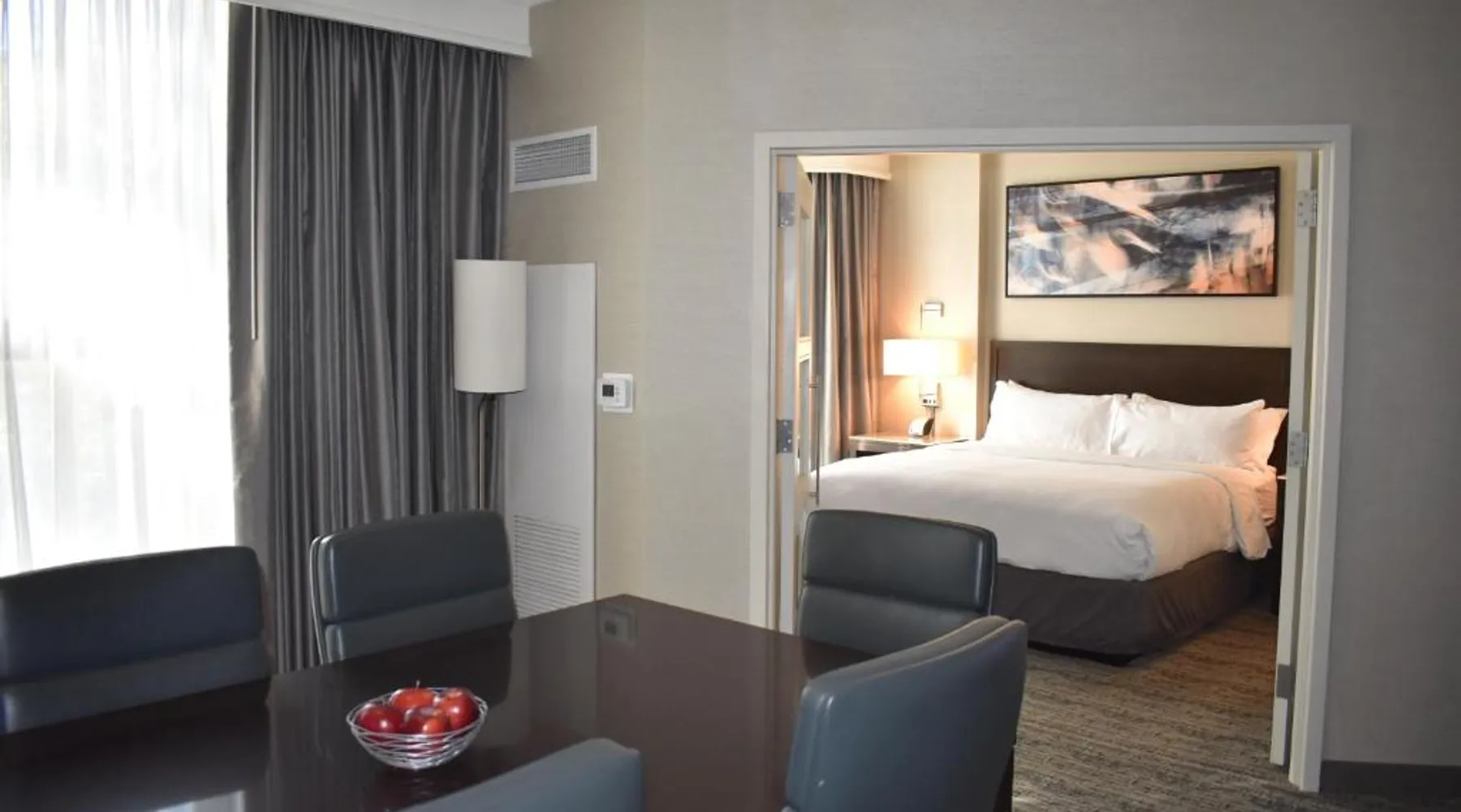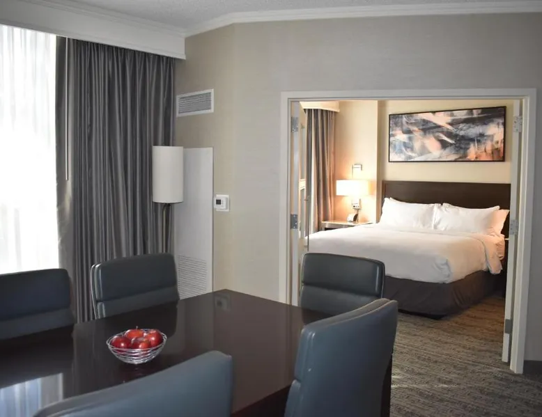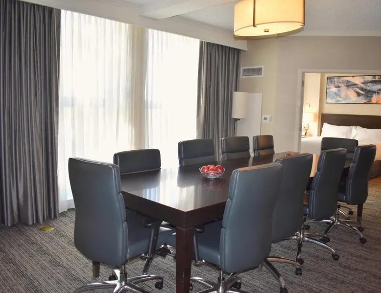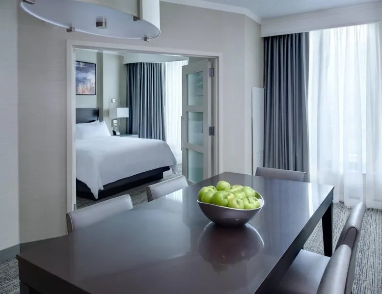 This all suite Rosemont hotel is just 3 miles from Chicago O'Hare International Airport and provides a free airport shuttle service. It offers spacious suites with a large working area. Each suite has occupancy up to five people, a working desk, and a mini fridge. The suites also have 2 phones, a table with seating for 4, and a wet bar. Includes cardiovascular equipment and free weights. The hotel’s restaurant, Six1Five5, offers freshly prepared American fare including regional specialties. Donald E Stephens Convention Center is less than a mile from the hotel. The unit has 1 bed.