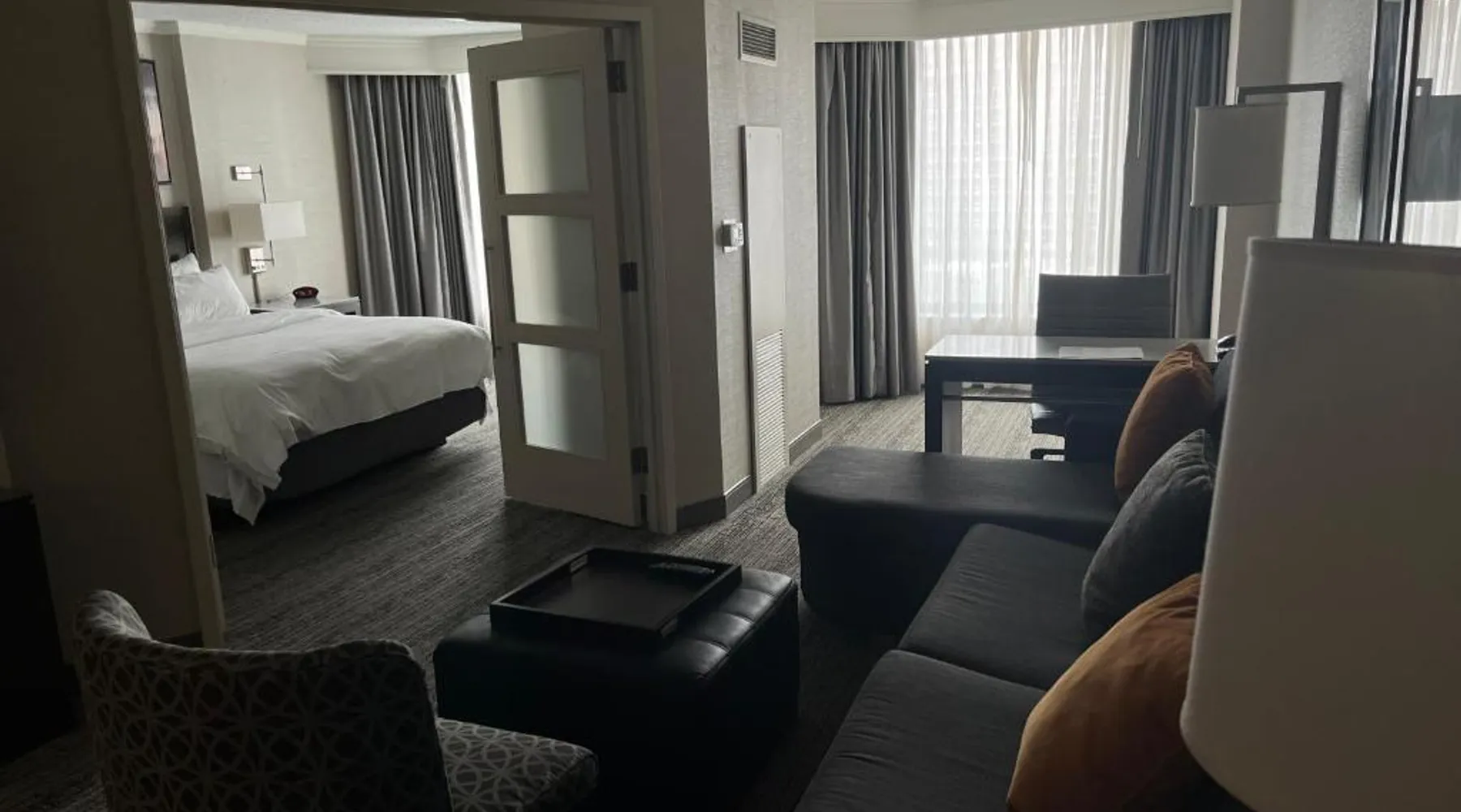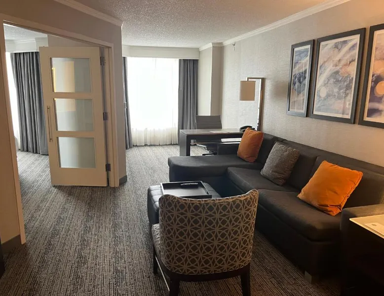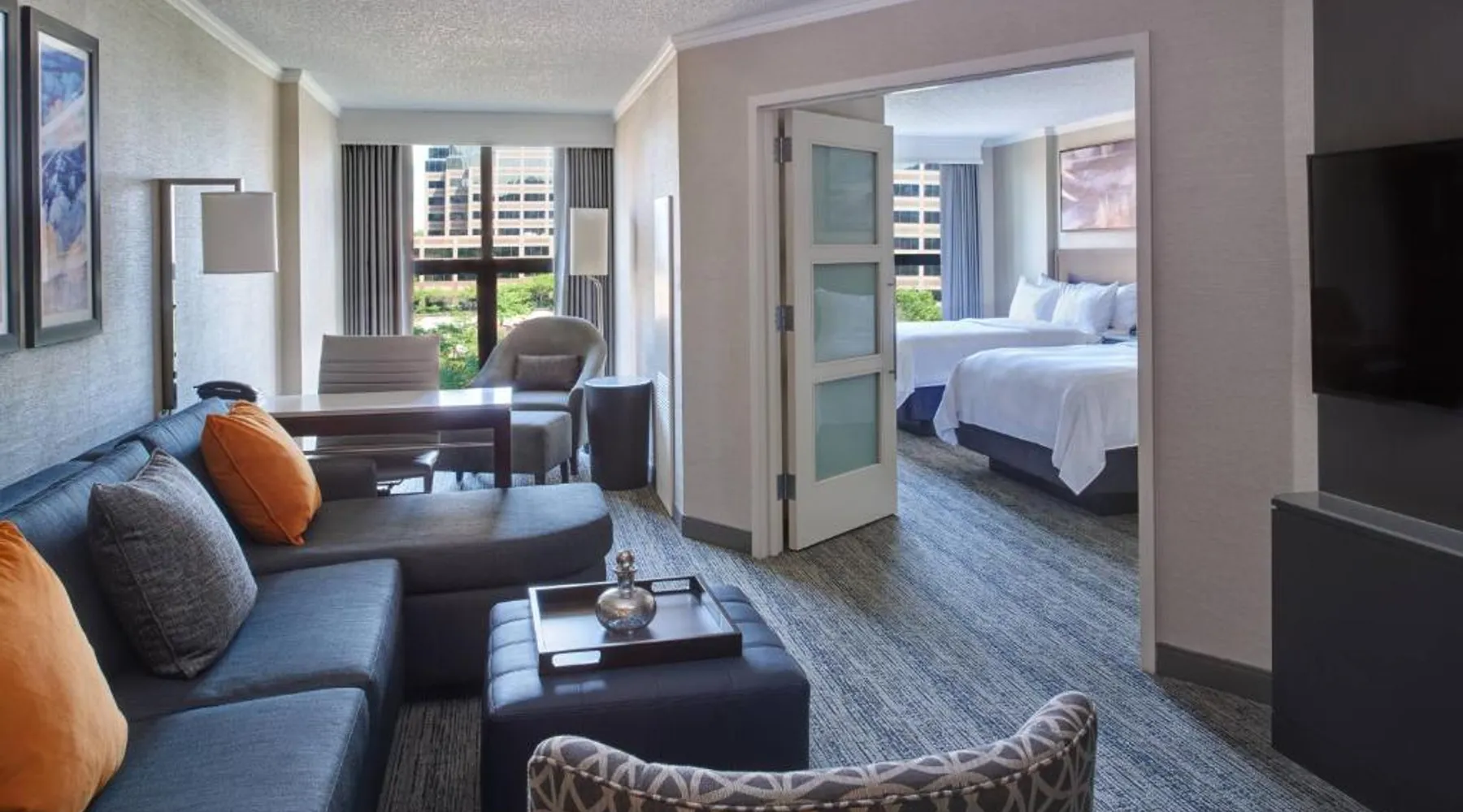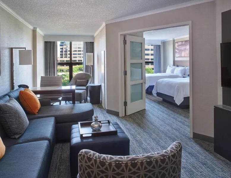 This all suite Rosemont hotel is just 3 miles from Chicago O'Hare International Airport and provides a free airport shuttle service. It offers spacious suites with a large working area. Each suite has occupancy up to five people, a working desk, and a mini fridge. The suites also have 2 phones, a table with seating for 4, and a wet bar. Includes cardiovascular equipment and free weights. The hotel’s restaurant, Six1Five5, offers freshly prepared American fare including regional specialties. Donald E Stephens Convention Center is less than a mile from the hotel. The unit has 1 bed.