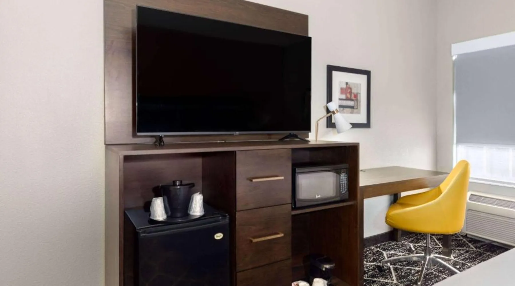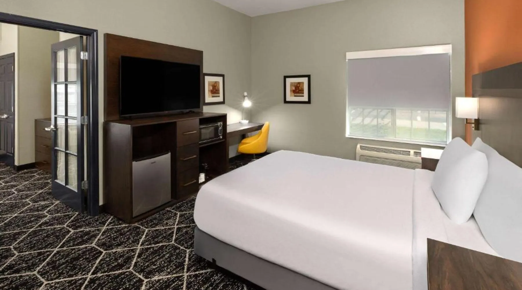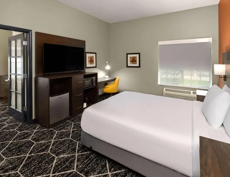 Featuring an indoor pool and hot tub, this Olathe hotel provides a flat-screen cable TV in every guest room. The Overland Park Convention Center is 13 miles away. Free Wi-Fi is available in every room at La Quinta Inn & Suites Olathe. Tea and coffee-making facilities and a hairdryer are also included. Fresh fruit, waffles, cereal and more are served as part of the daily continental breakfast at Olathe La Quinta Inn & Suites. A fitness center and laundromat facilities are also available. The Sprint Headquarters can be reached in a 20-minute drive from this hotel. The University of Kansas-Lawrence is 30 miles away. This air-conditioned triple room is consisted of of a TV with cable channels and a private bathroom.