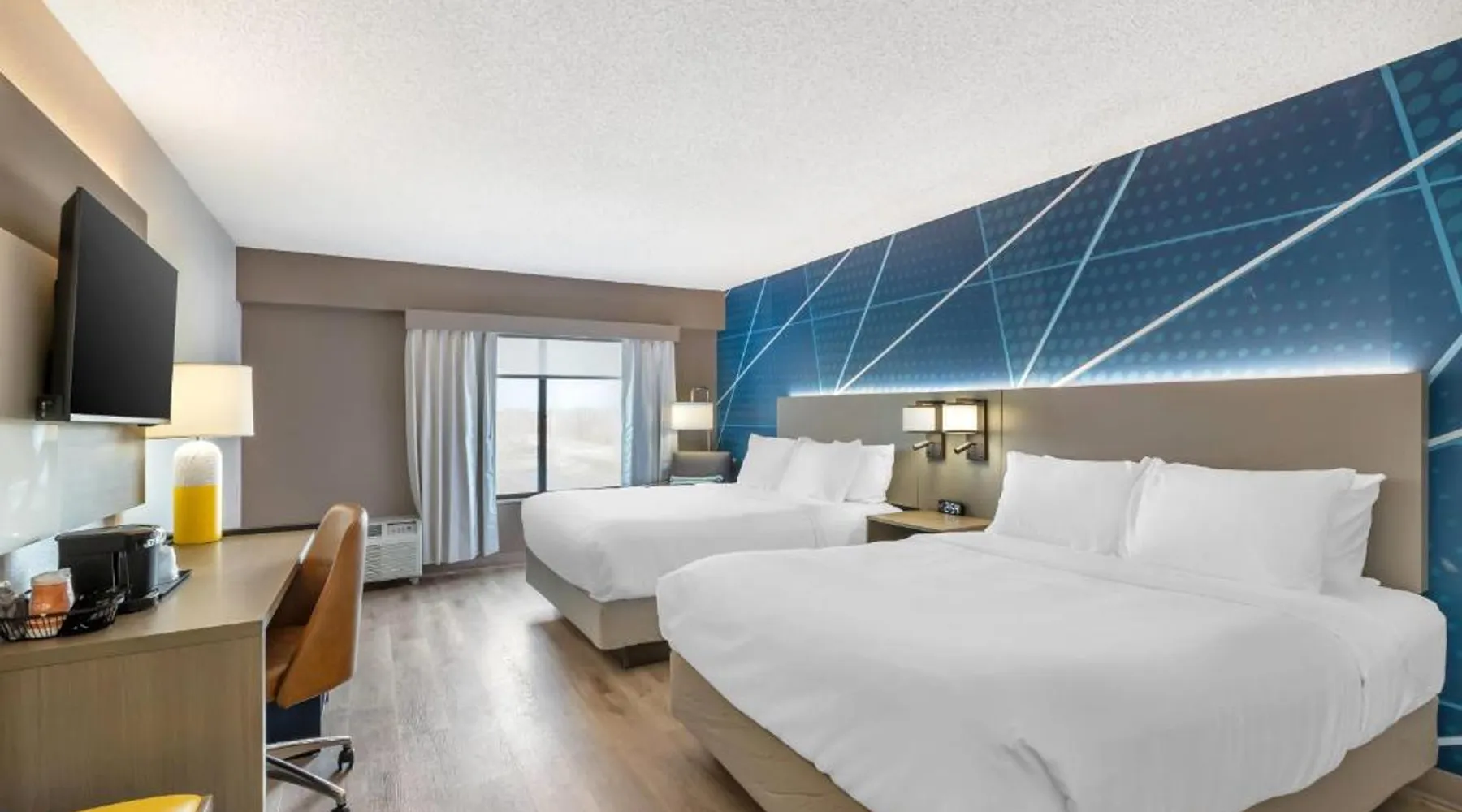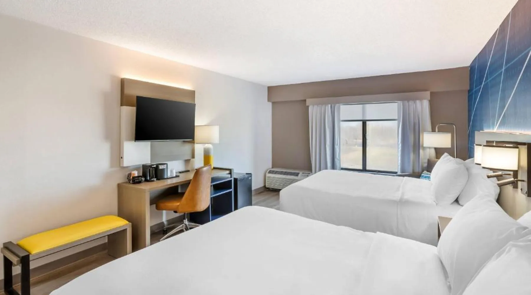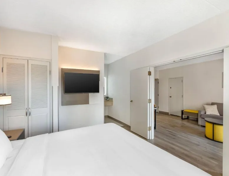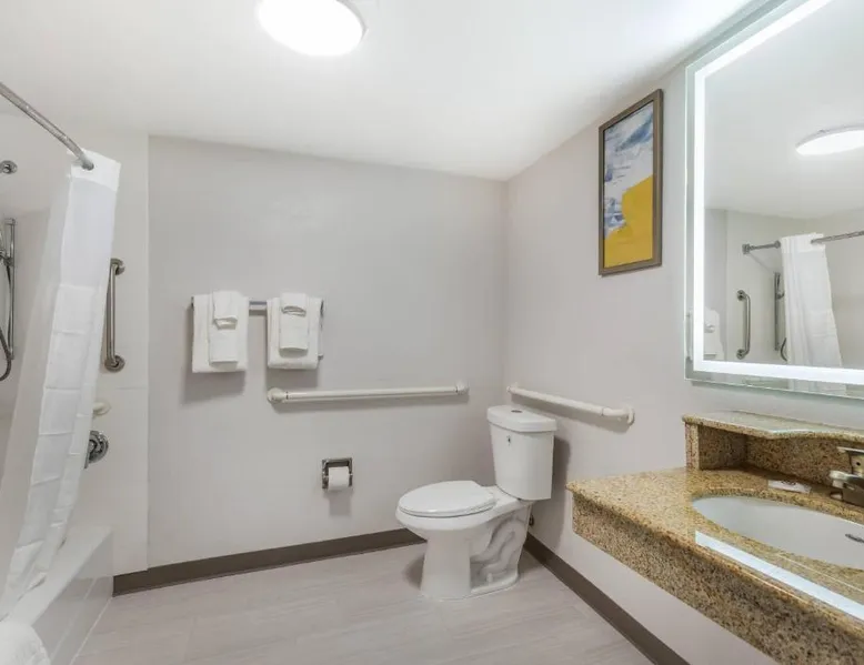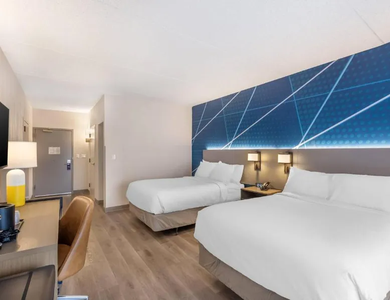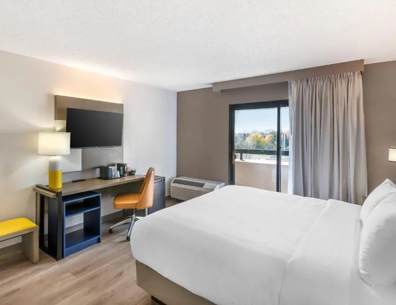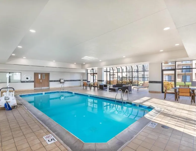 Comfortable Accommodations: Comfort Inn & Suites Arlington Heights - Buffalo Grove in Arlington Heights offers family rooms with air-conditioning, private bathrooms, and modern amenities. Each room includes a tea and coffee maker, refrigerator, work desk, microwave, and TV. Leisure Facilities: Guests can enjoy an indoor swimming pool, fitness center, and a beautiful garden. Free WiFi is available throughout the property, ensuring connectivity. Convenient Services: The hotel provides a 24-hour front desk, fitness room, elevator, and paid on-site private parking. Additional services include a minimarket, housekeeping, business area, outdoor seating, picnic area, and full-day security. Dining Options: A full English or Irish breakfast is served daily. The on-site restaurant offers a variety of menus catering to special diets. Nearby Attractions: Six Flags Great America is 20 mi away, Loyola University Chicago 24 mi, and Wrigley Field 29 mi from the hotel. Chicago O'Hare International Airport is 14 mi distant. The spacious double room features air conditioning, a tea and coffee maker, as well as a private bathroom boasting a shower and a hairdryer. Rooms on the upper floors are reachable by elevator. The unit has 1 bed.