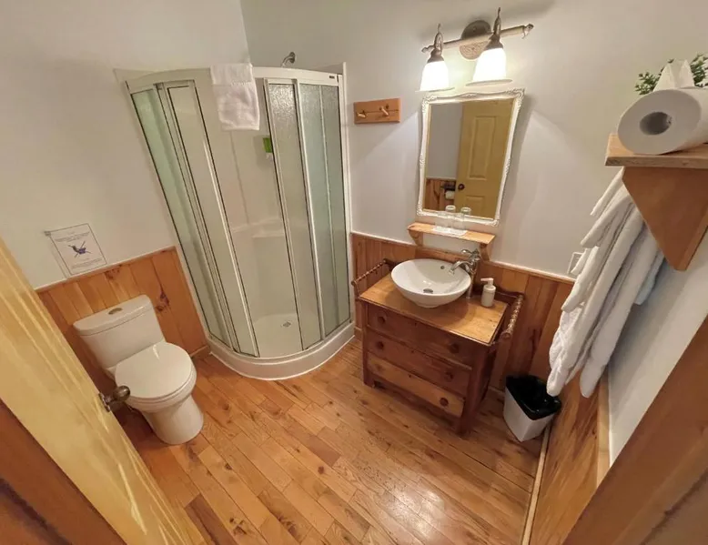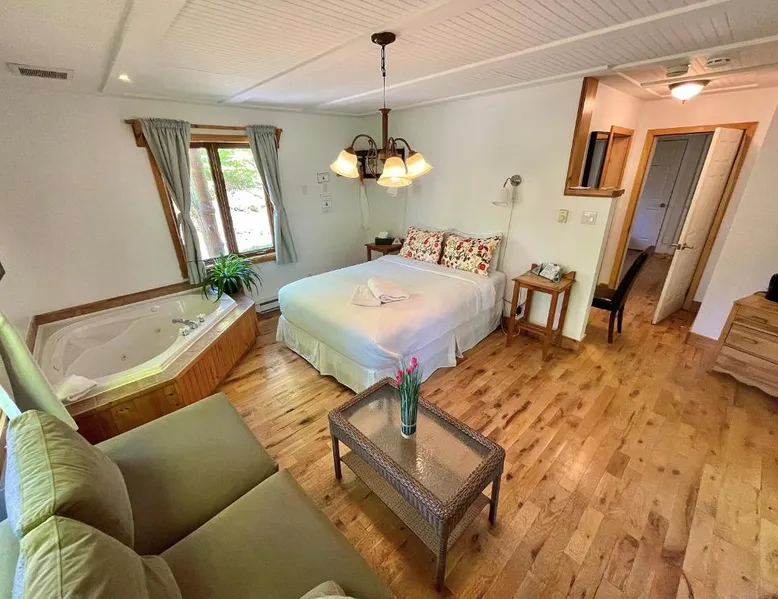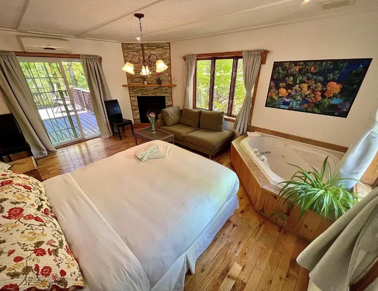 Comfortable Accommodations: Auberge Spa & Beaux Reves in Sainte-Adèle offers family rooms with private bathrooms, air-conditioning, and free WiFi. Each room includes a refrigerator, electric kettle, and a work desk. Relaxing Facilities: Guests can enjoy spa facilities, a sun terrace, and a garden. Additional amenities include a hot tub, sauna, steam room, and solarium. Free on-site private parking is available. Dining Options: A continental breakfast is served daily. The inn features a coffee shop, outdoor seating area, and a barbecue. Special diet menus are available. Activities and Location: Located 48 mi from Montreal-Trudeau International Airport, the inn is near Mont Saint Sauveur Parc Aquatique and Mont Saint Sauveur. Winter sports such as skiing, hiking, and cycling are popular activities. Guests will have a special experience as this chalet provides a fireplace. Boasting a private entrance, this air-conditioned chalet includes 1 bedroom and 1 bathroom with a shower and a hairdryer. The chalet offers soundproof walls, a coffee machine, as well as a patio and a balcony. The unit has 1 bed.
