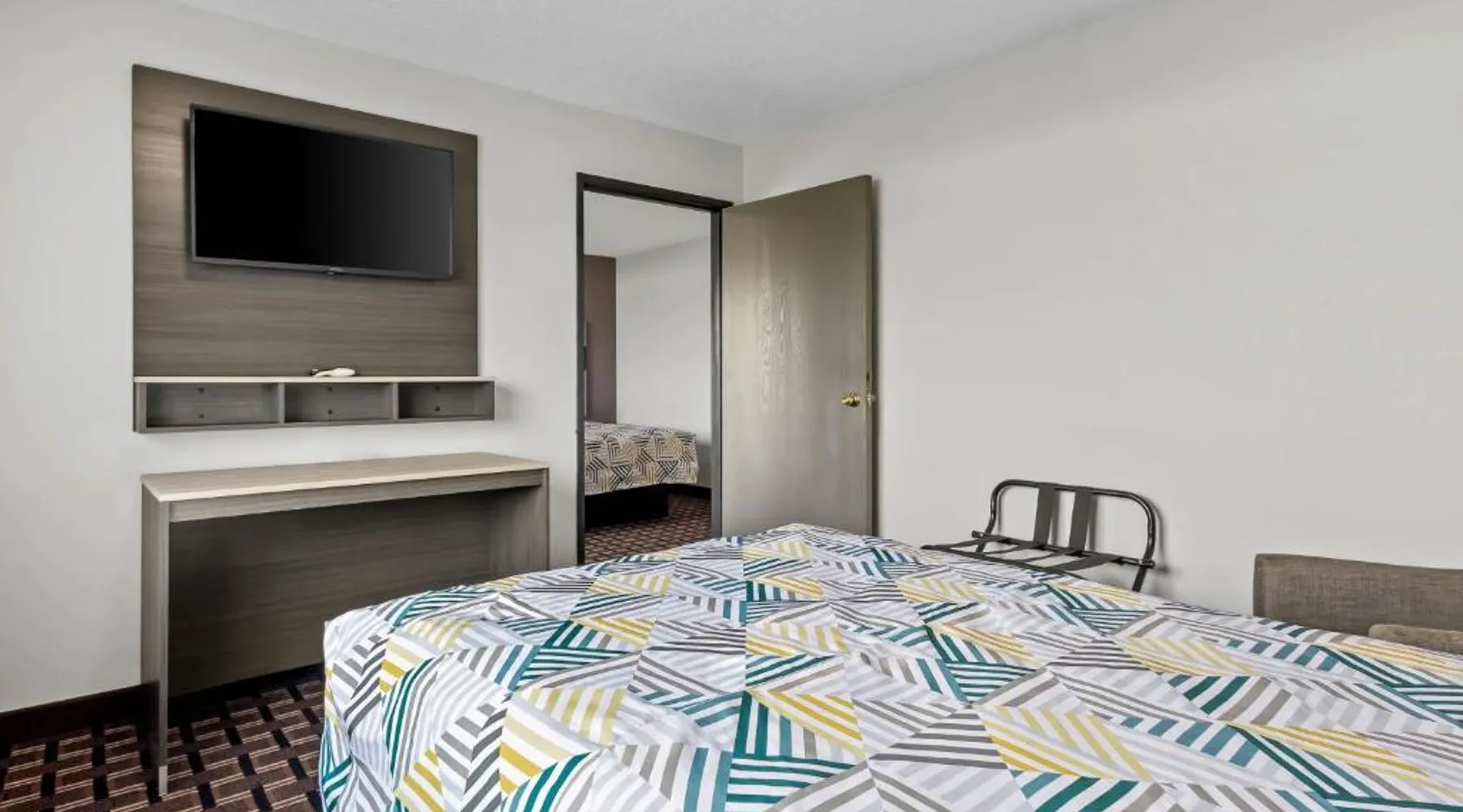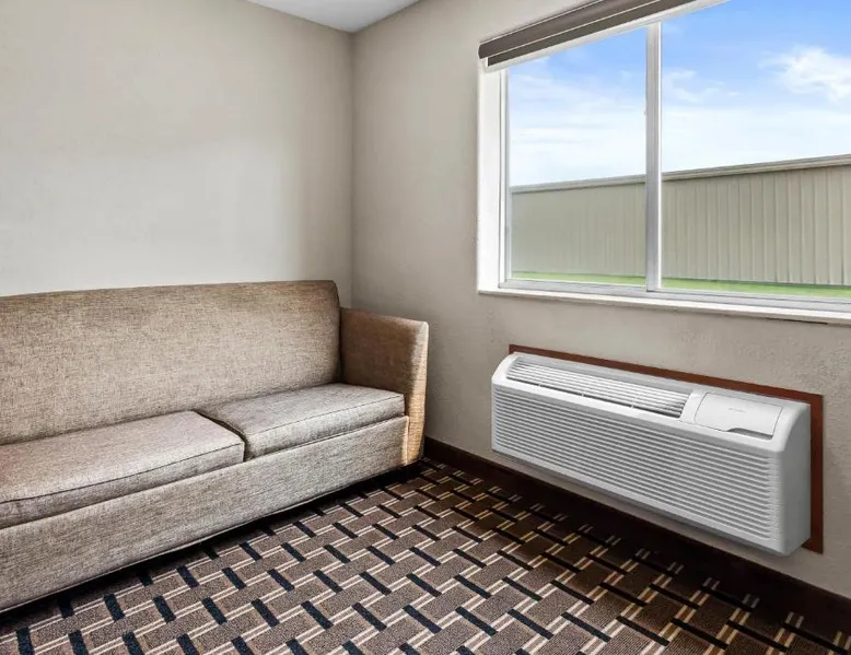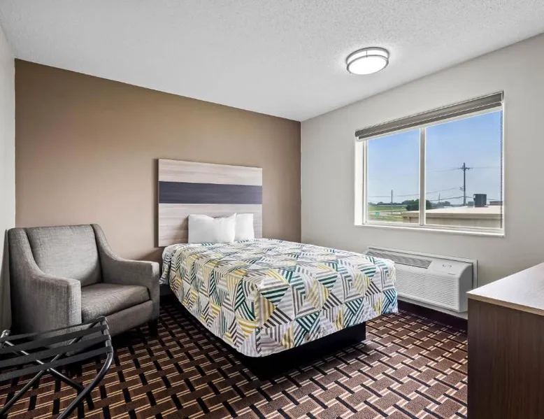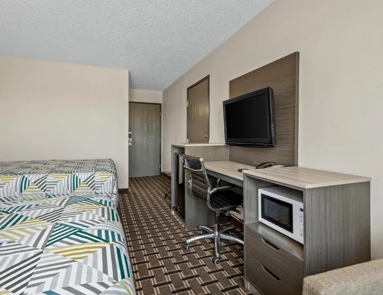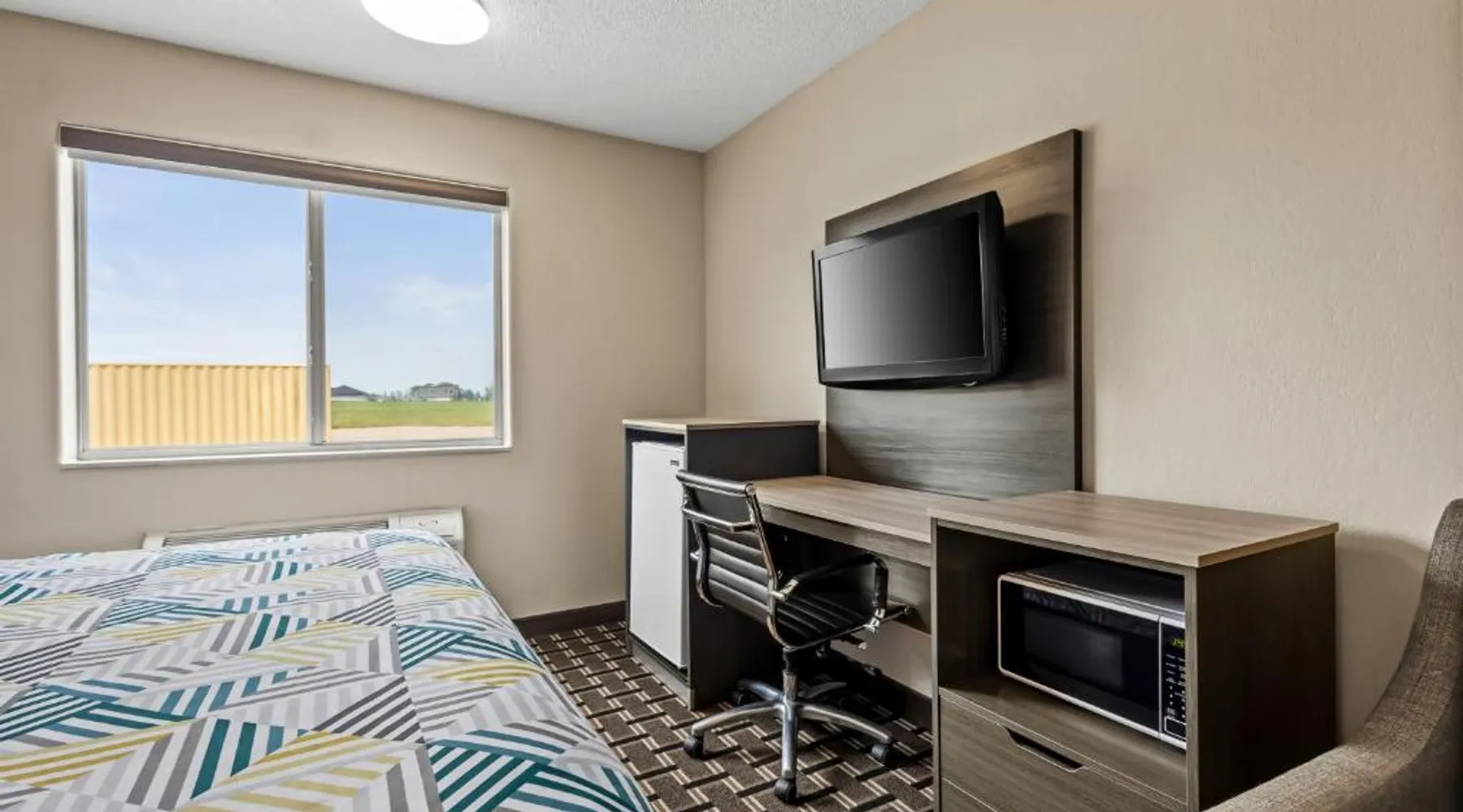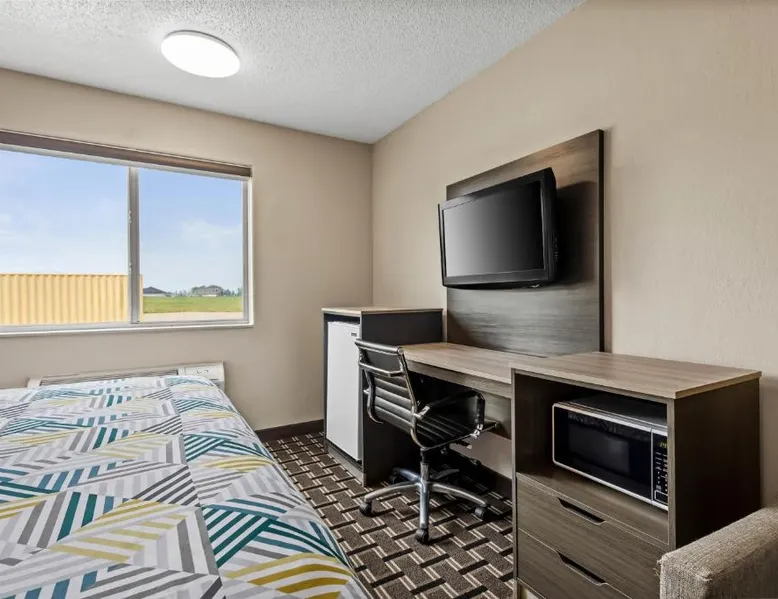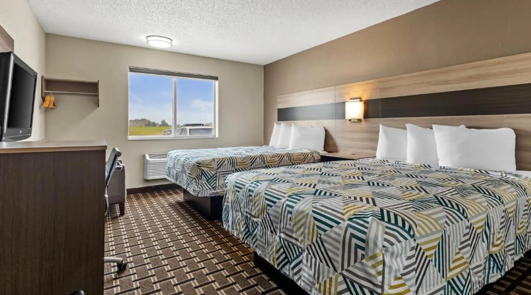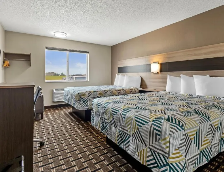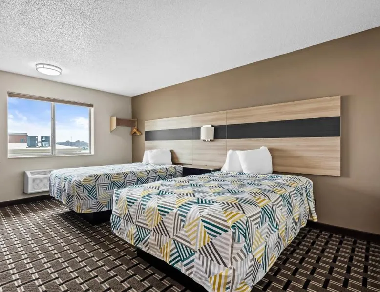 Comfortable Accommodations: Motel 6 North Sioux City, SD I 29 North in North Sioux City offers air-conditioned rooms with private bathrooms, showers, and TVs. Each room includes a refrigerator, work desk, microwave, and carpeted floors. Essential Facilities: Guests enjoy an indoor swimming pool and free WiFi. The property features a 24-hour front desk and free on-site private parking. The hotel is pet-friendly, welcoming travelers with pets. Convenient Location: Located 20 mi from Sioux Gateway Airport, the hotel is near Sioux City Convention Center, Tyson Events Center, and Sioux City Art Center, each 6.8 mi away. Green Valley Golf Course is 12 mi and Whispering Creek Golf Club is 14 mi from the property. This air-conditioned family room includes a TV with cable channels and a private bathroom. The unit offers 2 beds.