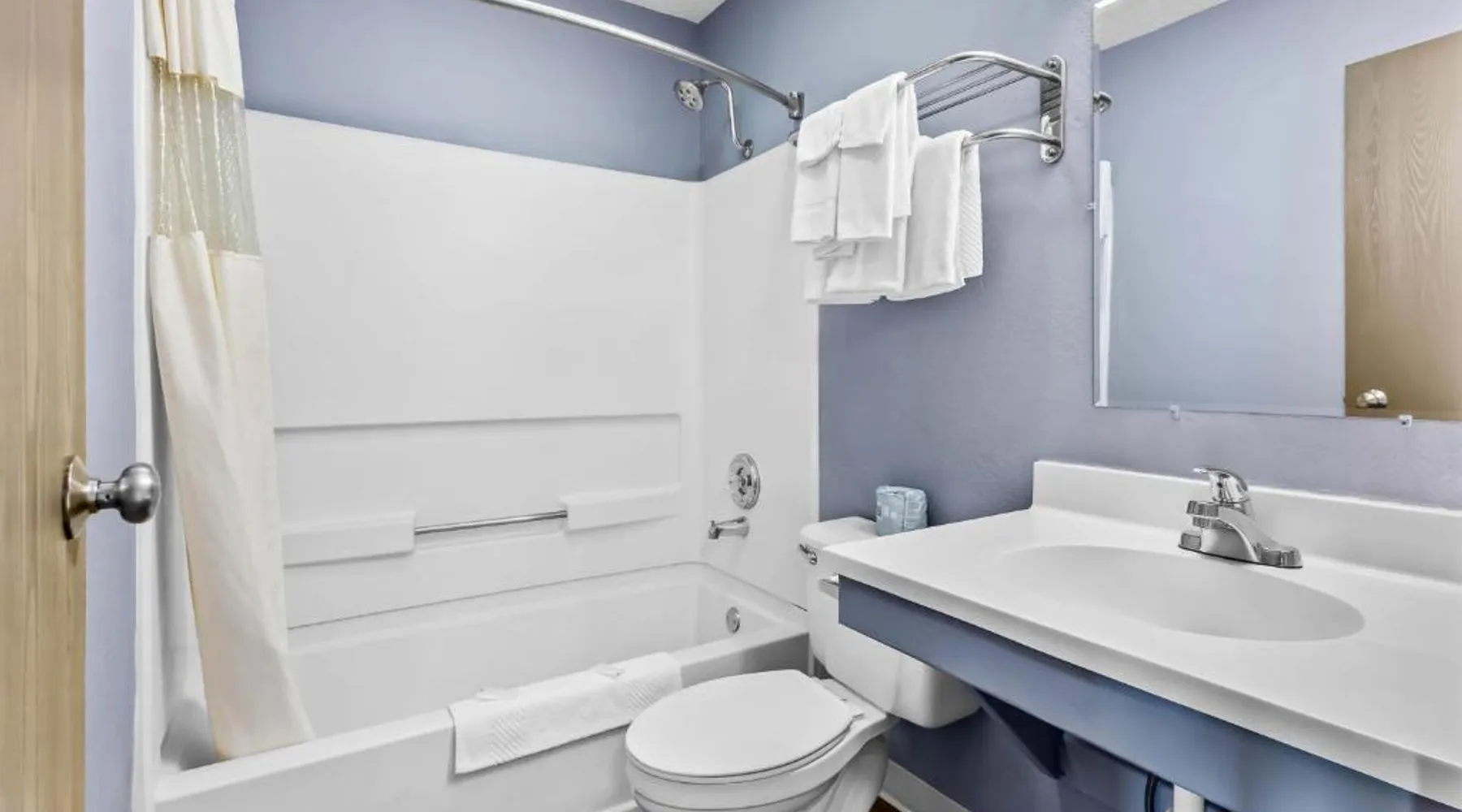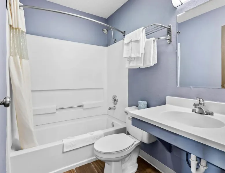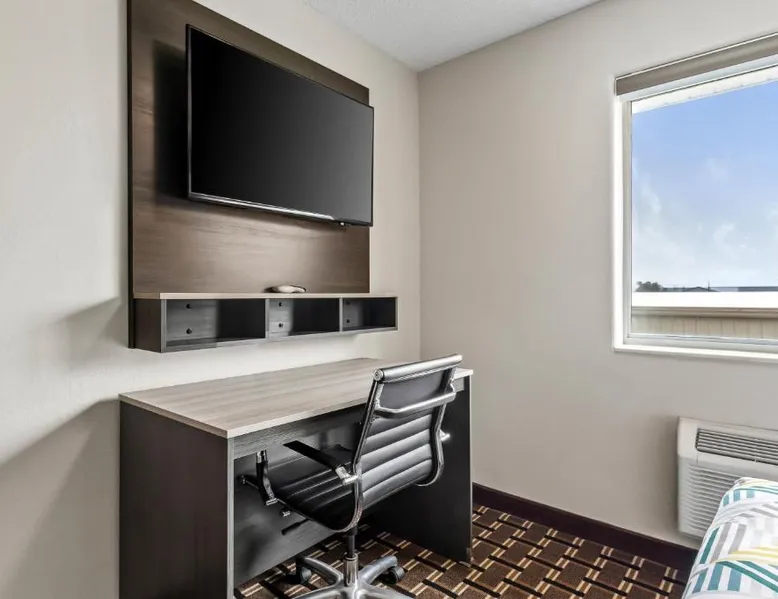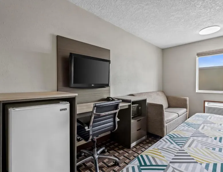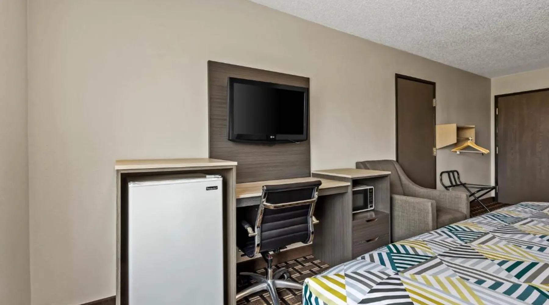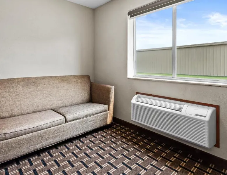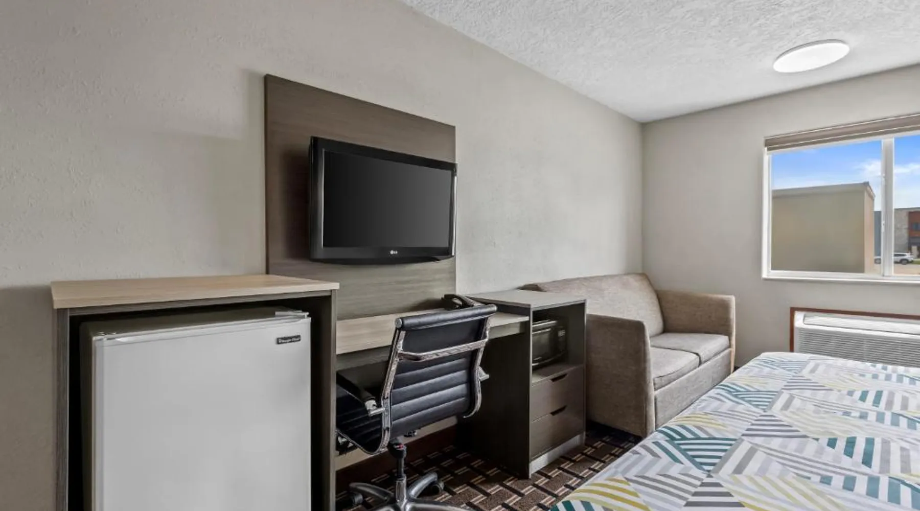 Comfortable Accommodations: Motel 6 North Sioux City, SD I 29 North in North Sioux City offers air-conditioned rooms with private bathrooms, showers, and TVs. Each room includes a refrigerator, work desk, microwave, and carpeted floors. Essential Facilities: Guests enjoy an indoor swimming pool and free WiFi. The property features a 24-hour front desk and free on-site private parking. The hotel is pet-friendly, welcoming travelers with pets. Convenient Location: Located 20 mi from Sioux Gateway Airport, the hotel is near Sioux City Convention Center, Tyson Events Center, and Sioux City Art Center, each 6.8 mi away. Green Valley Golf Course is 12 mi and Whispering Creek Golf Club is 14 mi from the property. This air-conditioned family room includes a TV with cable channels and a private bathroom. The unit offers 2 beds.