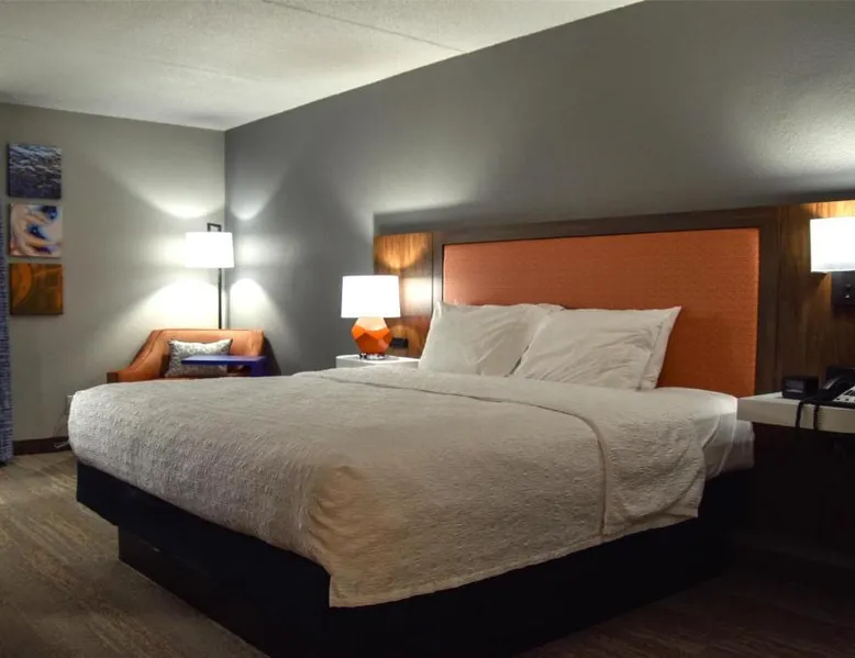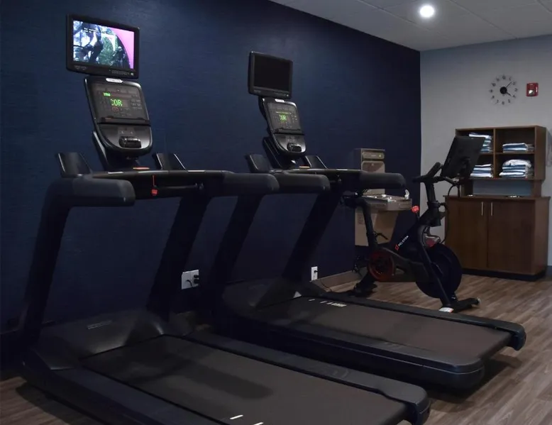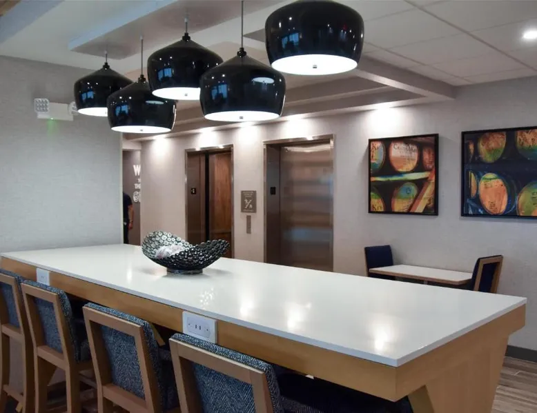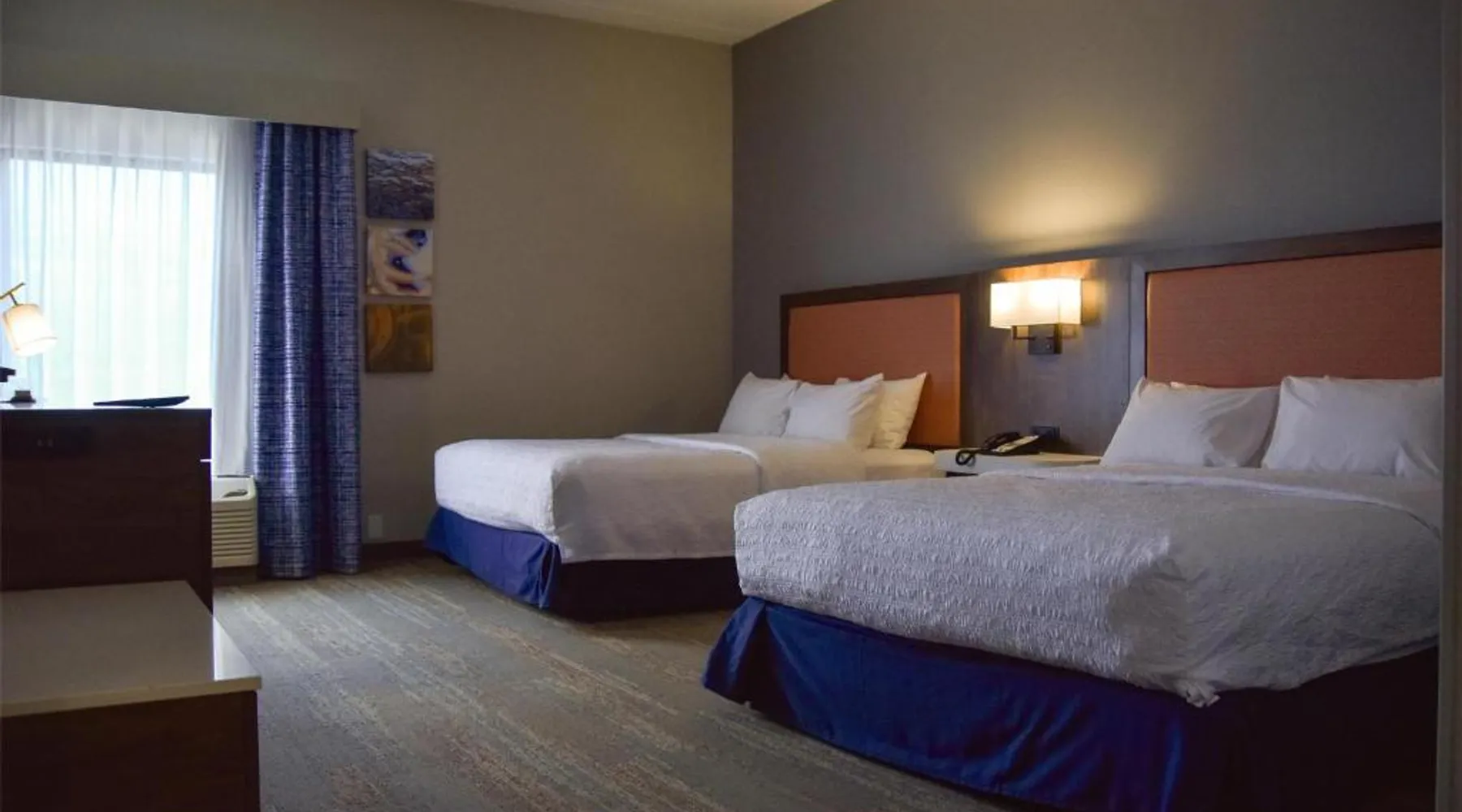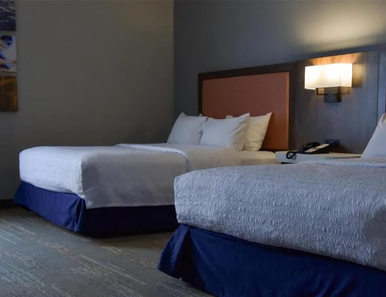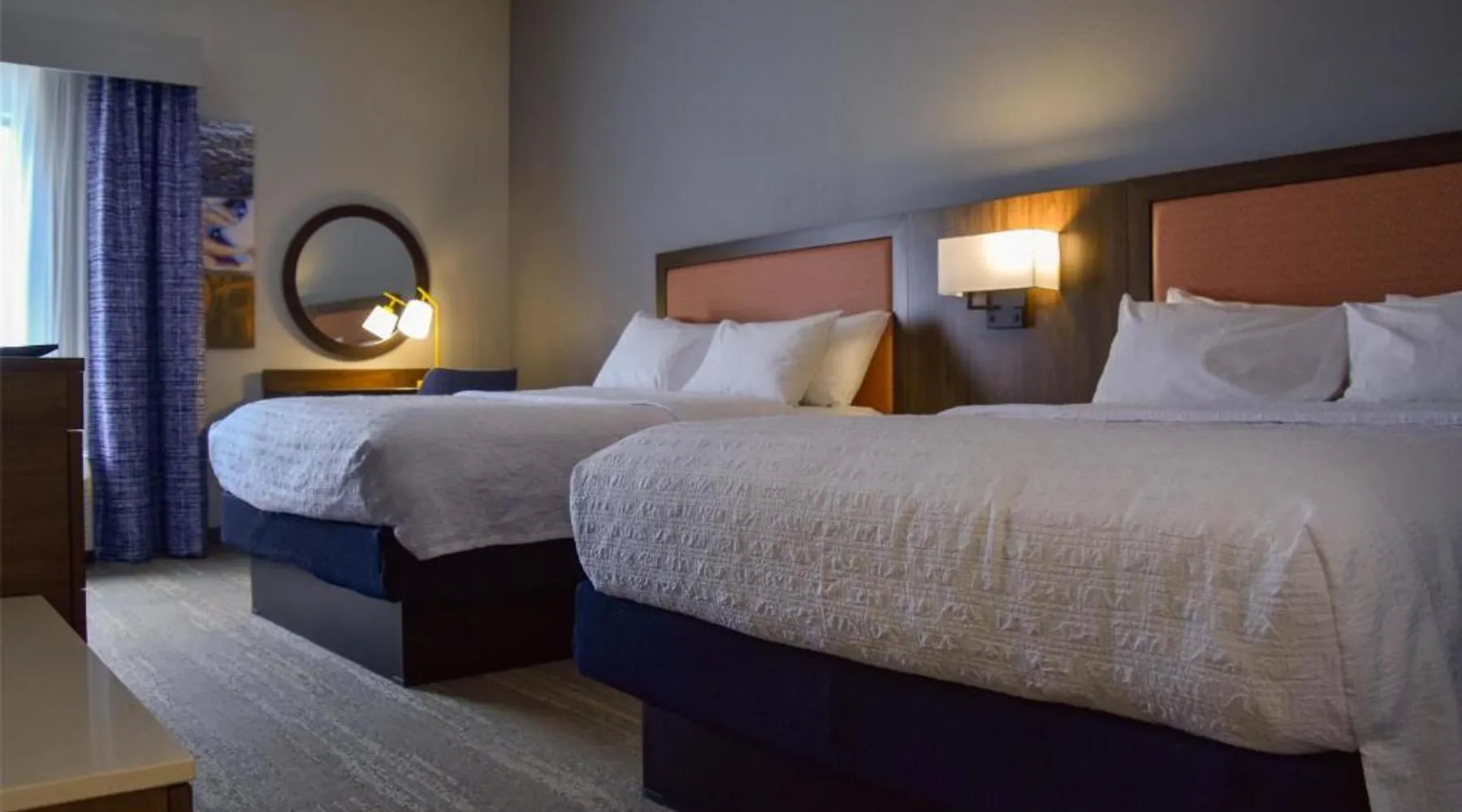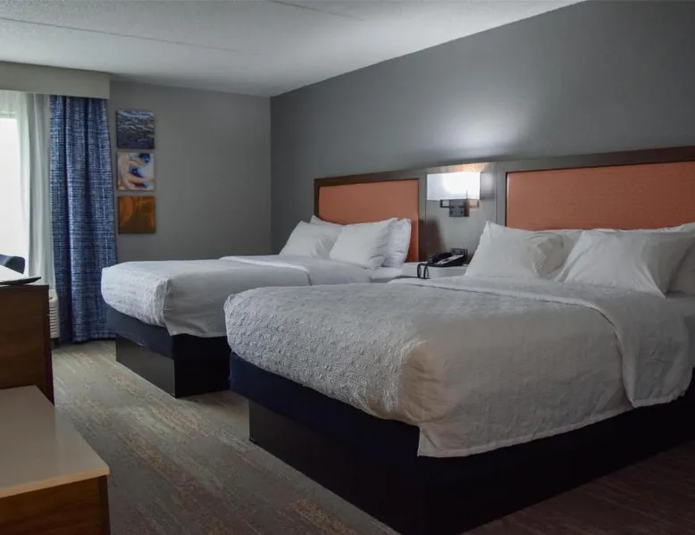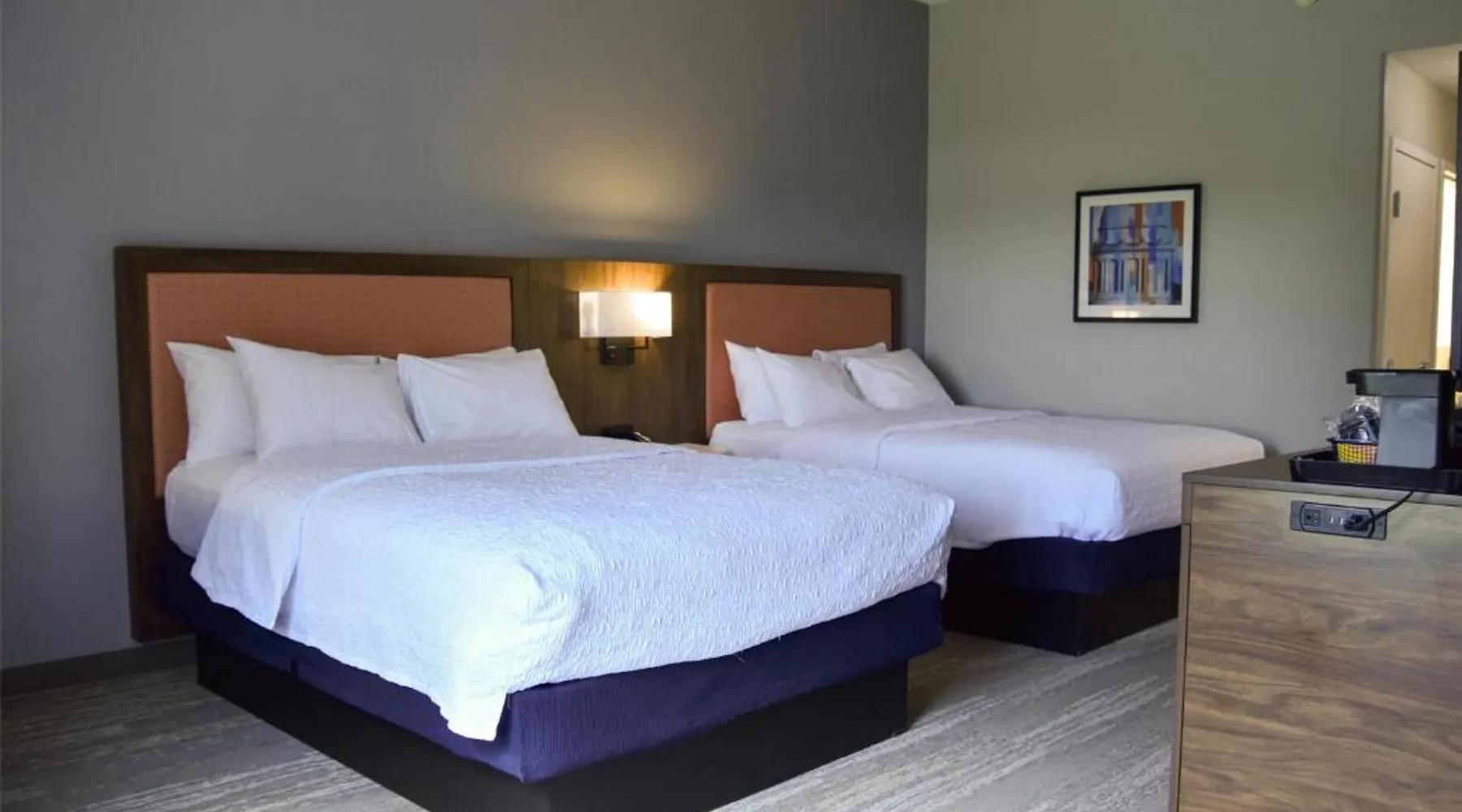Comfortable Accommodations: Hampton Inn Frankfort in Frankfort offers family rooms with air-conditioning, free WiFi, and amenities such as a tea and coffee maker, hairdryer, sofa bed, refrigerator, free toiletries, microwave, and TV. Leisure Facilities: Guests can enjoy a seasonal outdoor swimming pool and a fitness room. The hotel provides free on-site parking and a 24-hour front desk. Convenient Location: Located 21 mi from Blue Grass Airport, the property is near attractions like Keeneland Race Course (22 mi), Lexington McConnell Springs (25 mi), and Kentucky State University (5 mi). Guest Favorites: Guests appreciate the breakfast provided by the property, the attentive staff, and the convenient location. The quadruple room offers air conditioning, a tea and coffee maker, heating, as well as a flat-screen TV with cable channels. The unit has 2 beds.