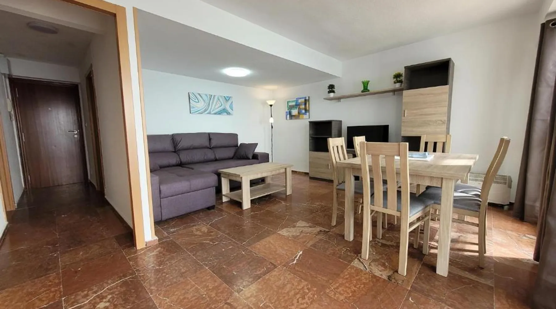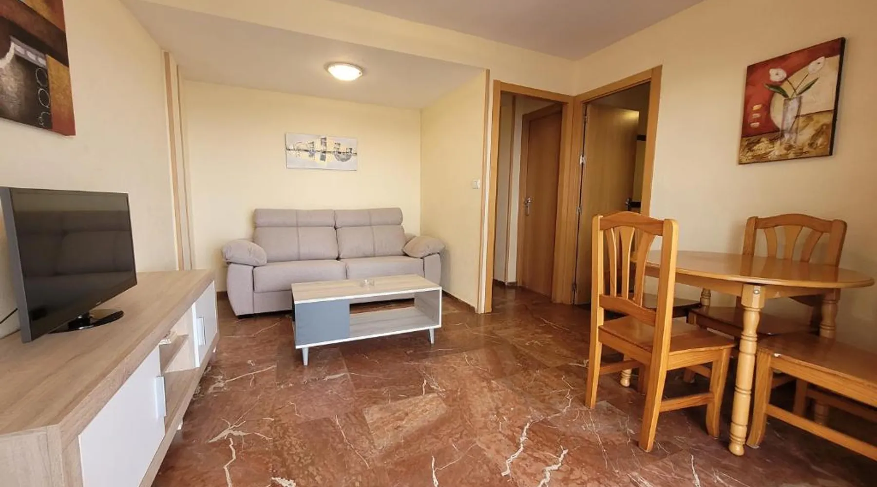 The property offers communal parking (subject to availability), outdoor pool (from June 15th to September 15th), solarium. The apartments feature a furnished terrace, a private bathroom, a kitchenette equipped with a washing machine and a living room with a sofa. Each heated apartment has a living room with a sofa. TV services with channels in Spanish, English and Dutch. Wi-fi and safe are available for a fee. There is a shopping center downstairs, with supermarkets, cafés and restaurants. The complex has a tour desk and is a 15-minute walk from Benidorm Old Town. This spacious apartment consists of 1 living room, 2 separate bedrooms and 2 bathrooms with a shower. The well-fitted kitchen features a refrigerator, kitchenware, a microwave and a tea and coffee maker. Featuring a terrace with sea views, this apartment also provides a washing machine and a flat-screen TV. The unit offers 5 beds.