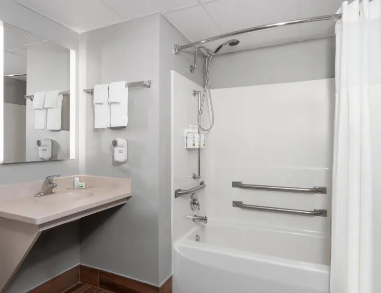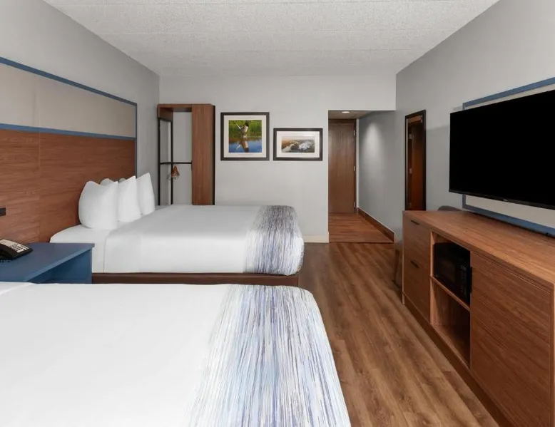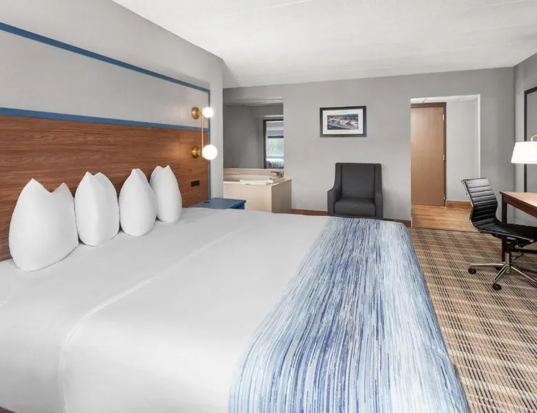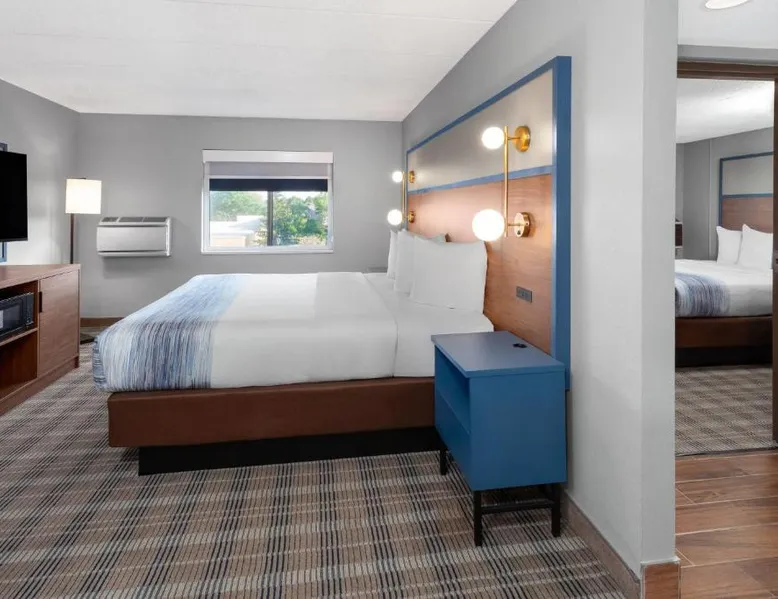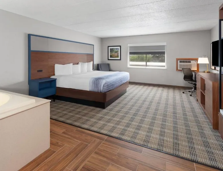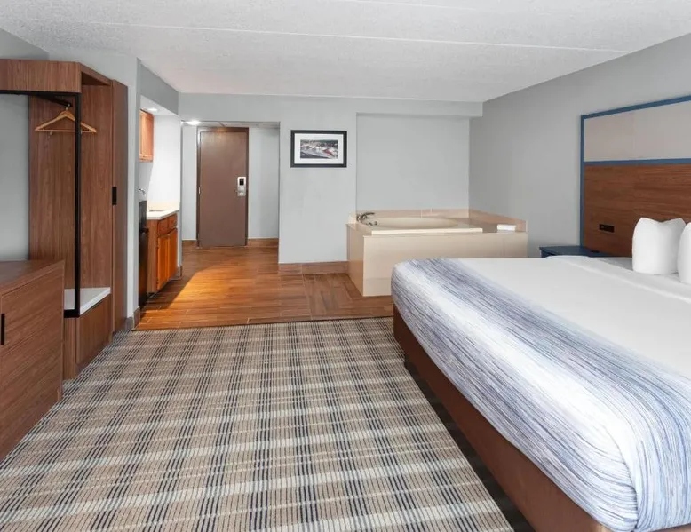 The AmericInn & Suites by Wyndham Baraboo Event Center is less than two miles from University of Wisconsin - Baraboo/Sauk County. The nearby International Crane Foundation is the only place in the world where you can see all 15 crane species. Local points of interest like Circus World Museum, Devil's Lake State Park and Ho-Chunk Casino are close to this Baraboo, WI hotel. The city of Wisconsin Dells, the Waterpark Capital of the World, is only eight miles away. This area offers an abundant selection of recreational activities, including water slides, lazy river swimming pools, as well as boating, hiking, biking and sightseeing opportunities. Ask about the Passport to Savings program the hotel participates in. There are also several shopping centers, entertainment venues and restaurants in the vicinity for you to enjoy. Guests of this Wisconsin hotel can enjoy features and amenities like free wireless high-speed Internet access, free weekday newspaper, an indoor heated pool & hot tub and an exercise room & sauna. The business center provides conveniences like access to copy and fax services. All well-appointed guest rooms are furnished with coffee makers, curved shower rods, work desks, hair dryers, irons, ironing boards and high-definition 32-inch flat-screen televisions with cable television, including a movie channel. Select rooms have hot tubs, microwaves and refrigerators. For added convenience, we have a game room and coin-operated laundry facilities on the premises. We are a pet-friendly hotel; fees apply. Microwave and refrigerator rentals and cold-weather hookups are available. Our on-site parking can accommodate most cars, trucks and buses. This suite's standout feature is the hot tub. The spacious suite has 1 bedroom and 1 bathroom with a bath and a shower. This suite is air-conditioned and features a wardrobe, tumble dryer and heating. The unit has 3 beds.