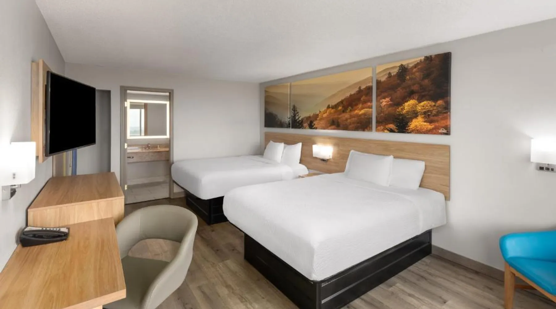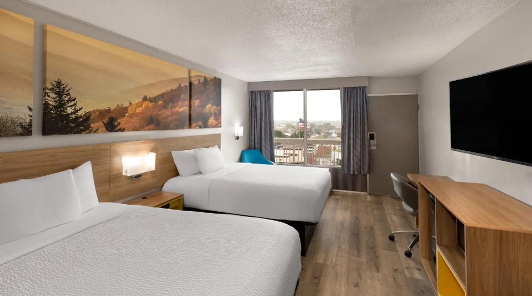 Comfortable Accommodations: Days Inn by Wyndham Harrisonburg in Harrisonburg offers adults-only rooms with air-conditioning, private bathrooms, and free WiFi. Each room includes a tea and coffee maker, hairdryer, and free toiletries. Convenient Facilities: Guests benefit from private check-in and check-out, a 24-hour front desk, daily housekeeping, and room service. Free on-site private parking is available. Dining Options: A continental buffet breakfast with juice, fresh pastries, pancakes, and cheese is served daily. Local Attractions: Shenandoah Valley Regional Airport is 16 mi away. Nearby points include University Park (2.2 mi), Bridgeforth Stadium (2.4 mi), and James Madison University (2.8 mi). The quadruple room offers air conditioning, a private entrance, as well as a private bathroom boasting a bath and a hairdryer. The quadruple room features a tea and coffee maker, parquet floors, heating, as well as a TV with cable channels. The unit has 3 beds.