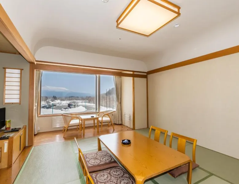 Comfortable Accommodations: LiVEMAX RESORT Hakodate Greenpia Onuma in Mori offers family rooms with private bathrooms, air-conditioning, and mountain views. Each room includes a tea and coffee maker, refrigerator, and free WiFi. Relaxing Facilities: Guests can enjoy a hot spring bath, sauna, open-air bath, and garden. Additional amenities include a pool with a view, terrace, and balcony. Dining Options: The hotel serves Japanese cuisine at its restaurant, offering lunch and dinner. A buffet breakfast is available each morning. Activities and Location: Located 24 mi from Hakodate Airport, the resort provides ski-to-door access, ski equipment hire, and ski passes. Nearby attractions include Goryokaku Park (20 mi) and Higurashiyama Observatory (4.3 mi). Guests will have a special experience as this holiday home offers a pool with a view and a hot tub. This holiday home consists of 1 living room, 1 separate bedroom and 1 bathroom with a bath and free toiletries. Meals can be prepared in the well-fitted kitchen, which comes with a refrigerator, kitchenware, an oven and a microwave. The air-conditioned holiday home provides a flat-screen TV with cable channels, soundproof walls, a tea and coffee maker, a wardrobe as well as mountain views. The unit offers 4 futons.