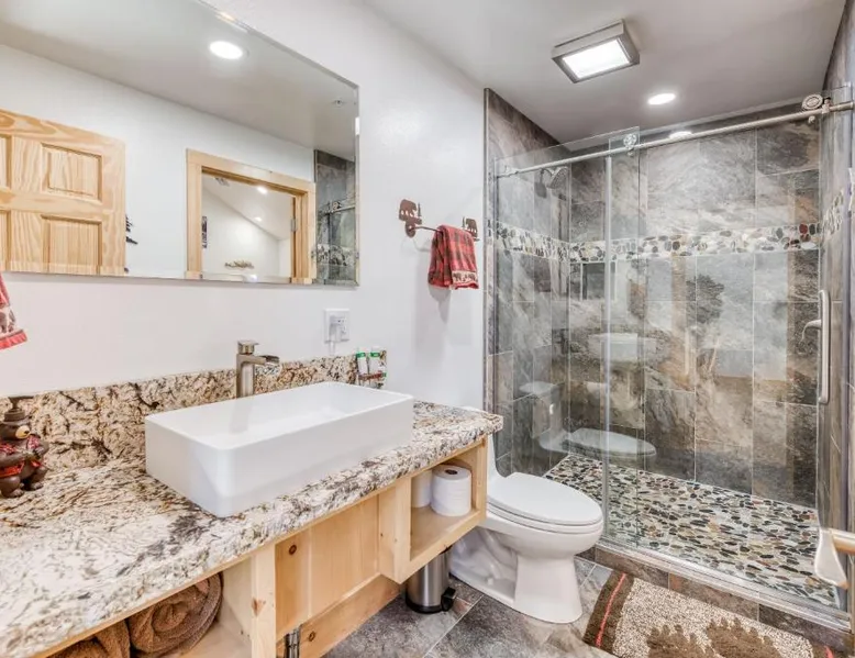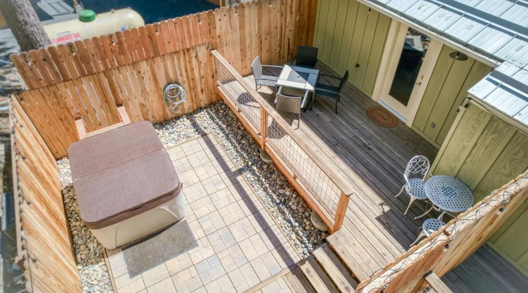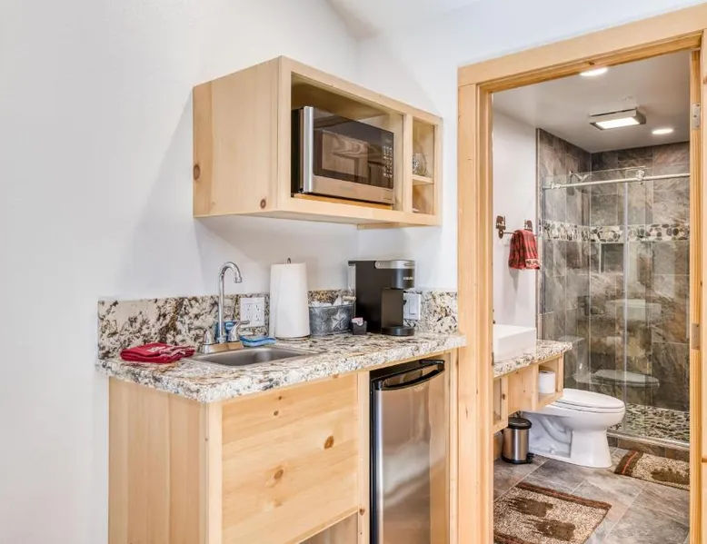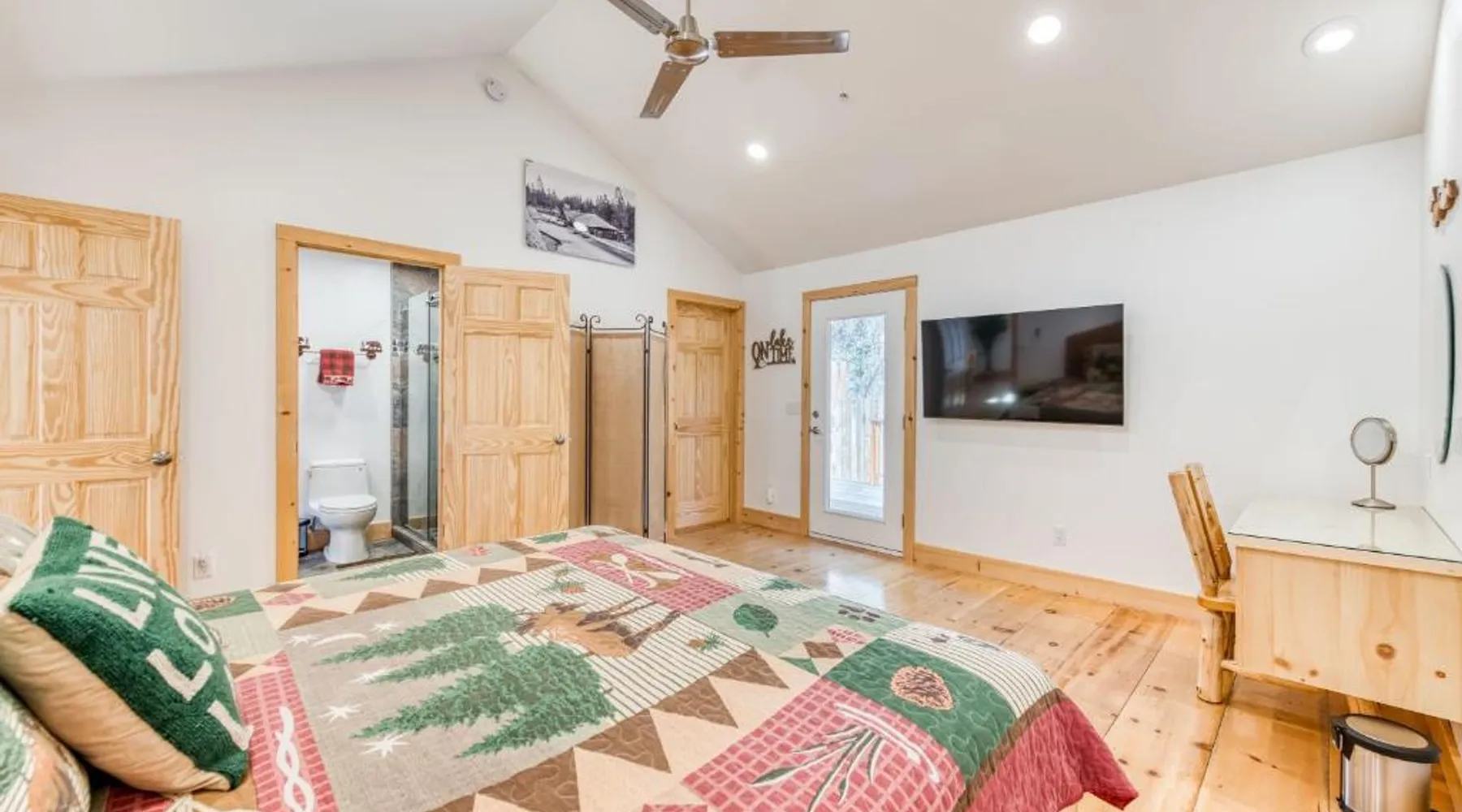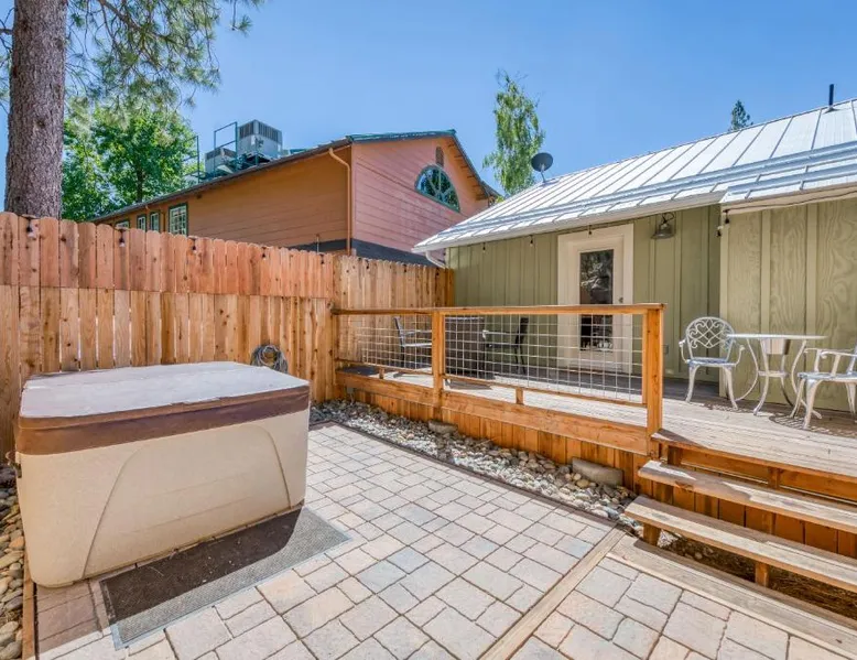 Spacious Accommodations: Cottage Like Suite with Private Hot Tub in Bass Lake offers a spacious chalet with one bedroom, one bathroom, and a comfortable living room. Guests enjoy a fully equipped kitchen, washing machine, and free WiFi throughout the property. Outdoor Amenities: The chalet features a private hot tub, perfect for relaxation. A beautiful garden provides a tranquil setting, complemented by stunning lake and mountain views. Outdoor furniture enhances the outdoor experience. Convenient Facilities: Free on-site parking is available, along with air-conditioning, a work desk, and a dining table. Additional amenities include a TV, microwave, refrigerator, and free toiletries. Local Attractions: Yosemite South Entrance is 19 mi away, while Fresno Yosemite International Airport is 55 mi from the property. Cycling enthusiasts can explore the surrounding area with ease. The hot tub is a top feature of this suite. The suite's kitchen, which has a refrigerator and a microwave, is available for cooking and storing food. The spacious air-conditioned suite offers a TV with cable channels, a washing machine, a tea and coffee maker, a wardrobe as well as lake views. The unit has 2 beds.