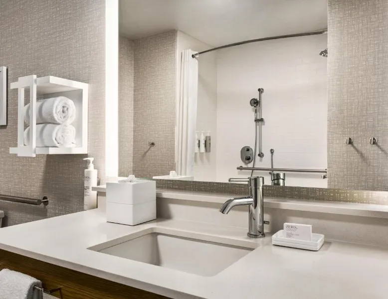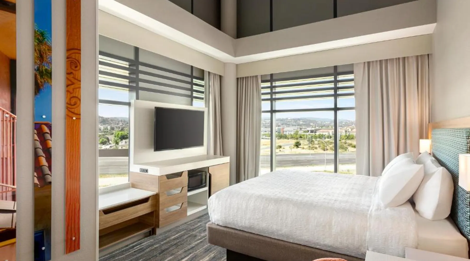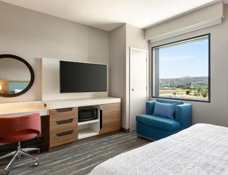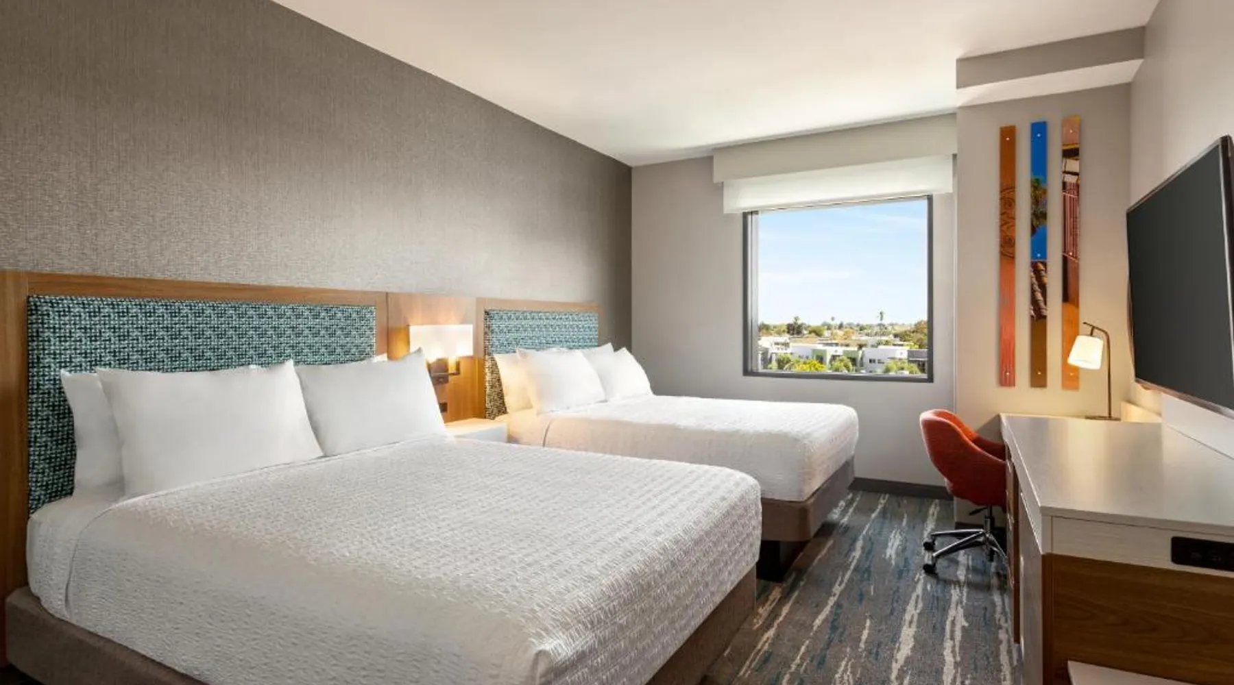 Comfortable Accommodations: Hampton Inn & Suites San Mateo-San Francisco Airport in San Mateo offers clean rooms with air-conditioning, refrigerators, microwaves, tea and coffee makers, and free toiletries. Each room includes a work desk, sofa bed, and TV. Convenient Facilities: Guests can enjoy a fitness room, elevator, 24-hour front desk, minimarket, and bicycle parking. Free on-site private parking is available. Breakfast and Service: A complimentary breakfast is served daily. Guests appreciate the room cleanliness, attentive staff, and excellent service support. Nearby Attractions: Located 6.8 mi from San Francisco International Airport, the hotel is close to Shoreline Amphitheater (16 mi), Oracle Park (21 mi), and Union Square (22 mi). This quadruple room has air conditioning, a tea and coffee maker and a flat-screen TV with cable channels. The unit has 2 beds.