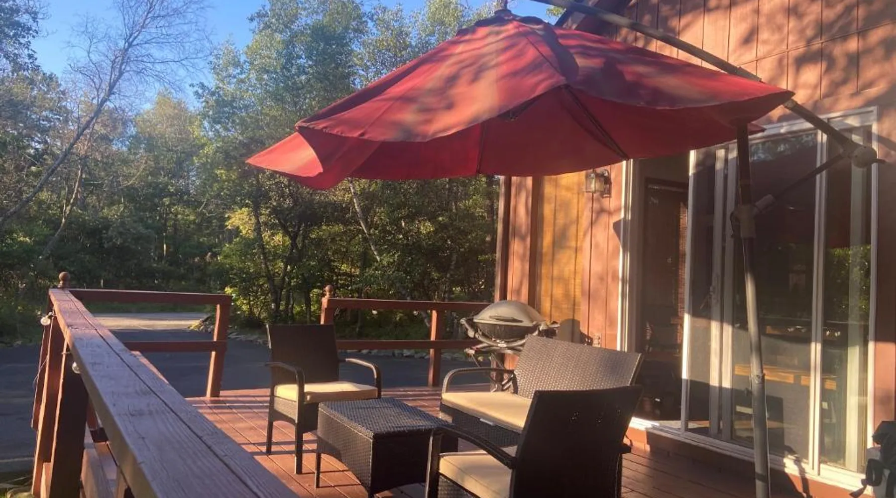 Spacious Accommodations: Ash Cottage in Poconos near Camelback & Kalahari offers a spacious chalet in Long Pond. The property features three bedrooms and two bathrooms, ensuring ample space for all guests. Modern Amenities: Guests enjoy free WiFi, streaming services, a fully equipped kitchen, and a cozy fireplace. Additional amenities include a washing machine, dishwasher, and a work desk. Outdoor Spaces: The chalet features an outdoor seating area and barbecue facilities, perfect for relaxing and entertaining. Free on-site private parking is available for convenience. Local Attractions: Located 39 mi from Lehigh Valley International Airport, the property is close to Delaware Water Gap National Recreation Area (21 mi), Kalahari Waterpark (3.7 mi), and Great Wolf Lodge Pocono Mountains (8.1 mi). Skiing enthusiasts will appreciate the nearby skiing opportunities. Guests will have a special experience as this chalet offers a fireplace. The spacious chalet features 3 bedrooms and 2 bathrooms with a shower and free toiletries. Guests will find a stovetop, a refrigerator, a dishwasher and an oven in the well-equipped kitchen. The chalet also has a barbecue. This chalet has a washing machine, a tea and coffee maker, a flat-screen TV with streaming services and outdoor furniture. The unit offers 3 beds.