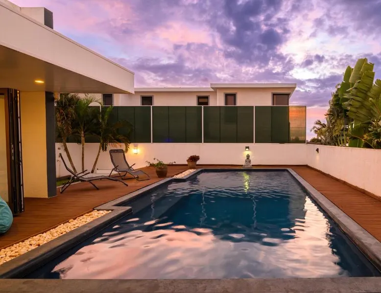 Spacious Accommodations: Wild Pearl in Albion offers a spacious, recently renovated villa with four bedrooms and two bathrooms. The property features a living room, dining area, and family rooms, ensuring comfort for all guests. Outdoor Amenities: Guests can enjoy a year-round outdoor swimming pool, lush garden, and terrace with sea and mountain views. Free WiFi is available throughout the villa, enhancing the stay experience. Convenient Location: Located 26 mi from Sir Seewoosagur Ramgoolam Airport, Wild Pearl is near Albion Public Beach (1.9 mi) and Domaine Les Pailles (6.2 mi). Other attractions include Caudan Waterfront Casino and Theater of Port Louis, each 7.5 mi away. Highly Rated by Guests: Wild Pearl receives high ratings from guests for its spaciousness, modern amenities, and excellent service. Free on-site private parking is available for added convenience. Guests will have a special experience as the villa offers a private pool. This spacious villa consists of 2 living rooms, 4 separate bedrooms and 2 bathrooms with a shower and free toiletries. The villa's kitchen, which features a refrigerator and a tea and coffee maker, is available for cooking and storing food. The villa provides air conditioning, a washing machine, a private entrance as well as a terrace with sea views. The unit offers 6 beds.