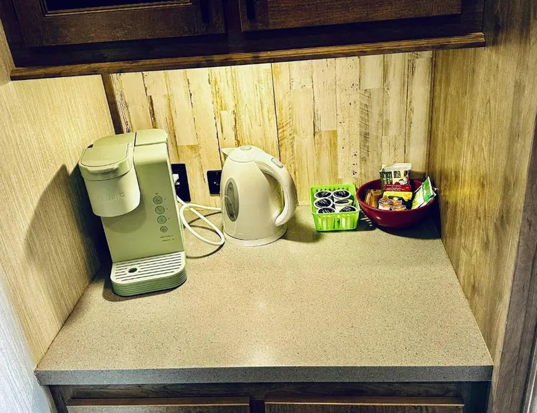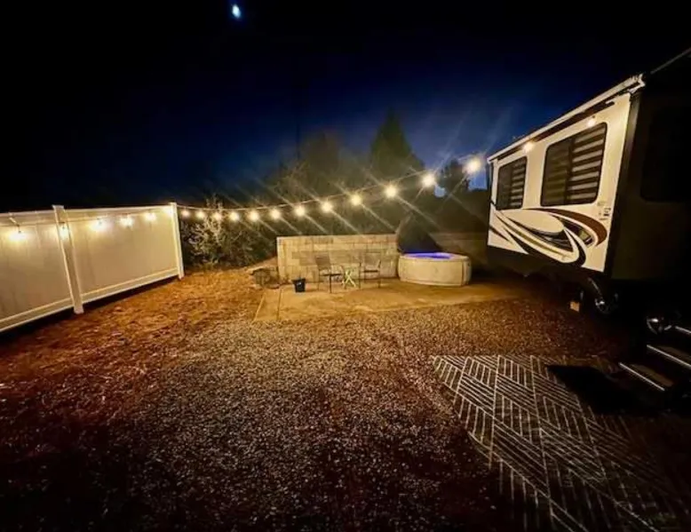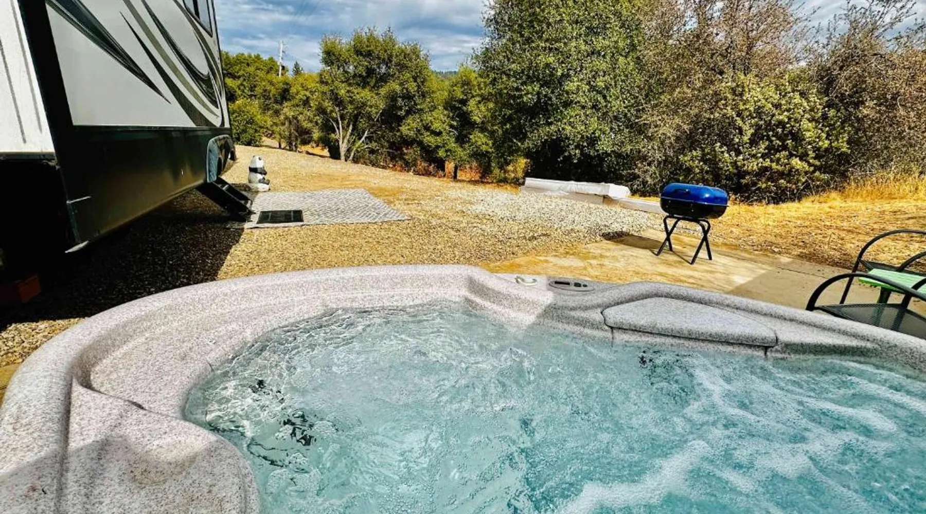 Comfortable Living Space: Puffy Panda RV-Hot Tub-Sleeps 2 in Ahwahnee offers a one-bedroom apartment with a private entrance. The property features a fully equipped kitchen, air-conditioning, and a cozy fireplace. Modern Amenities: Guests enjoy free WiFi, a hot tub, and a casino. The apartment includes a dining table, outdoor furniture, and a barbecue for relaxation and entertainment. Convenient Location: Located 52 mi from Fresno Yosemite International Airport, the property is 24 mi from Yosemite South Entrance. Mountain views enhance the stay. This apartment features a hot tub and a fireplace. Boasting a private entrance, this air-conditioned apartment features 1 bedroom and 1 bathroom with a hairdryer. Guests will find a stovetop, a refrigerator, kitchenware and a microwave in the kitchen. The apartment also comes with a barbecue. The apartment features a TV, a tea and coffee maker, a wardrobe, heating as well as mountain views. The unit has 1 bed.